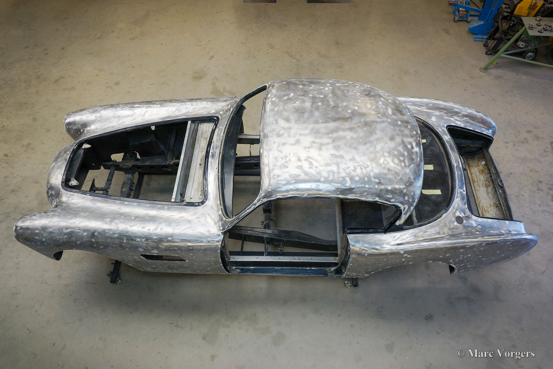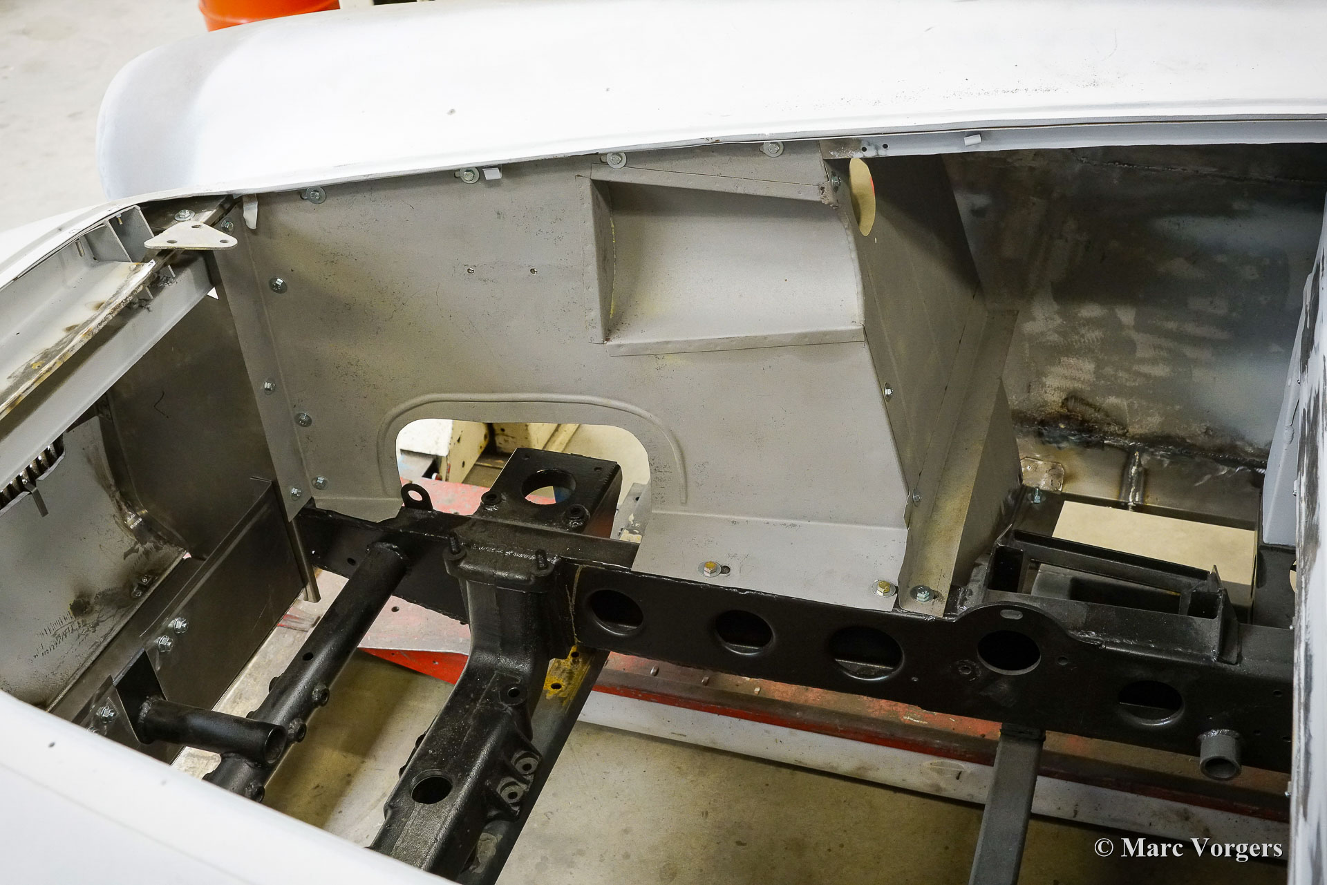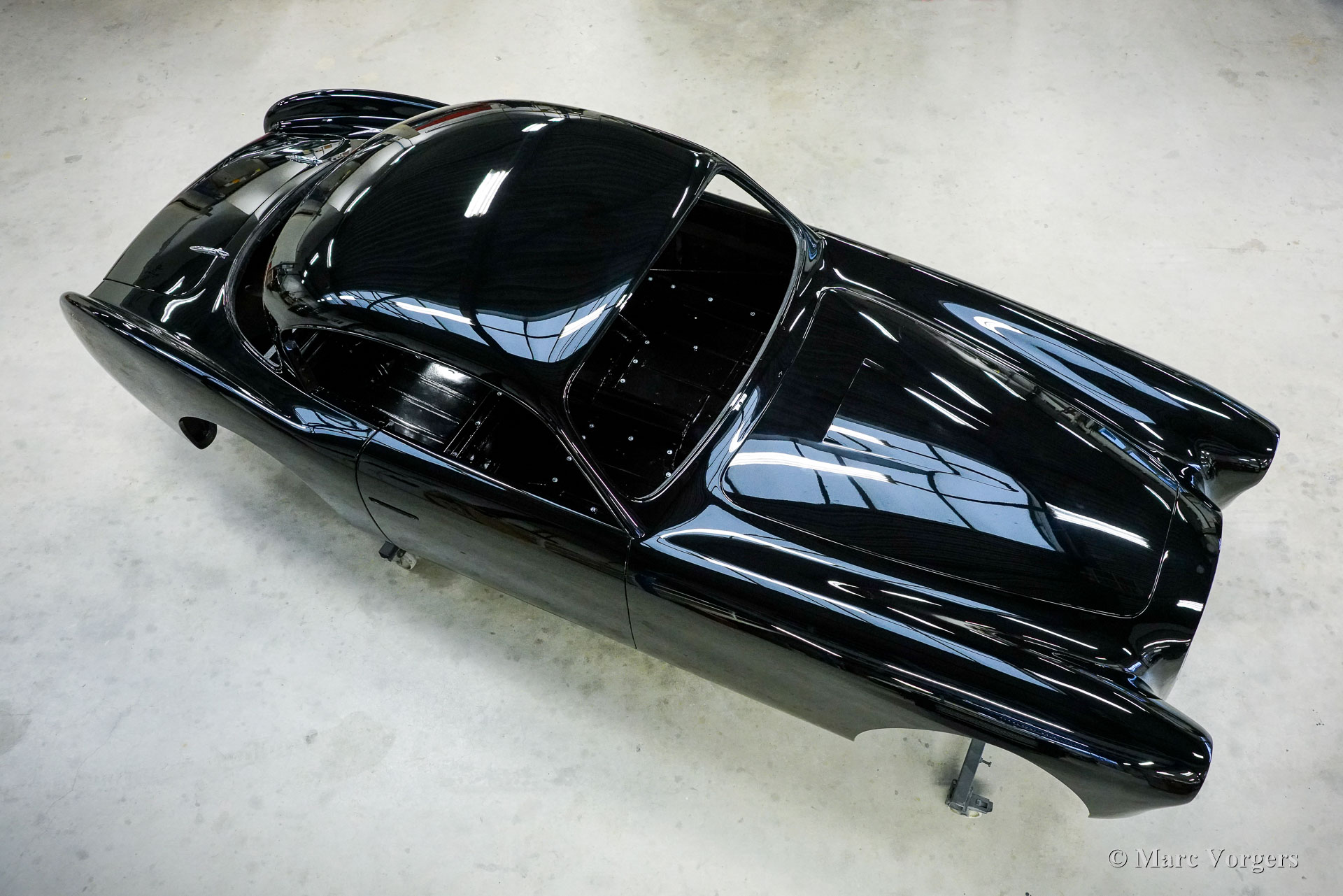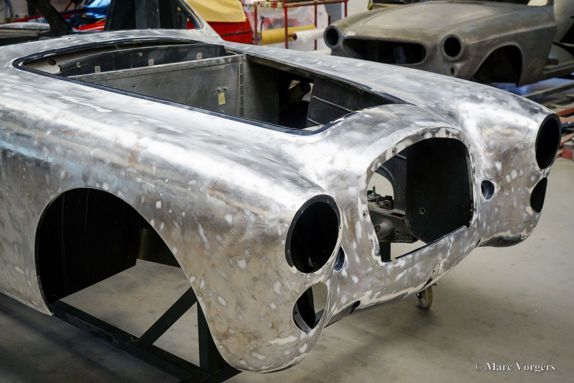 Au début des années 1950, la Talbot Lago Grand Sport était la meilleure et la plus rapide des voitures construites en France. L'automobile présentée quitte l'usine Talbot Lago le 30 décembre 1954 pour être livrée à un client français. La voiture était livrée en noir combiné avec un intérieur en cuir beige. Les extras étaient des roues chromées et des pneus Dunlop à flancs blancs. Classic Job a été mandaté par un client suisse pour restaurer la carrosserie et le châssis de cette magnifique automobile de première classe. La carrosserie est finie dans un magnifique noir profond. Ci-dessous vous voyez la carrosserie juste après la peinture. Les dernières étapes seront effectuées une fois la voiture terminée en Suisse (revêtement de peinture et revêtement en verre/céramique qui est incontournable sur la peinture noire).