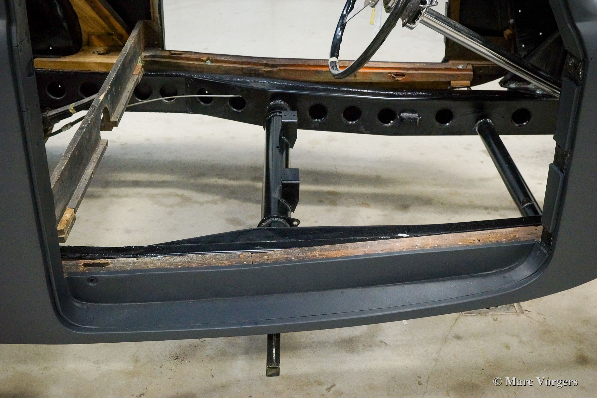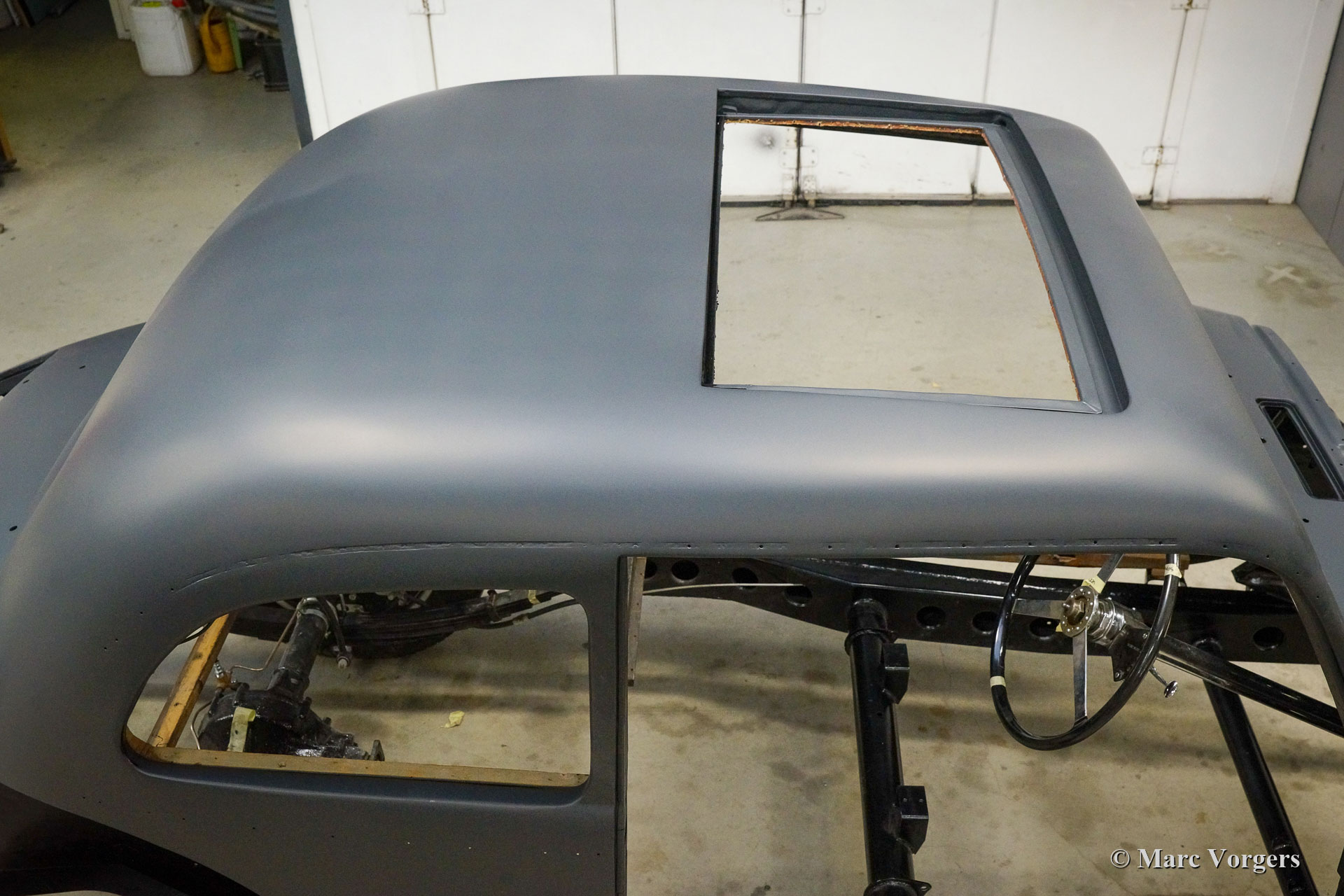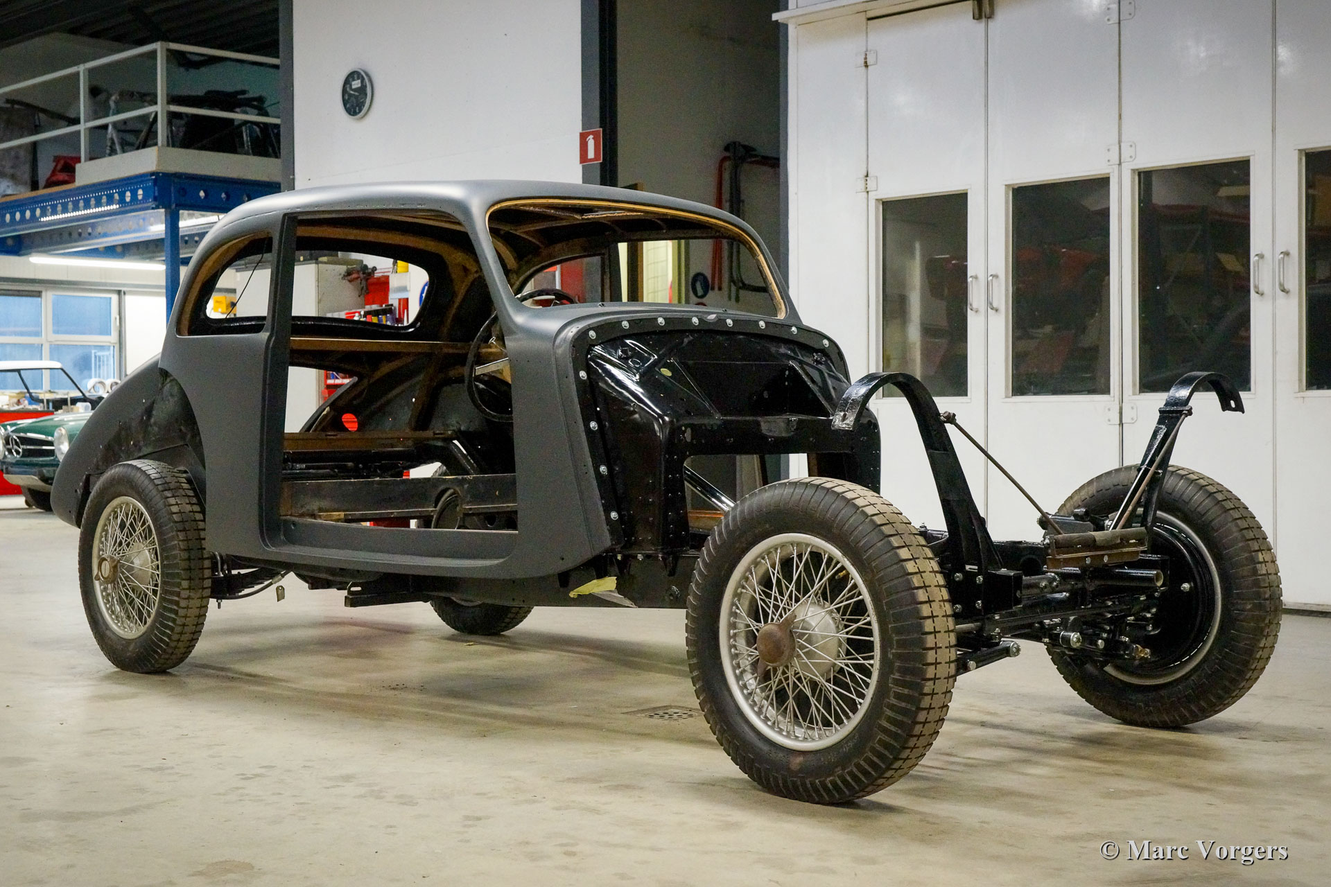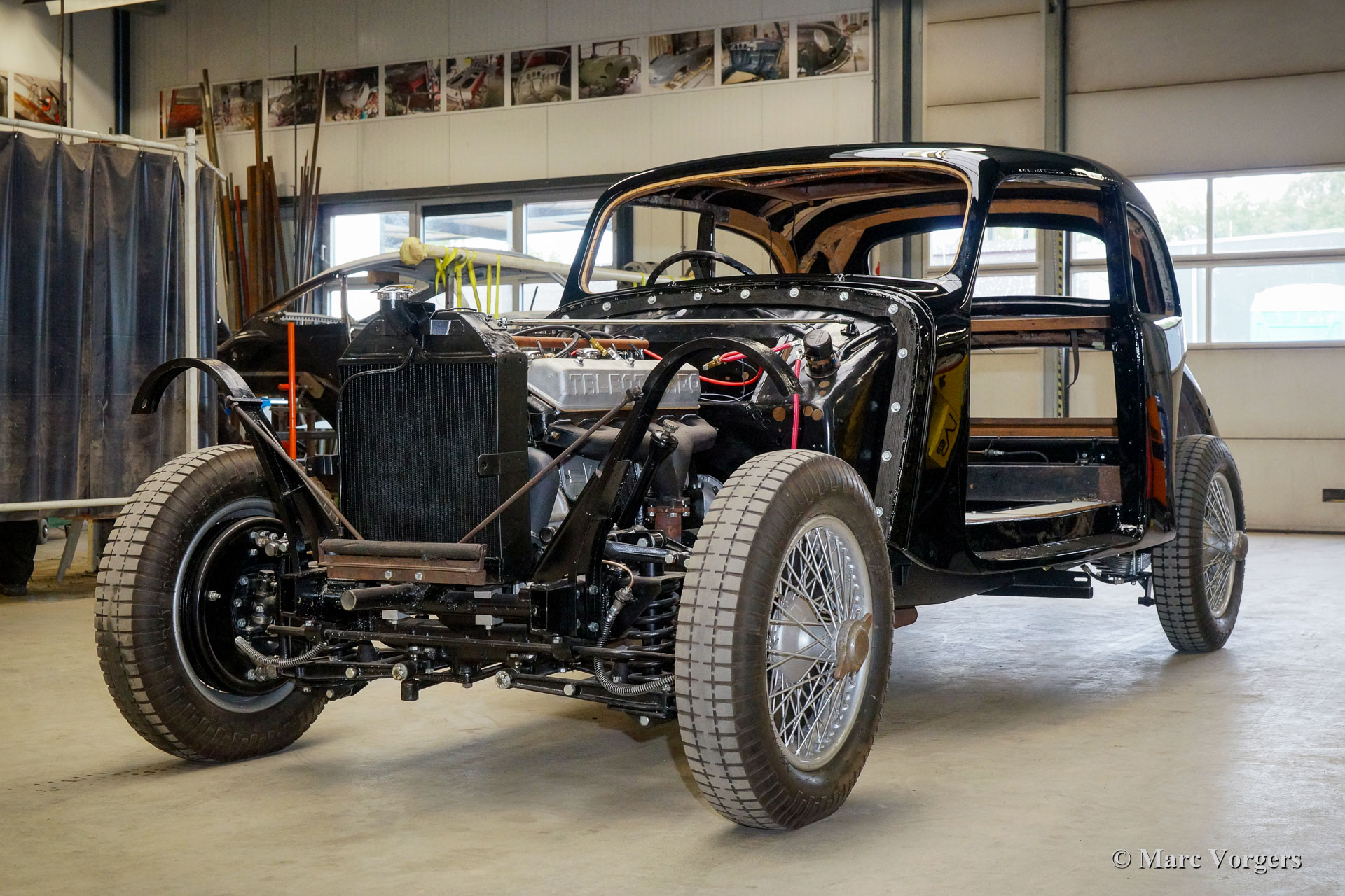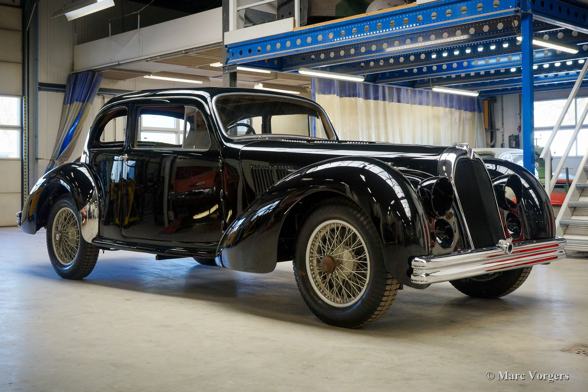 Ce fantastique Talbot lago T26 Record Surprofilé de 1952 est entièrement restauré et révisé par Classic Job. Ce reportage photo a commencé après que le châssis a eu déjà été restauré et reconstruit. On peut voir la carrosserie très originale sur le châssis restauré. (Seules certaines parties de tôlerie et certaines parties de l'ossature bois ont dû être renouvelées). La carrosserie fut lissée, apprêtée et peinte. Le moteur et la boîte de vitesses furent entièrement révisés par Classic Job et furent remontés dans le châssis. Actuellement, l'automobile est en cours de reconstruction. Les pièces détachées chromées furent rechromé à la perfection, le pare-chocs avant est lisse comme un miroir en verre. Le tableau de bord en métal de forme organique a été fini avec une peinture "faux bois" comme d'origine. Les détails extérieurs sont presque terminés, les phares doivent être installés et de nouvelles roues et pneus doivent être installés. Ensuite, l'intérieur sera nouvellement rembourré.