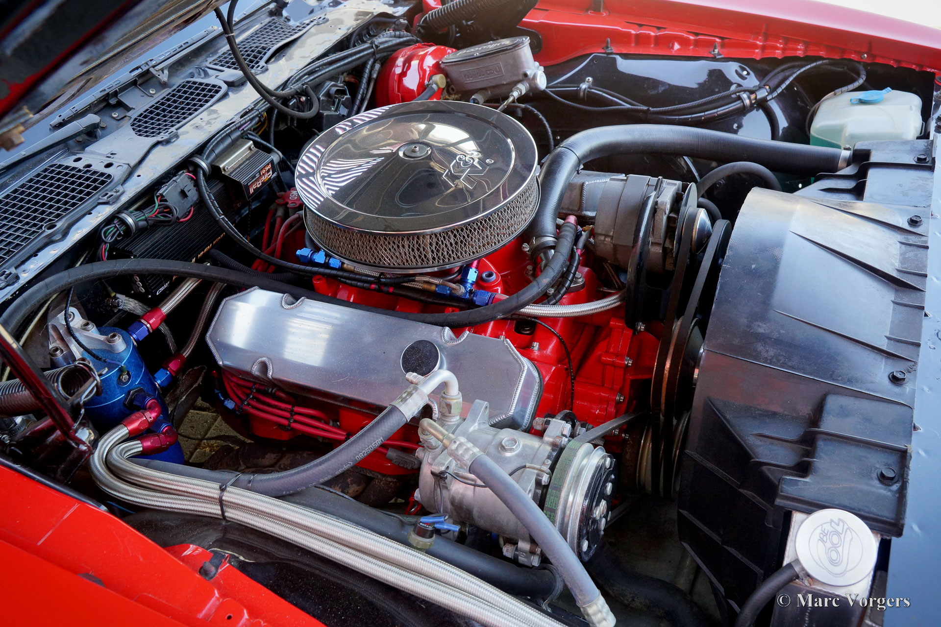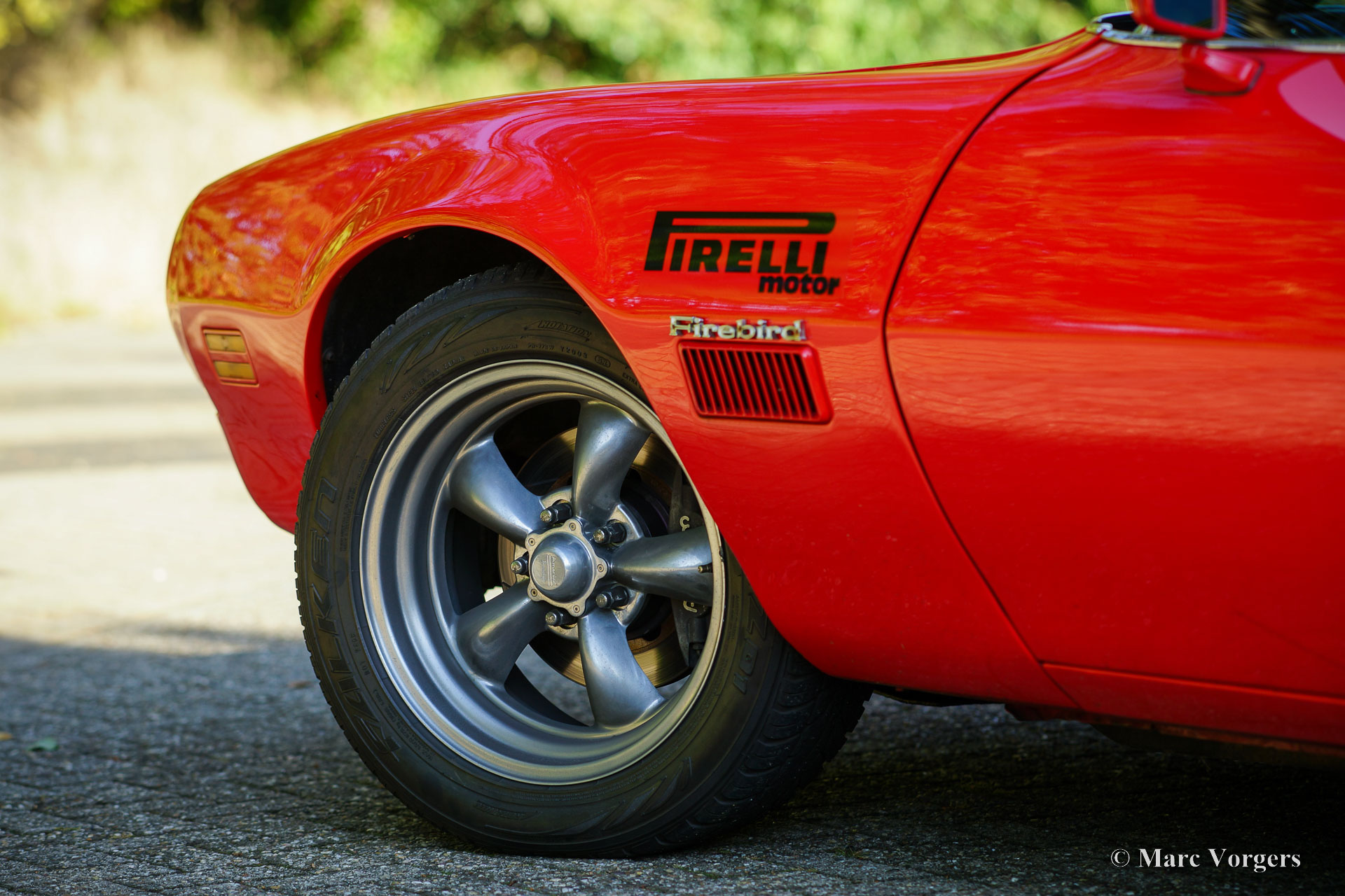 Pontiac Firebird Formula 400, année 1971. Couleur rouge combinée à un intérieur noir. Cette impressionnante Pontiac Firebird fut importée des États-Unis aux Pays-Bas en 2005. Cette Firebird de deuxième génération (1970-1981) est un modèle dit « Formula 400 » équipé du 400 Cu (6,6 L) Ram Air big bloc moteur V8. La « Formula 400 » était annoncée comme une alternative à la « Trans Am » et pouvait être commandée avec toutes les options disponibles pour la « Trans Am », à l'exception des élargisseurs d'ailes, de la pelle à secouer et des extracteurs de chaleur des ailes. Cet exemple fut largement restauré dans le passé, amélioré et modifié. Le moteur V8 a été réglé, la boîte de vitesses manuelle à 4 rapports a reçu un levier de vitesses spécial, un frein à main hydraulique fut installé, l'intérieur a reçu un tableau de bord personnalisé avec une gamme impressionnante de jauges, des sièges baquets spéciaux, 4 points harnais de sécurité, un ordinateur de rallye Terratrip et un système CD stéréo Pioneer. Cette Pontiac Firebird roule de manière impressionnante, et le moteur puissant demande un conducteur qualifié expérimenté avec les voitures américaines à traction arrière à haute puissance ! Il s'agit d'une superbe Pontiac Firebird « Formule 400 » en très bon état ! La voiture est prête à être appréciée au maximum.