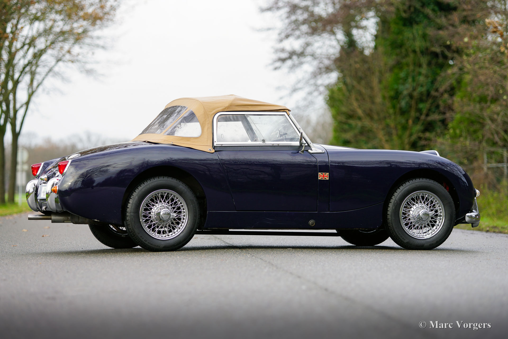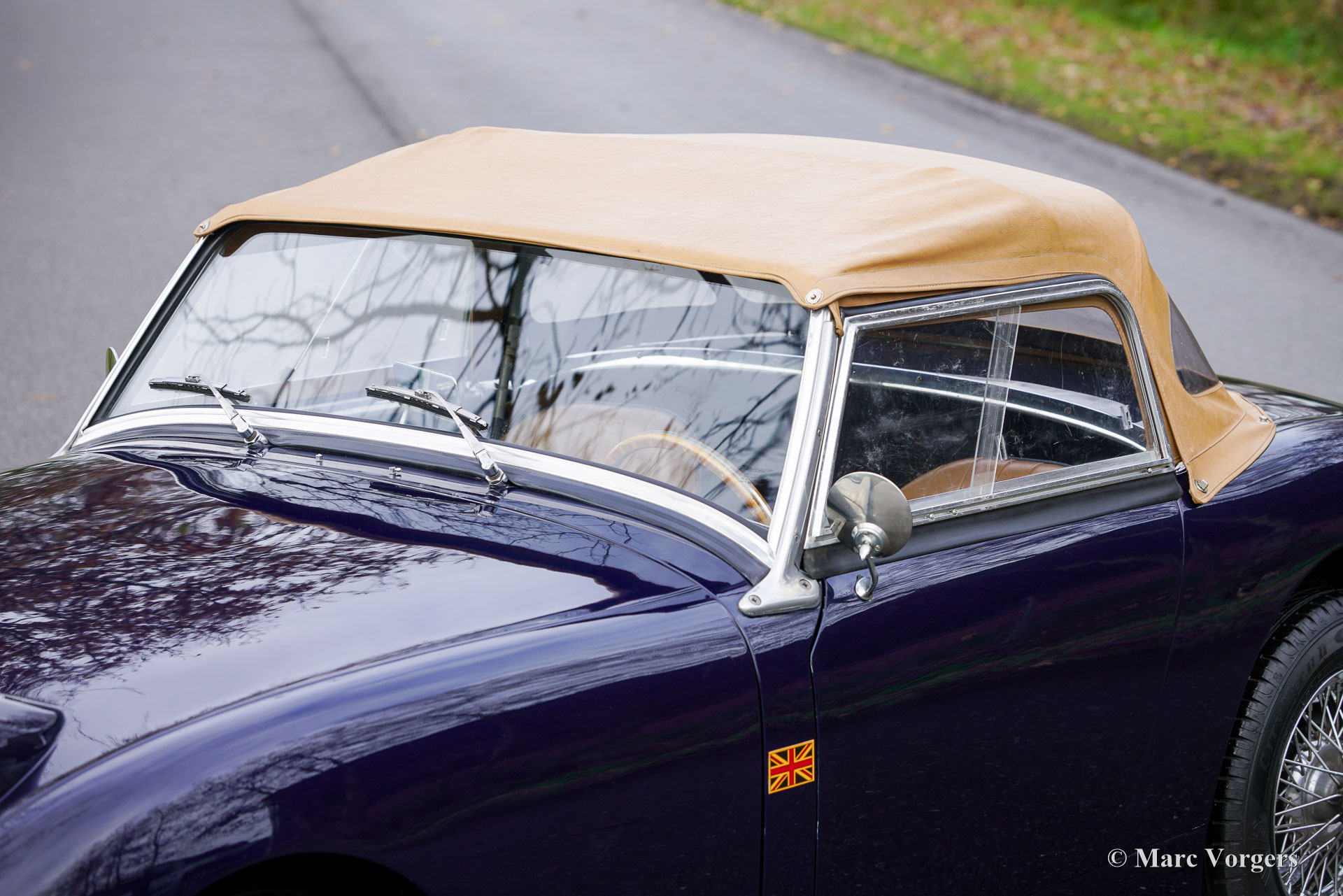 The former Healey models were more Spartan and featured fully detachable soft tops with separate side screens which could be stowed away in the booth.