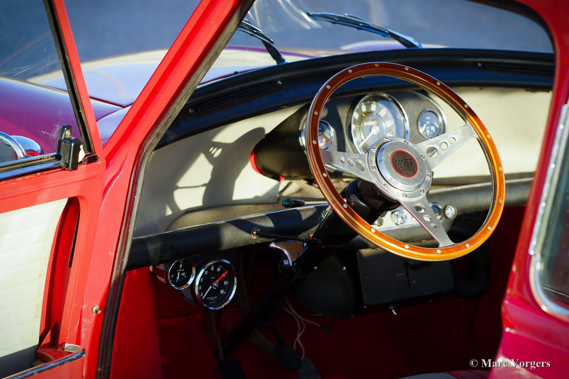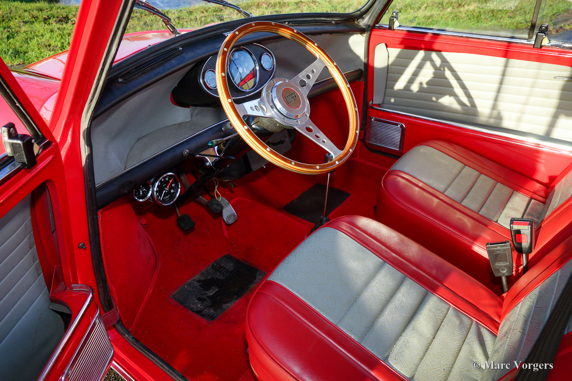 Austin Mini Cooper Mk I, année 1966. Couleur ‘Flame Red’ avec un intérieur « deux tons » rouge / gris et tapis rouge. Ceci est une Mini Cooper très original en très bon état ! La voiture montre des signes d'utilisation et l'âge et de la voiture roule délicieusement. L'intérieur est original et en bel état. Tous les détails originaux sont présents comme les roues de 10 pouces et des freins à disque sur les roues avant. Votre occasion d'acheter un Mini Cooper Mk I originale !