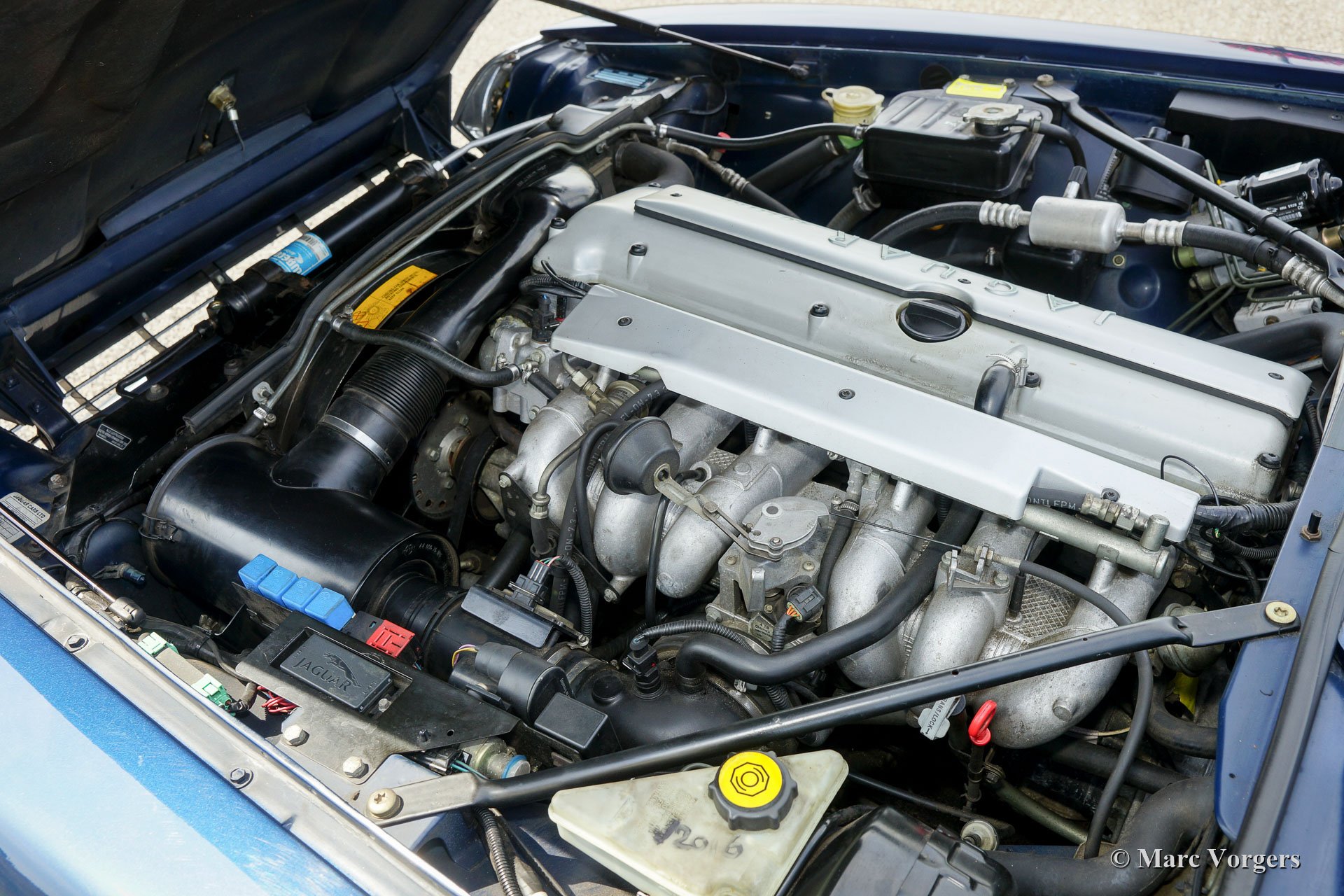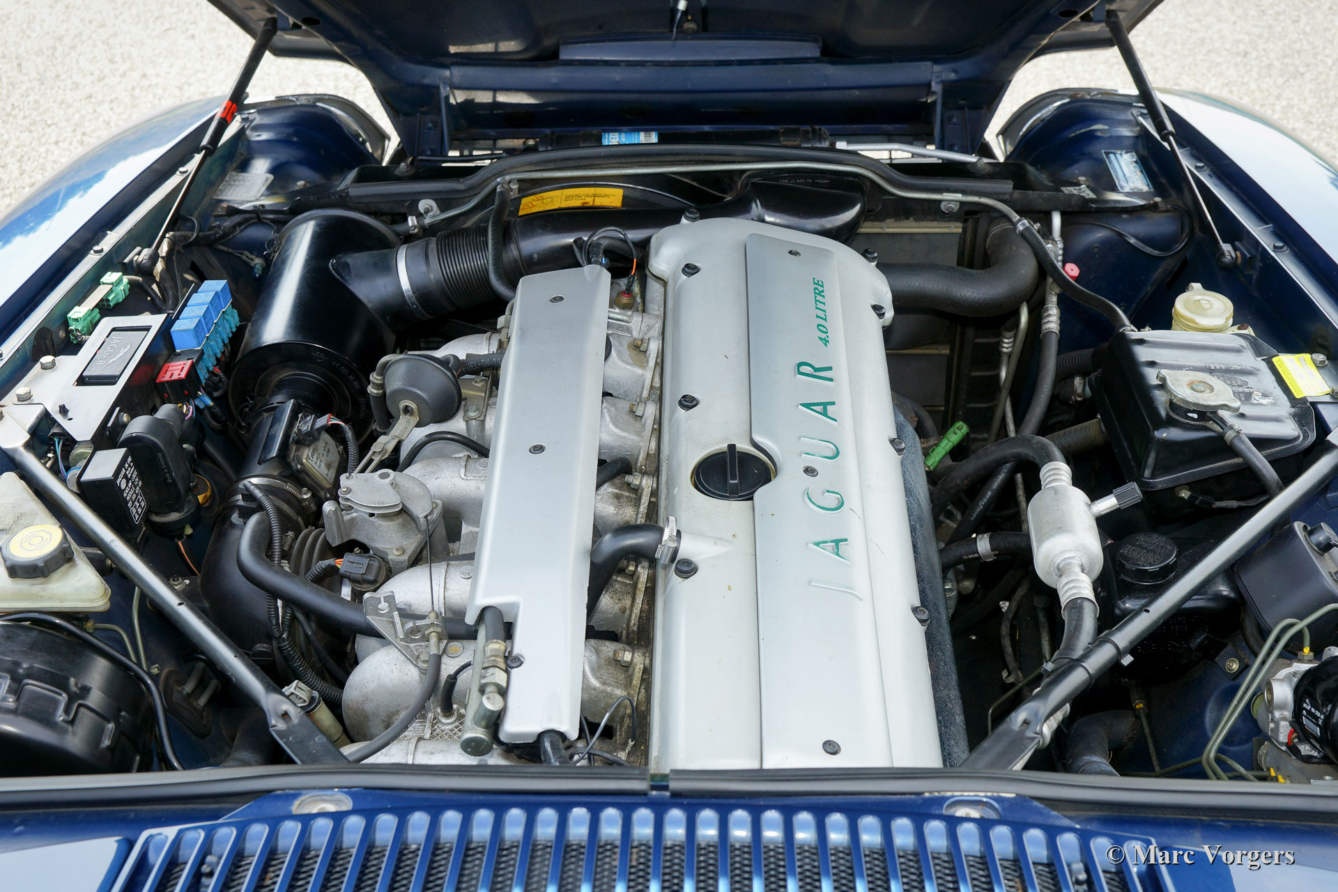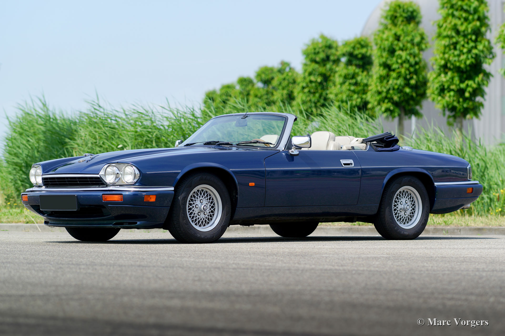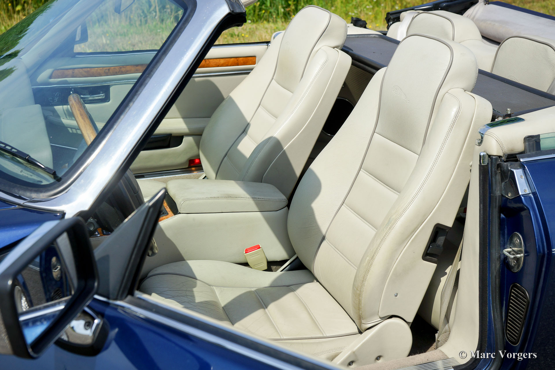 Jaguar XJS 4.0 Cabriolet, année 1995. Couleur bleu foncé métallisé avec un intérieur cuir « magnolia » beige clair et une capuche en mohair bleu foncé. Cette magnifique Jaguar XJS 4.0 Cabriolet est en très bon à excellent état ! La voiture a parcouru 199.500 kilomètres. La carrosserie et le travail de peinture sont excellents et mécaniquement la voiture fut entretenue très bien. Cette impressionnante Jaguar XJS conduit parfaitement ! Le moteur six cylindres est un pur délice et la boîte de vitesses automatique évolue en douceur et rapidement L'automobile est actuellement immatriculée en Belgique.