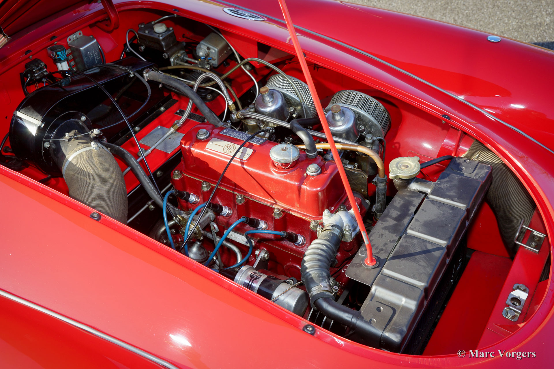 The year 1955 saw the introduction of the MGA. With this design the MG broke new grounds. After its predecessors MG TD and MG TF, which were largely based on the pre-war MG TB, it was a roadster with a very modern sporty design. Like its predecessors, the MGA was a great success and, like before, the greater part was sold in America. Until 1959, the MGA was equipped with a 1459 cc four-cylinder engine. From that year, the car was fitted with a 1588 cc four-cylinder. A 1622 cc four-cylinder engine replaced the 1588 cc. engine in 1961. The early MGA versions had very good drum brakes until 1959, but after that year, the MG A was equipped with disc brakes on the front wheels. The year 1962 saw the production of the MGA, the A 1600 Mk II. The MGB replaced this very popular British sports car, and was to develop the success of the MG A even further.