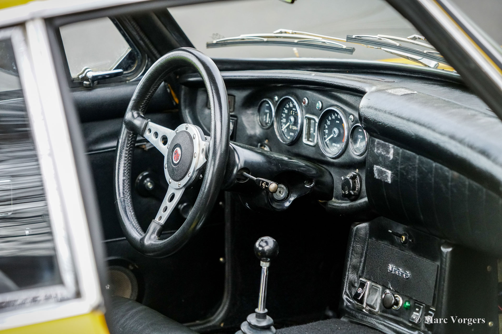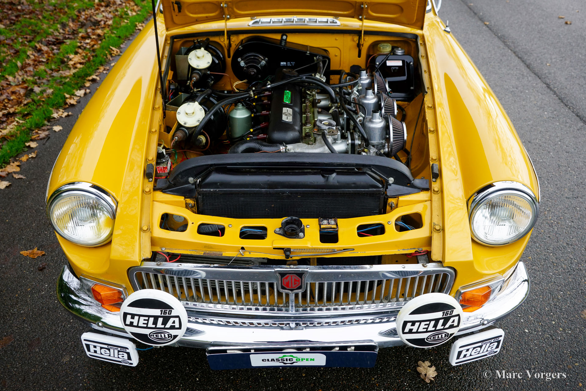 De MGC was built between 1967 and 1969 and was meant to be the successor of the Austin Healey. The MGC bodywork is identical to the MGB. De MGC was powered by a 2912 cc. six-cylinder in-line engine with an output of 145 bhp. The powerful engine made a top speed of 190 km/h (118 mph) possible. To cope with the weight of thee six-cylinder in stead of the four cylinder the MGC was equipped with a stronger torsion bar- suspension in front. 4542 MGC cars were built of which about 50% featured GT bodywork.