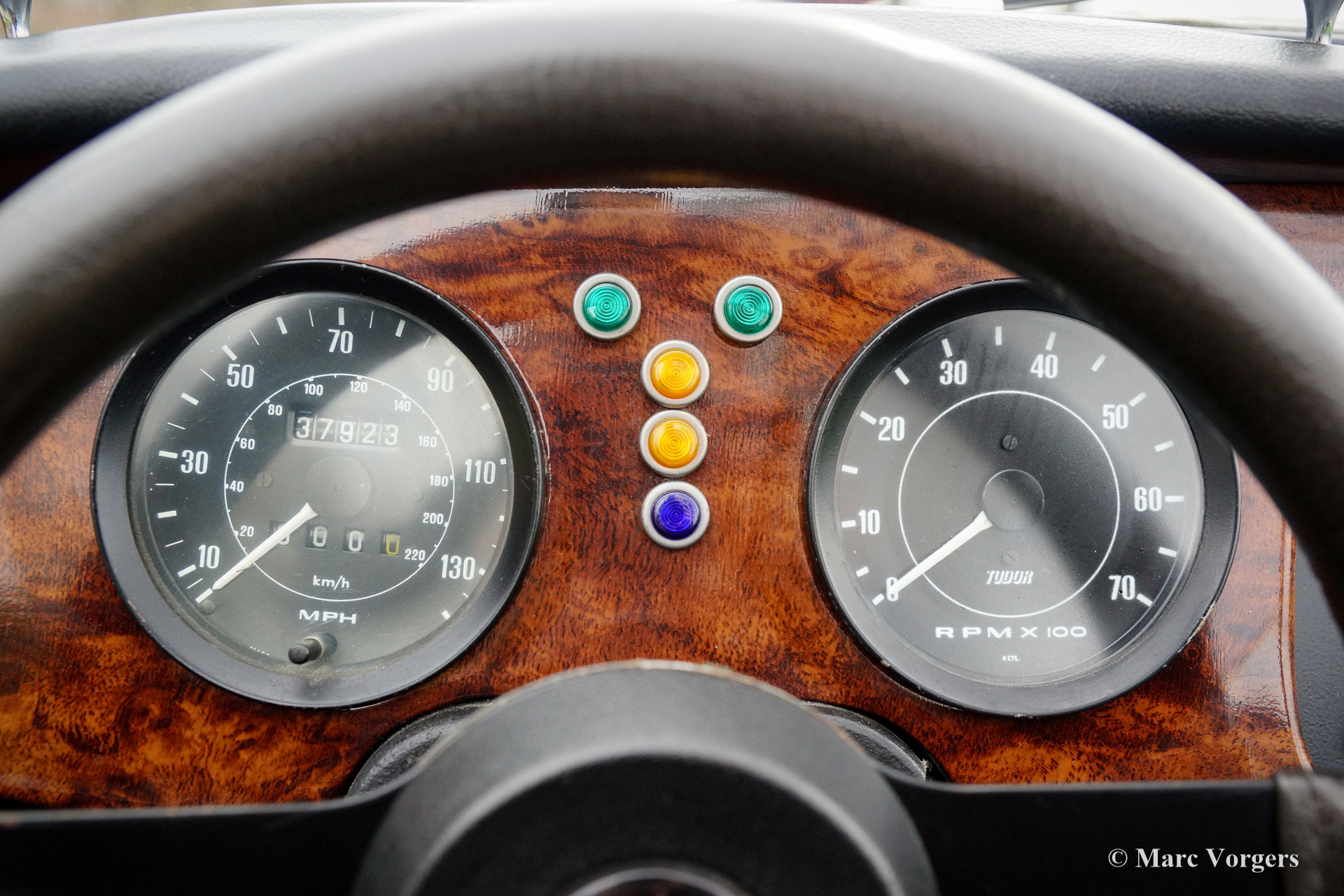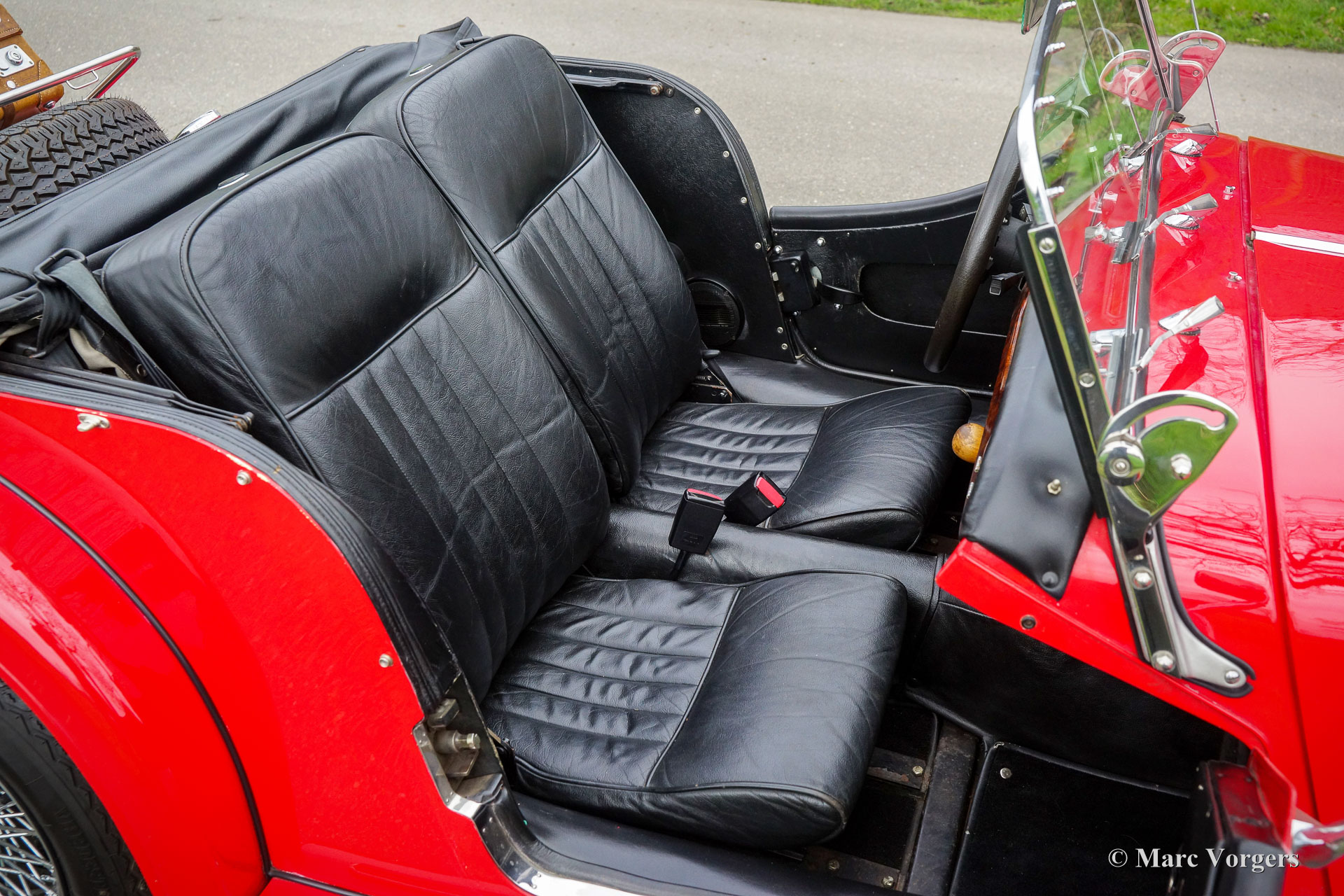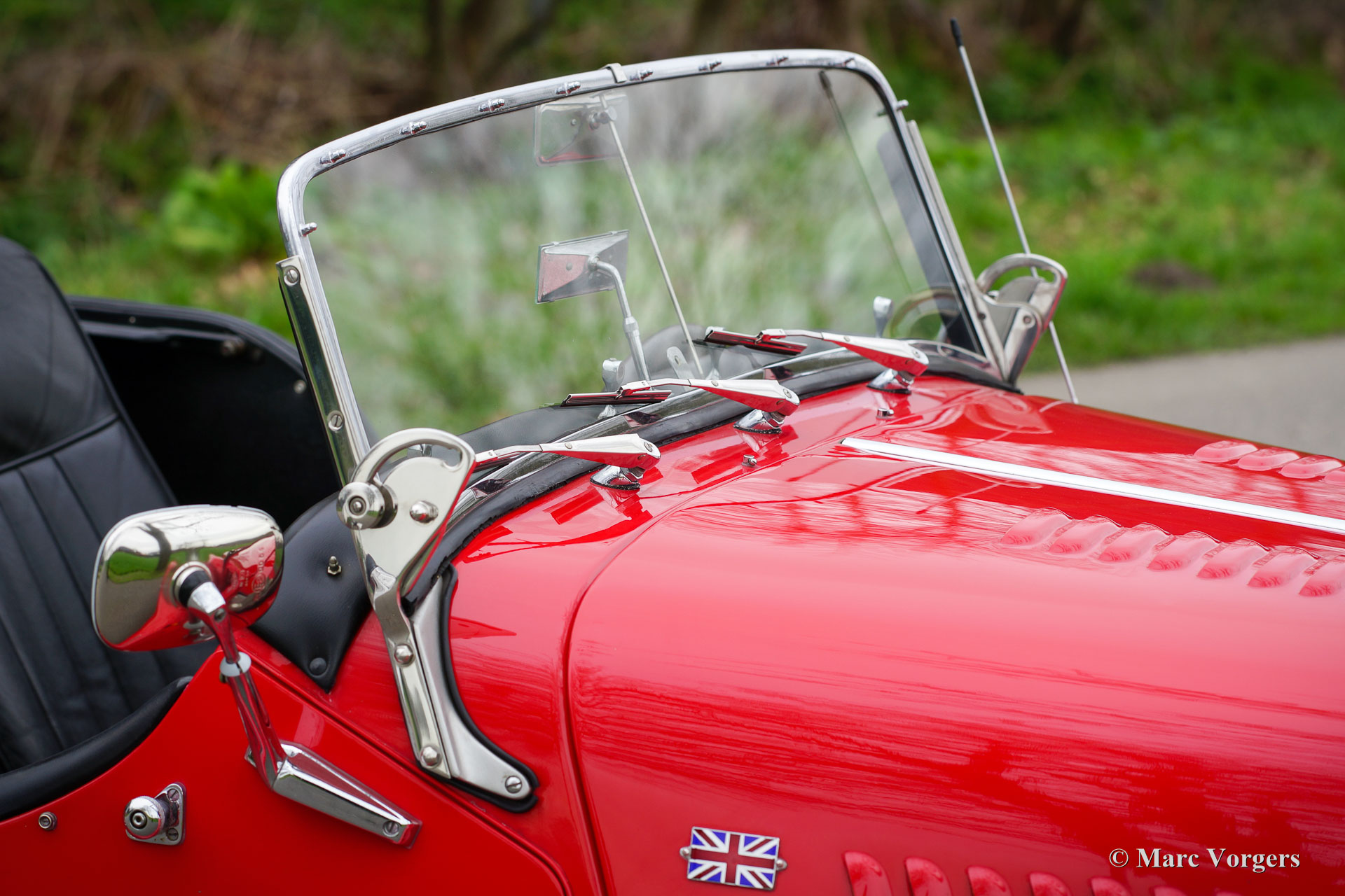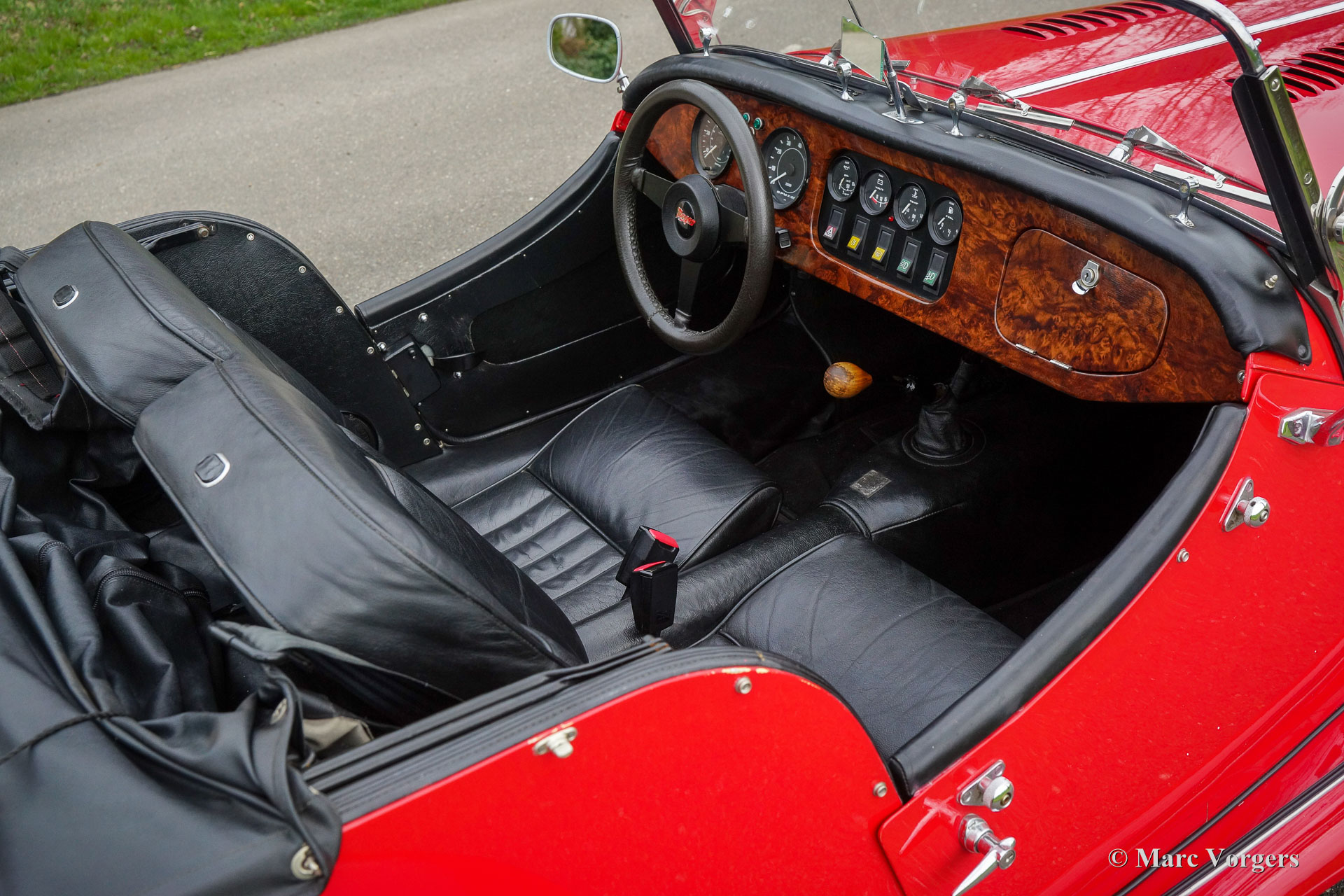 Morgan 4/4, année 1989. Couleur rouge combinée avec un intérieur en cuir noir et un tapis noir. Capote noire. Cette magnifique Morgan 4/4 fut importée du Royaume-Uni en 1997 et peu de temps après convertie en direction à gauche. Cette Morgan est en très bon état et elle roule délicieusement. La voiture offre la fantastique expérience de conduite d'une voiture de sport britannique vintage ‘plein ciel’ avec une vue fantastique sur un long capot avec des ouïes de refroidissement. La voiture est équipée de nombreuses options souhaitables telles que des roues à rayons chromées chaussées de pneus 165-15, deux rétroviseurs chromés montés sur les portes, une paire de projecteurs Lumax à l'avant, un porte-bagages chromé, un tableau de bord en noyer avec pommeau de levier de vitesses assorti, une ceinture en cuir sur le capot et un bouchon de réservoir d'essence verrouillable. Le pare-brise peut être rabattu, des supports sont présents pour fixer les deux parebrises de course aérodynamiques « Brooklands ». Cette belle Morgan 4/4 est équipée du moteur quatre cylindres Ford (CVH) de 1600 cm3, d'une boîte de vitesses manuelle à cinq rapports et de freins à disque sur les roues avant. Il s'agit d'une fantastique Morgan 4/4 en très bon état qui apportera au nouveau propriétaire des années et des années de plaisir de conduite vintage !