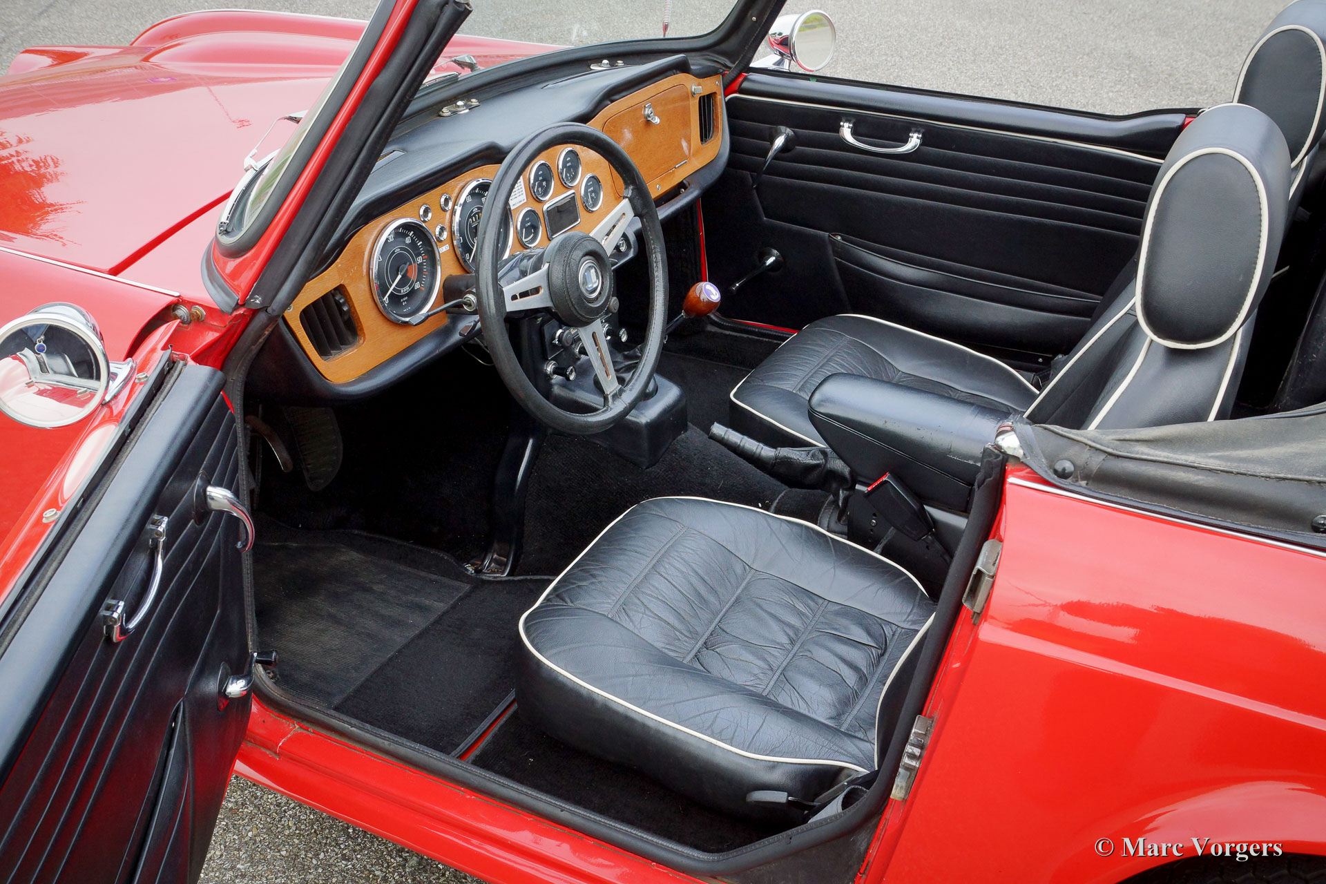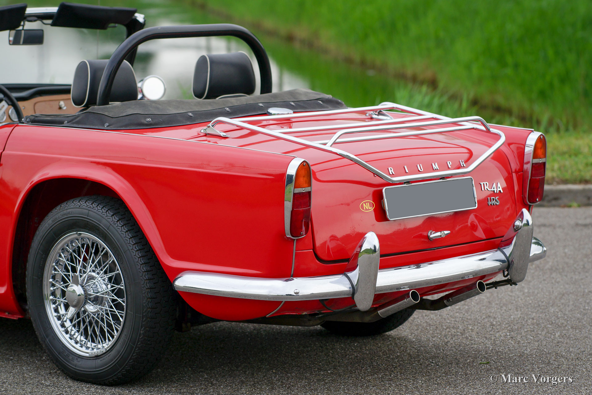 Triumph TR 4A IRS, année 1967. Couleur rouge avec un intérieur cuir noir et tapis noir. Cette belle Triumph TR 4 a été caressé par le même propriétaire depuis plus de 15 ans. L'automobile a été entretenu parfaitement et la voiture est en très bon à excellent état ! Au cours des dernières années, plusieurs révisions et améliorations ont été réalisées ; le moteur a été révisé et adapté pour fonctionner à l'essence sans plomb, l'embrayage a été renouvelé, et une AC générateur a été équipé. Le Triumph TR 4 A IRS est le dernier modèle de la série TR 4 et il dispose d'une suspension arrière indépendante (Independent Rear suspension, IRS) où ses prédécesseurs arboraient un essieu arrière en direct. Cette belle Triumph TR 4 A IRS conduite parfaitement ! La voiture est équipée de roues en fil chromé, servofrein, overdrive, un bar roll-over, un ventilateur de refroidissement électrique, sièges spéciaux « confort » avec arrières repose plus élevés et des appui-têtes, deux rétroviseurs chroment ‘bullet-style’, un porte-bagages chromé et un accoudoir central de pièces de rechange. En outre, un document patrimoine de ‘British Motor Heritage’ est présente.