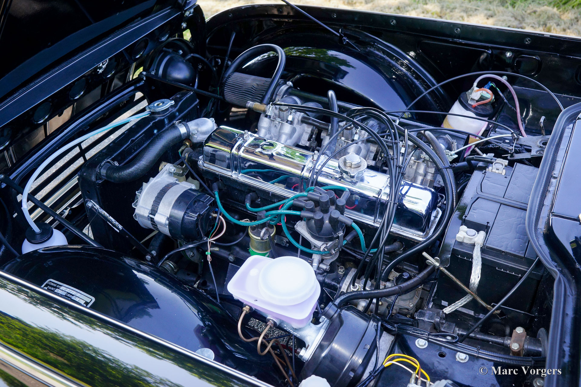 The six cylinder engine originally came from the Triumph 2000 saloon. For use in the TR 5 Triumph enlarged the cylinder capacity up to 2498 cc., fitted a more racy camshaft and petrol injection. Result was that they gained 60 bhp. to the standard engine, enough for the engine to be used in a sports car like the TR 5.