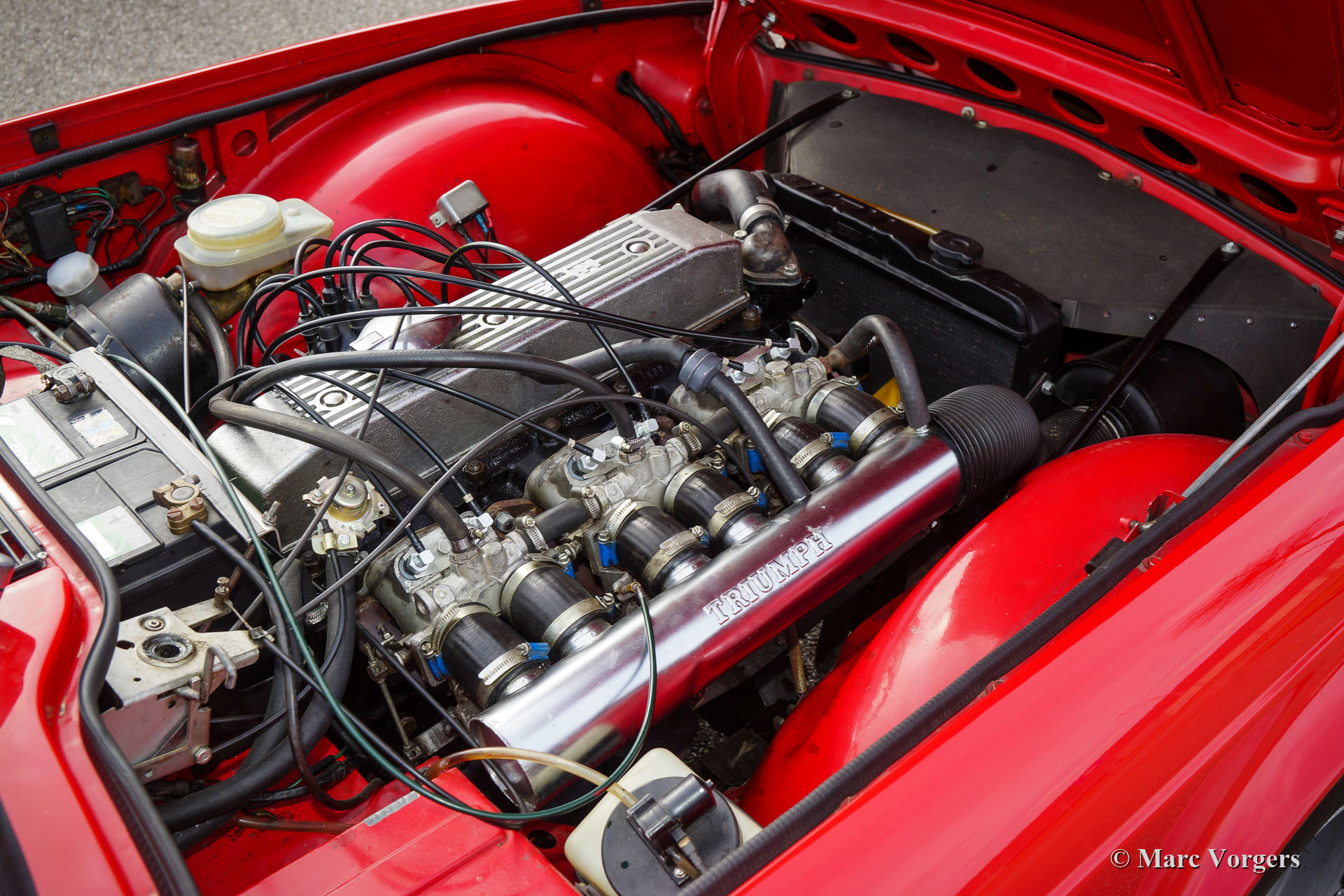 The 2498 cc. straight six with P.I. (Petrol Injection) system had a power output of 150 SAE hp. The complex P.I. system did not make it to the US market because is was delicate to service and adjust. The TR 5 for the US market was fitted with two carburettors and was named Triumph TR 250.