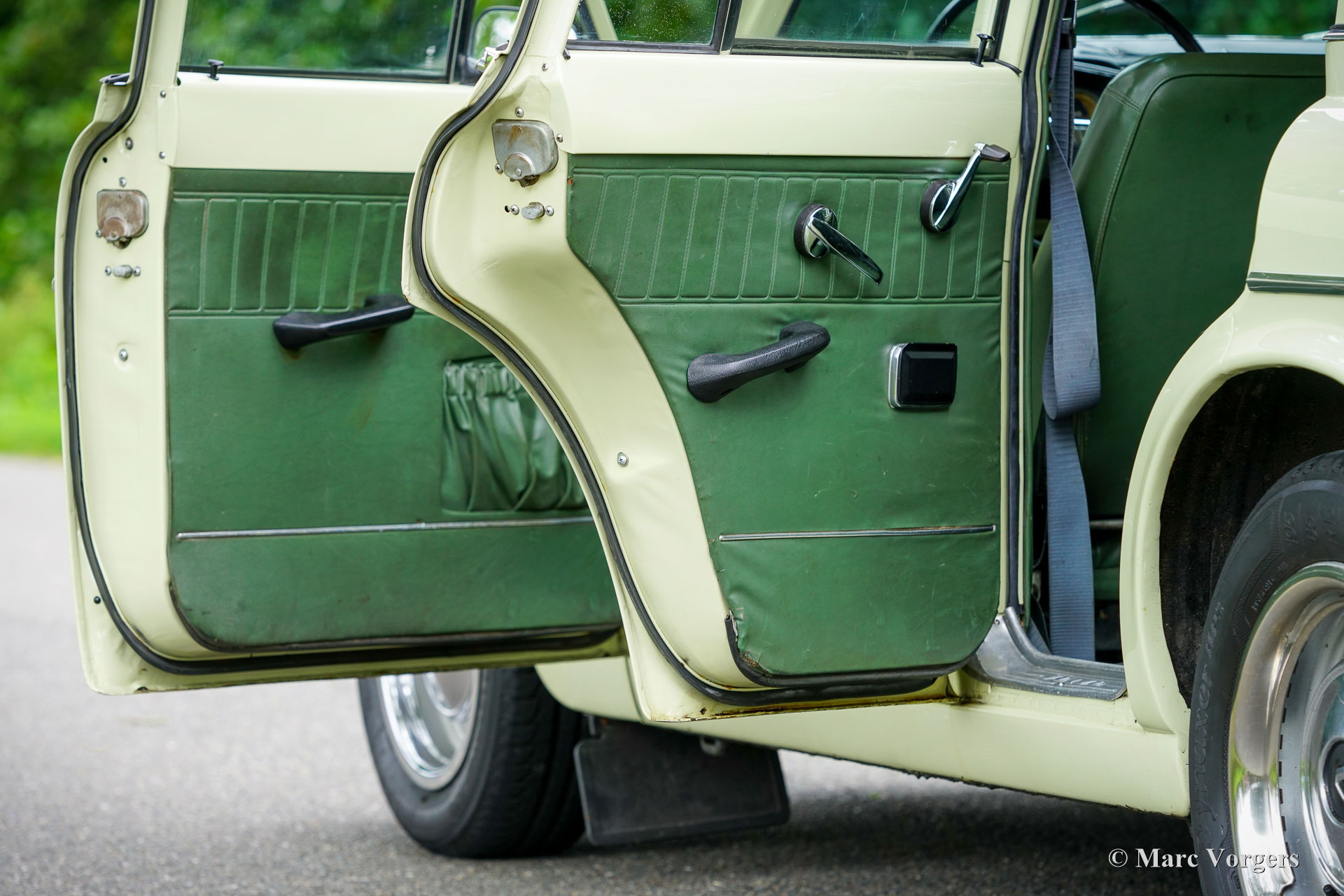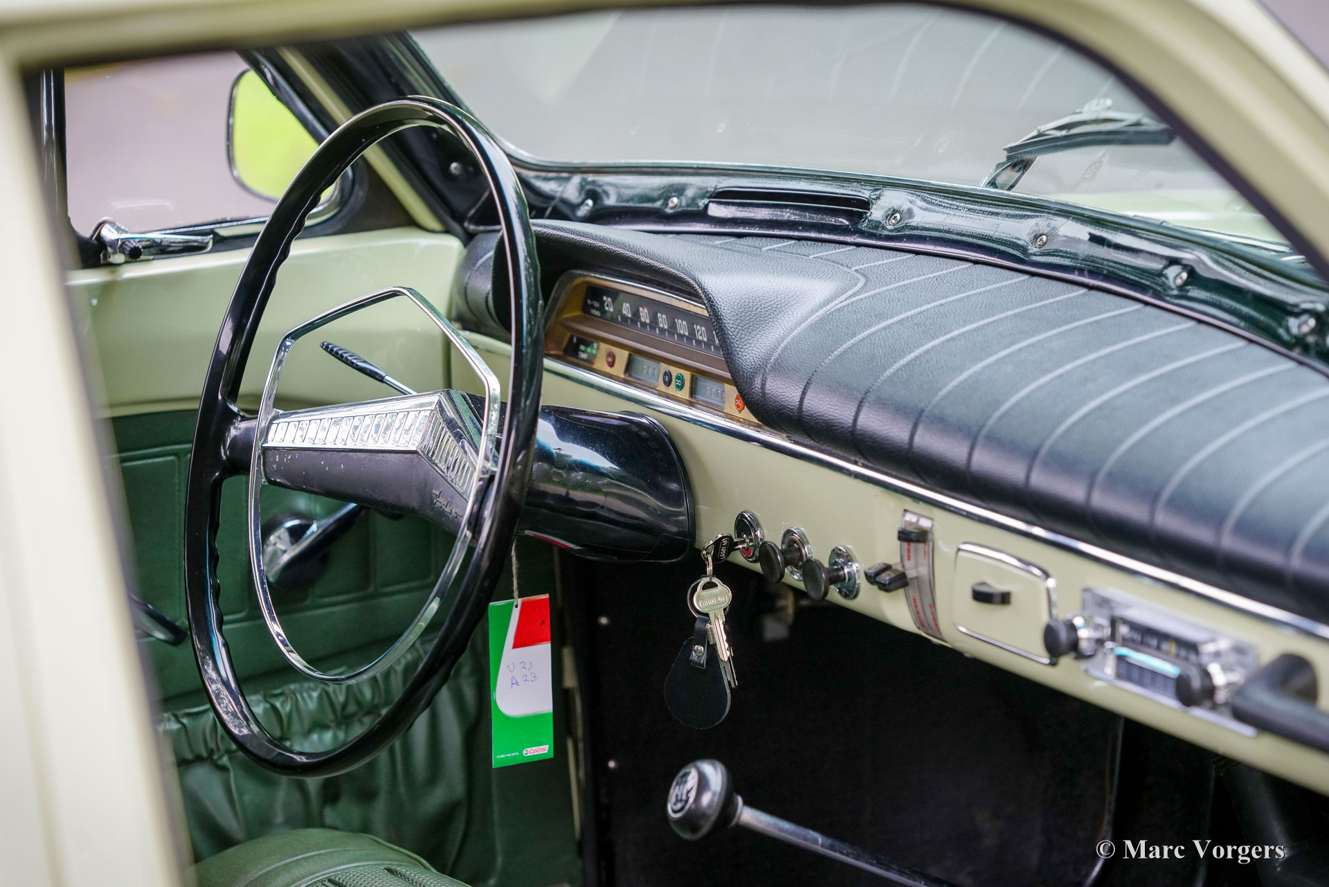 Volvo Amazon 121 Station Wagon, année 1967. Couleur vert clair avec intérieur en similicuir vert assorti. Ce magnifique Amazon Combi a été vendu neuf aux Pays-Bas en 1967. Le compteur affiche actuellement 70 000 km, dont seulement 5 000 km parcourus au cours des cinq dernières années – un document complet. La carrosserie fut magnifiquement restaurée et repeinte dans sa couleur d'origine. Elle a également été exceptionnellement bien conservée et traitée antirouille. Le moteur a été remplacé par un moteur d'échange entièrement reconditionné fourni par Volvo Suède. Ce célèbre et très fiable moteur B18 (1 778 cm³) développe 85 ch et fonctionne à merveille. L'Amazon est une voiture classique suédoise emblématique, et dans sa version break, elle est particulièrement rare et désirable. Conduire une Amazon est une expérience unique. Cette Volvo (P221) est équipée d'un servofrein et d'un alternateur. Cette Volvo 121 est un break classique merveilleusement spacieux, très pratique avec ses quatre portes et son grand hayon. Le coffre à bagages est d'une générosité impressionnante, idéal pour les escapades du week-end ou les visites de marchés vintage. L'historique d'entretien récent, parfaitement documenté, est parfaitement connu et réalisé avec le plus grand soin. Cette Volvo 121 est en très bon, voire excellent état, un exemplaire très recherché pour les véritables passionnés de Volvo classiques !