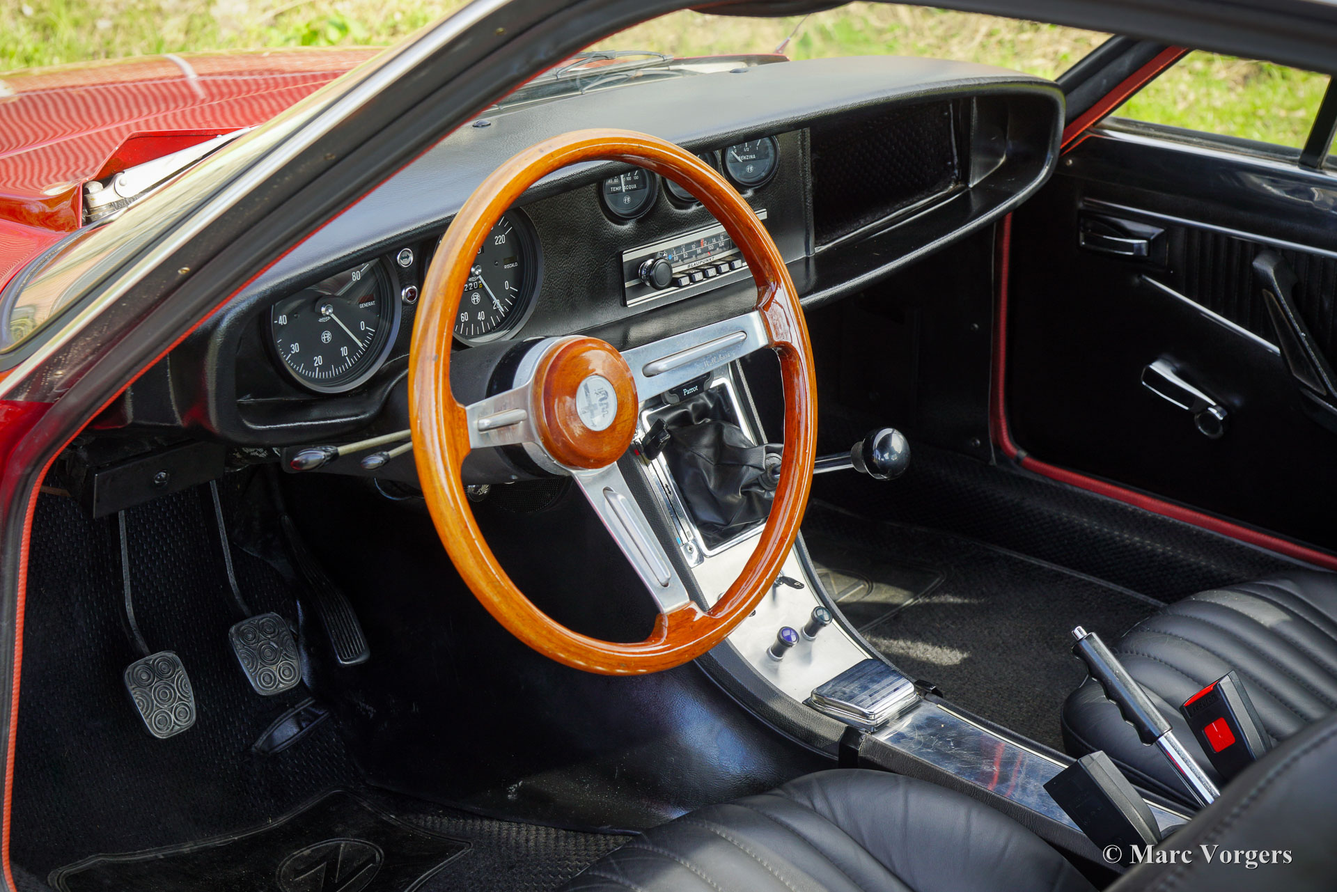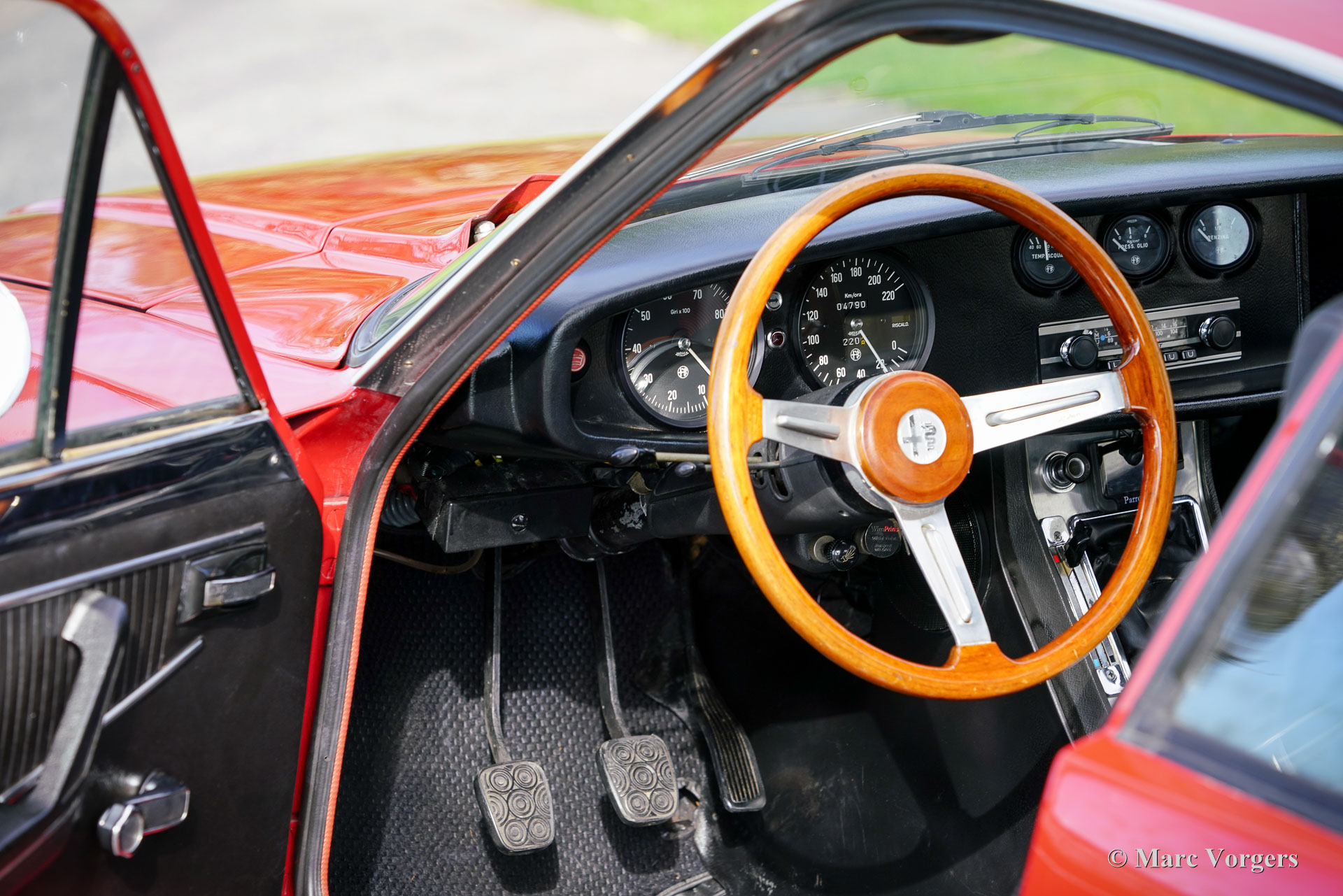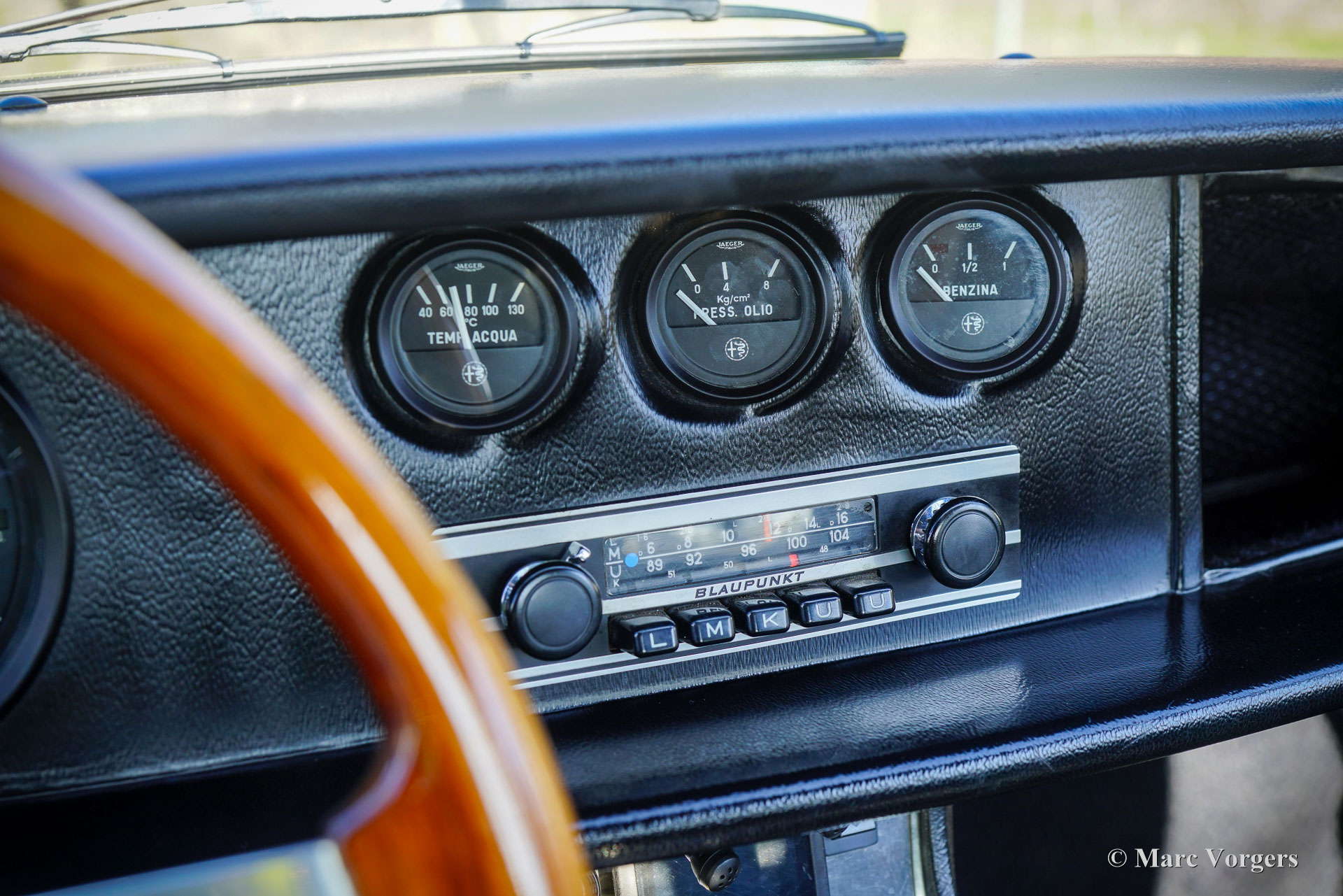 The exterior and the interior are exclusive for the Zagato, original body lines, sportive flair and functional in use. The body work shows intriguing details like the front grille and the bonnet shape near the windscreen wipers. Compared with the 1300 Zagato the 1600 shows a few different details: the front bumper is slightly bigger and stronger, the rear bumper was modified, larger rear lights are fitted, new lettering on the rear of the car and a new steering wheel was fitted.