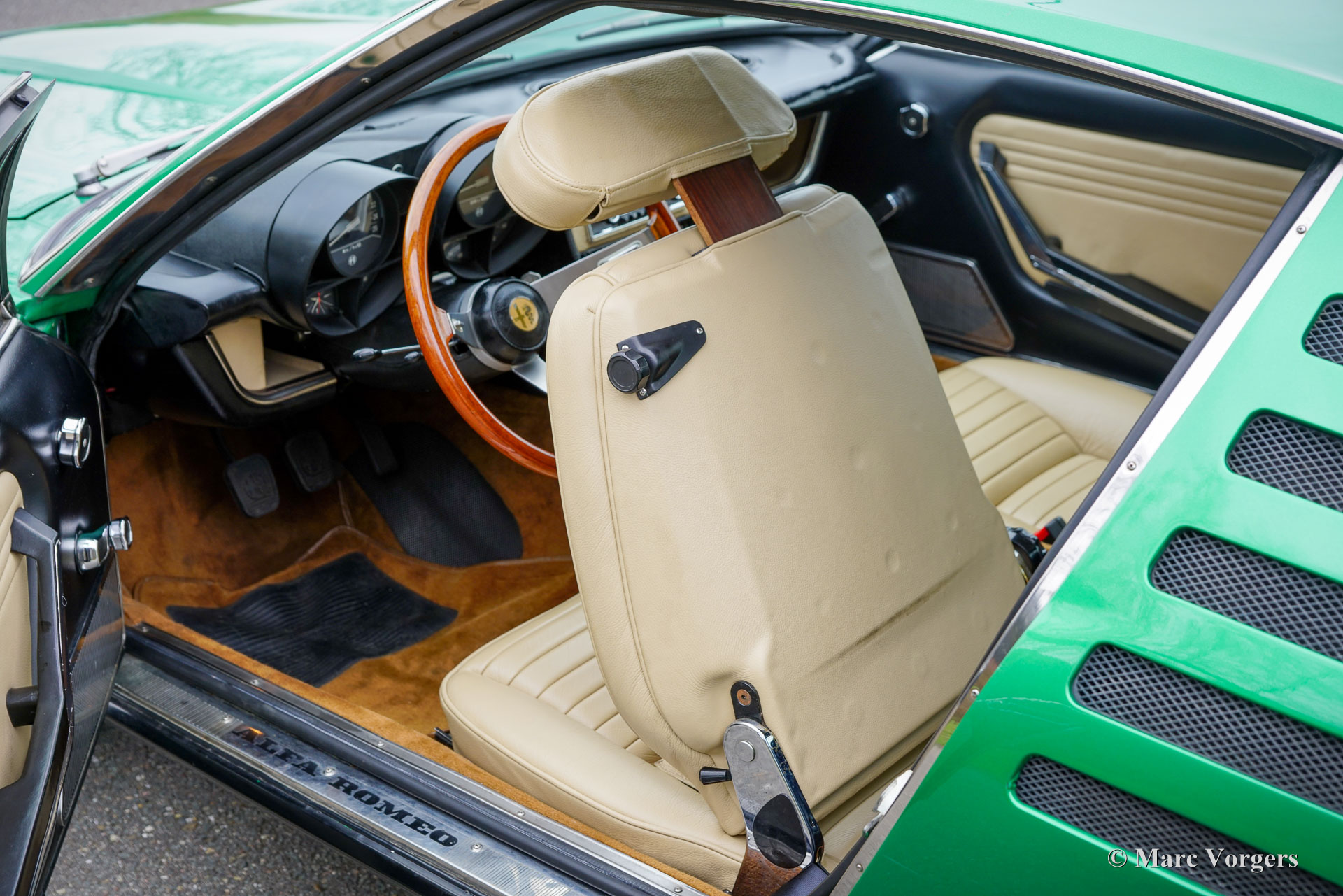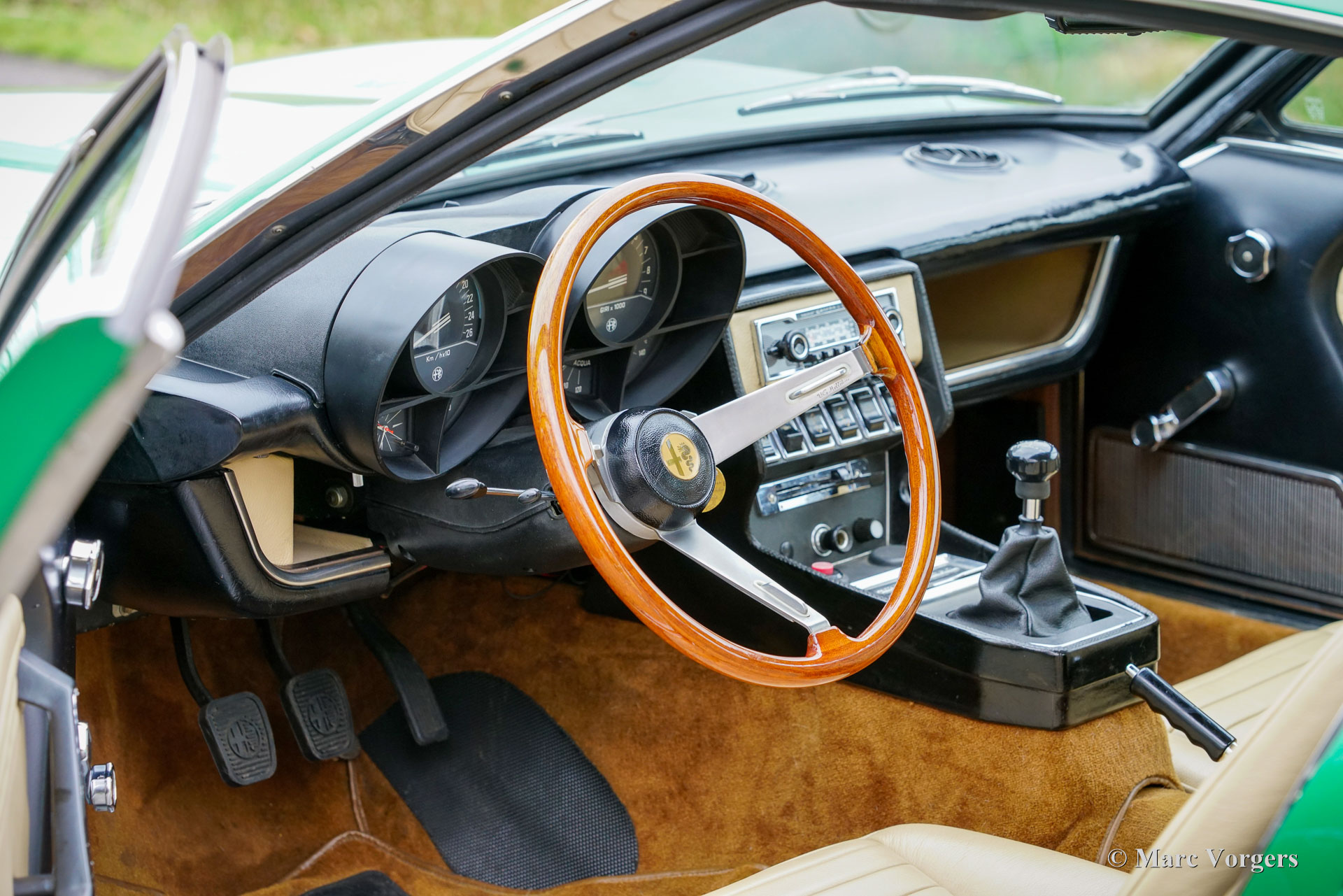 The Alfa Romeo Montreal drives comfortable/ sportive and is very well suited to drive long distances; a real GT. The engine sounds incredible, also inside the cabin. The dashboard design combined with the view over the bonnet is exquisite.