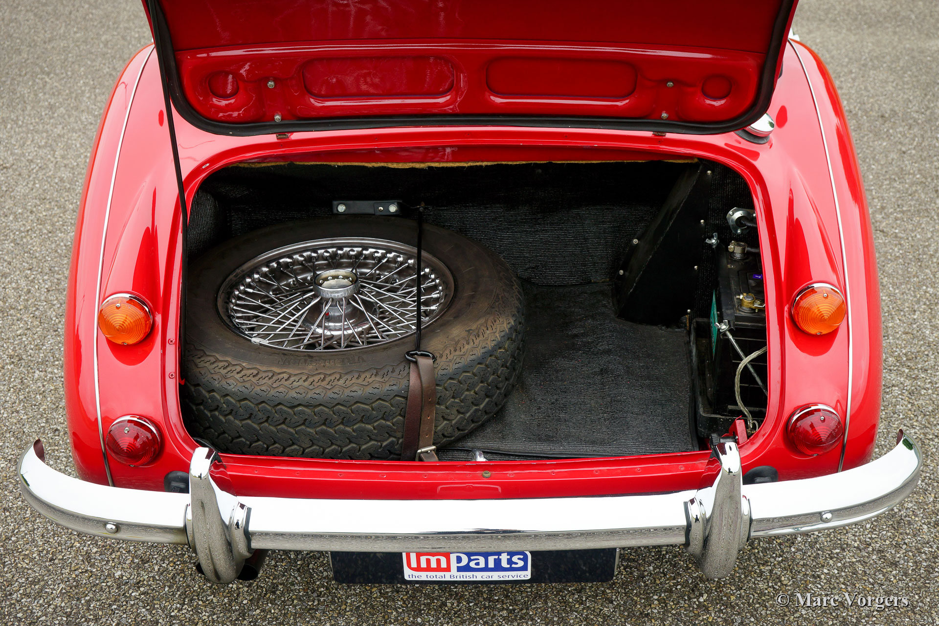 The former Healey models were more Spartan and featured fully detachable soft tops with separate side screens which could be stowed away in the booth.