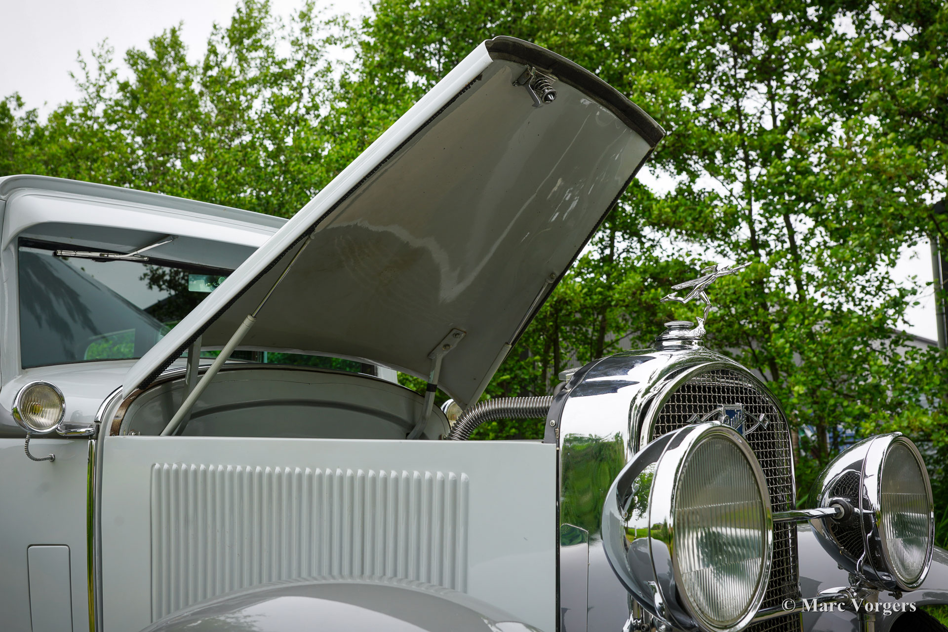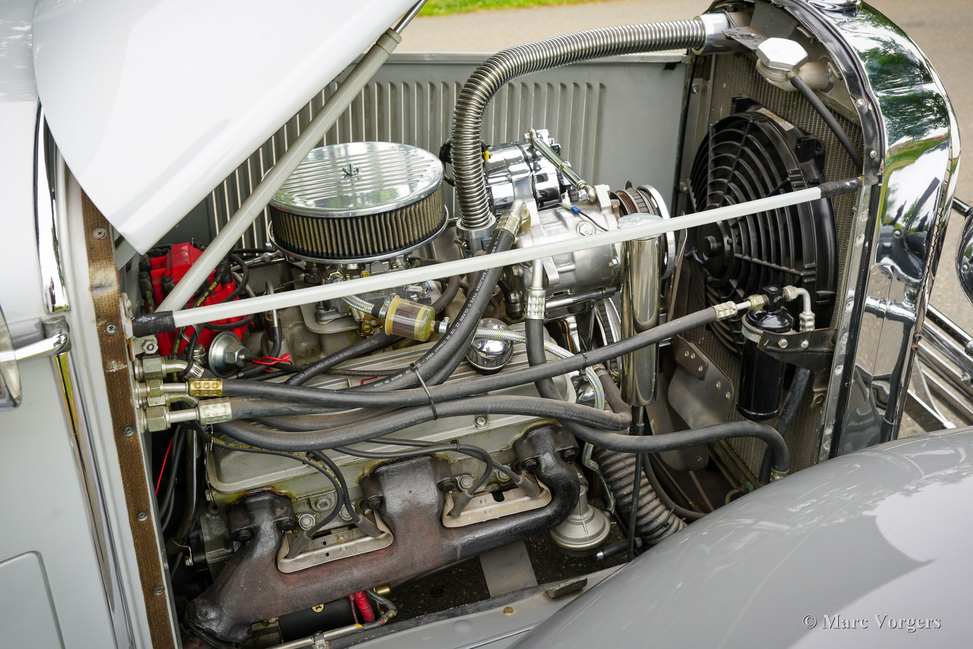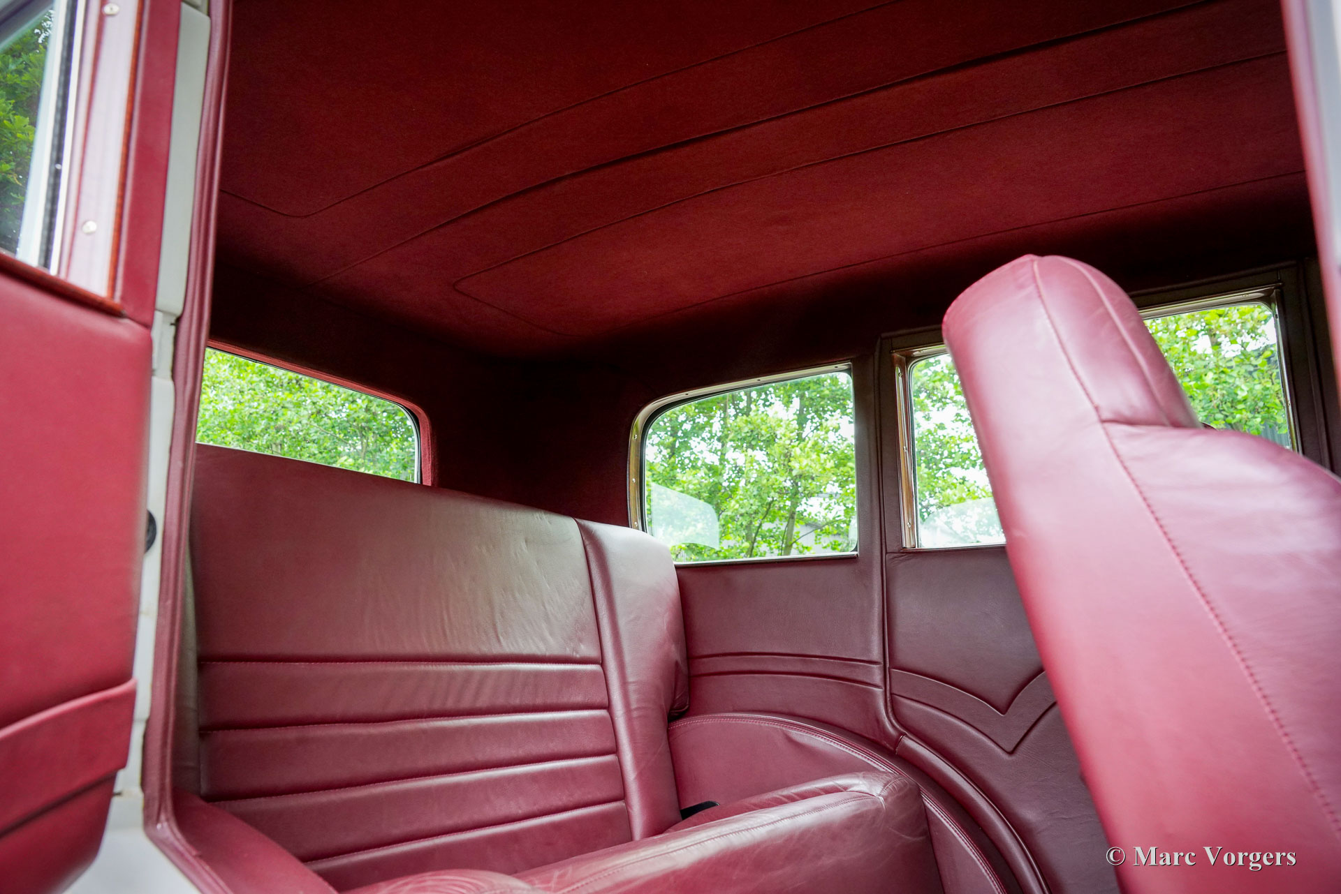 Buick Sedan Modèle 47 Restomod, année 1929. Finition gris bicolore avec intérieur cuir bordeaux (avec moquette et ciel de toit assortis). Cette berline sept fenêtres et quatre portes a été entièrement restaurée et modifiée aux États-Unis. Issue de la gamme Buick Six de la fin des années 1920, elle bénéficie aujourd'hui d'une mécanique moderne, avec notamment un moteur V8 Chevrolet 350Ci (200 ch) et une transmission automatique TH350, remplaçant ses six cylindres en ligne d'origine et ses jantes en bois ! L'intérieur a été modernisé dans le style des années 1980 avec des sièges en cuir confortables. Parmi les équipements importants, citons la suspension avant indépendante, la suspension pneumatique arrière, les jantes Truespoke de 15 pouces, la direction assistée, les freins à disque assistés, le verrouillage centralisé, les vitres électriques à l'avant et à l'arrière, et un système radio/CD Sony 4×50 watts. Cette magnifique berline d'avant-guerre restaurée, qui affiche le caractère d'un puissant cruiser américain des années 80, est proposée avec une documentation et une immatriculation néerlandaise. Une restauration unique !