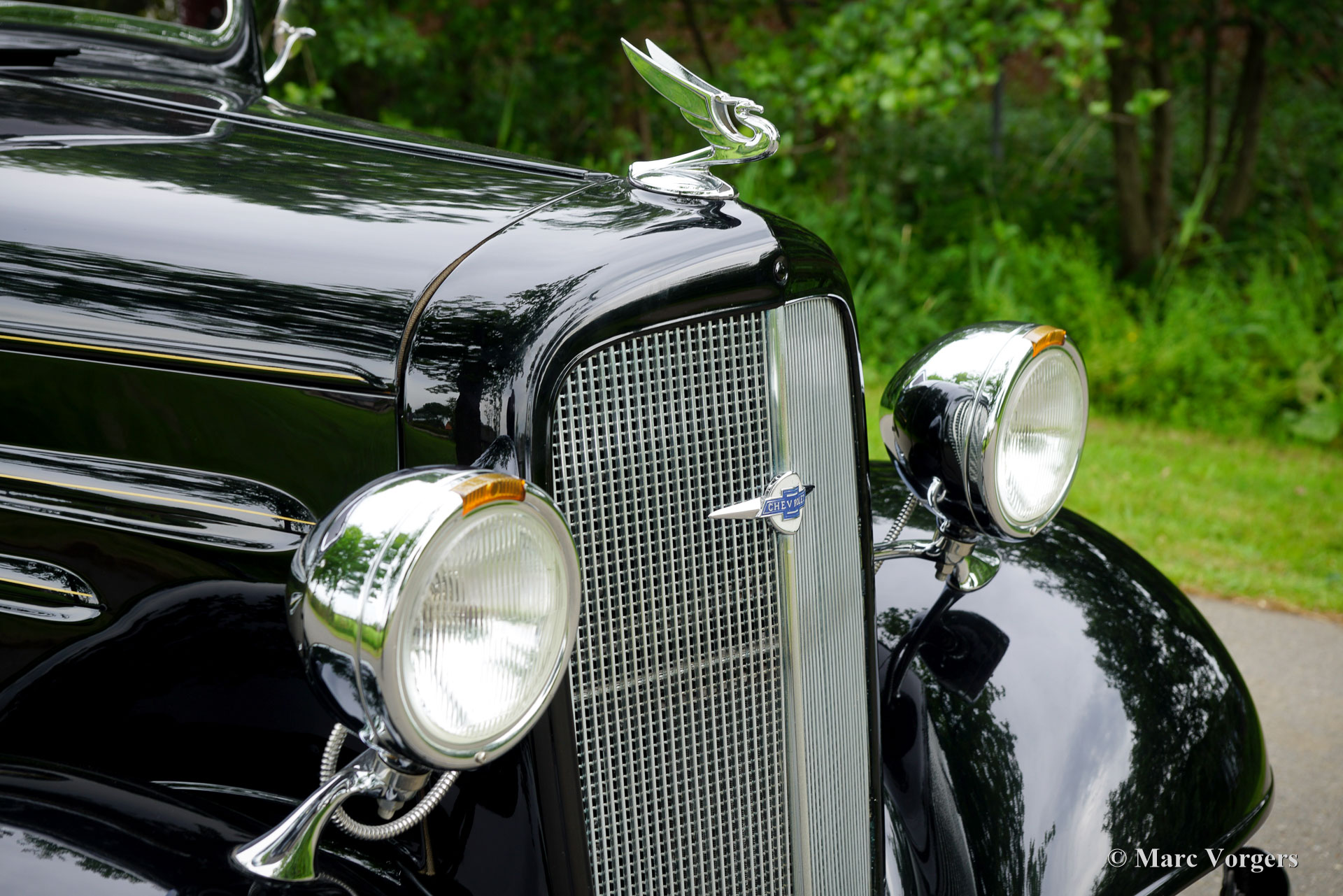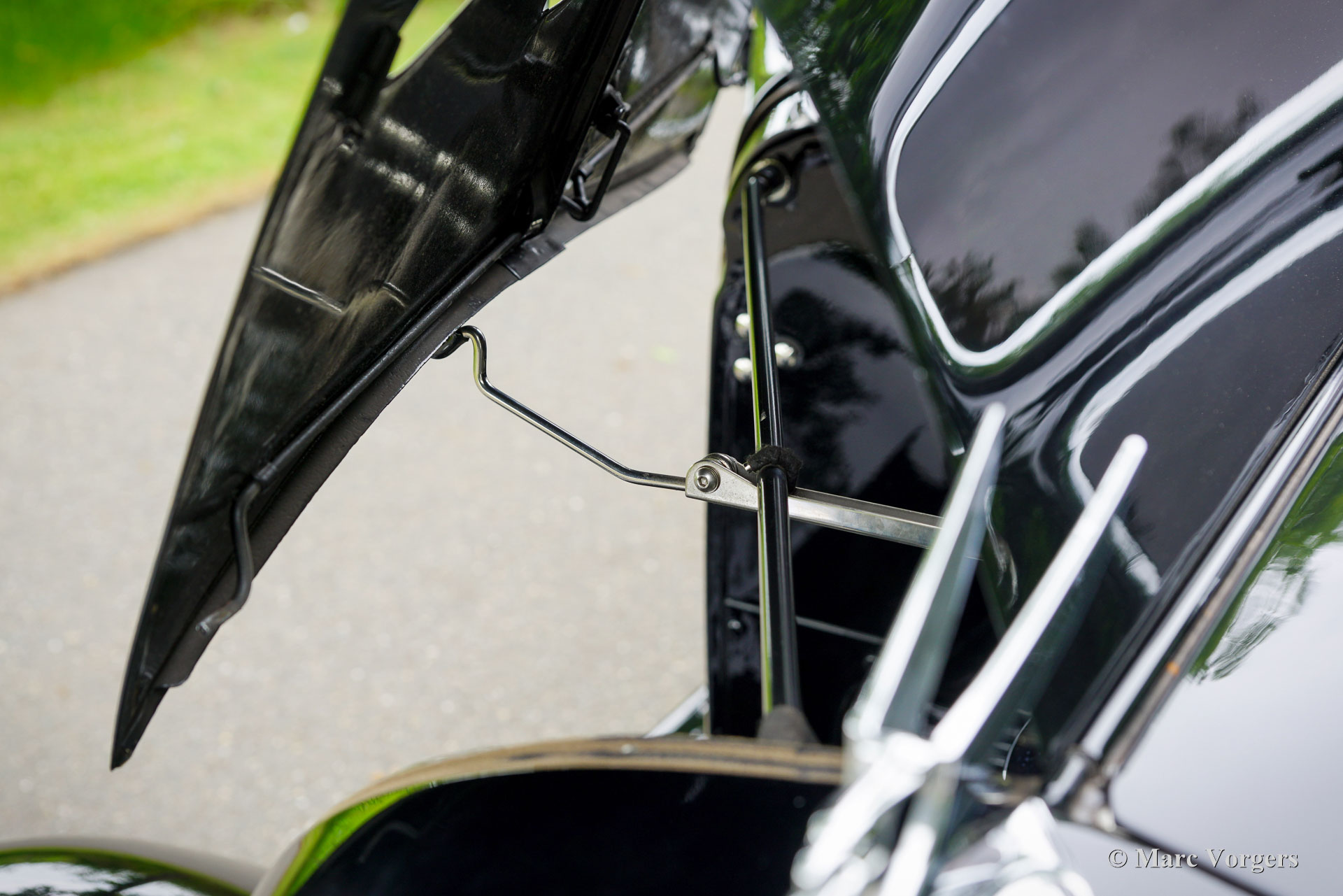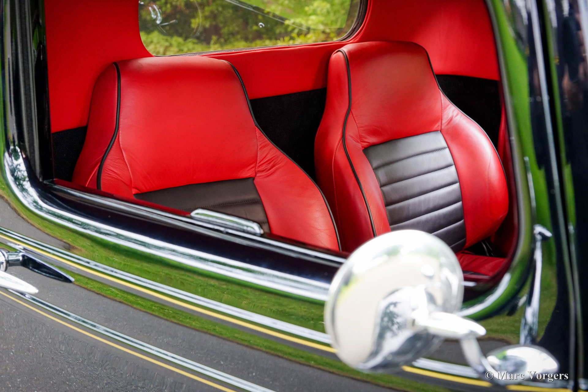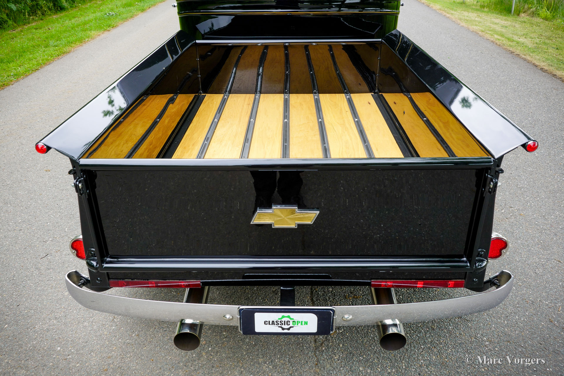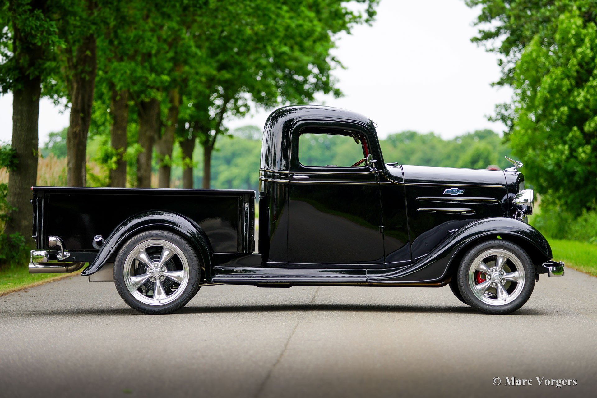 Chevrolet Pick-Up restomod, année 1936. Ce Chevrolet Pick-Up de 1936, noir avec intérieur en cuir rouge / noir, fut entièrement restauré et modernisé aux Pays-Bas. Il conserve les lignes d'origine d'avant-guerre tout en intégrant des améliorations mécaniques et esthétiques contemporaines. Une proposition unique pour ceux qui apprécient un design classique allié à des performances améliorées et une allure époustouflante ! Ce Chevrolet Pick-Up a été construit pendant une année de transition. Ce modèle allie des caractéristiques de la série 1935 à des éléments émergents du style 1937, ce qui le rend à la fois rare et distinctif. Seulement quelques milliers d'exemplaires furent produits, ce qui en fait un modèle de 1936 rare et de collection. Cet exemplaire était magnifiquement construit et fini, et la voiture roule parfaitement. Ce restomod unique est accompagné de ses documents et de son immatriculation néerlandaise. Une trouvaille unique qui attirera tous les regards !