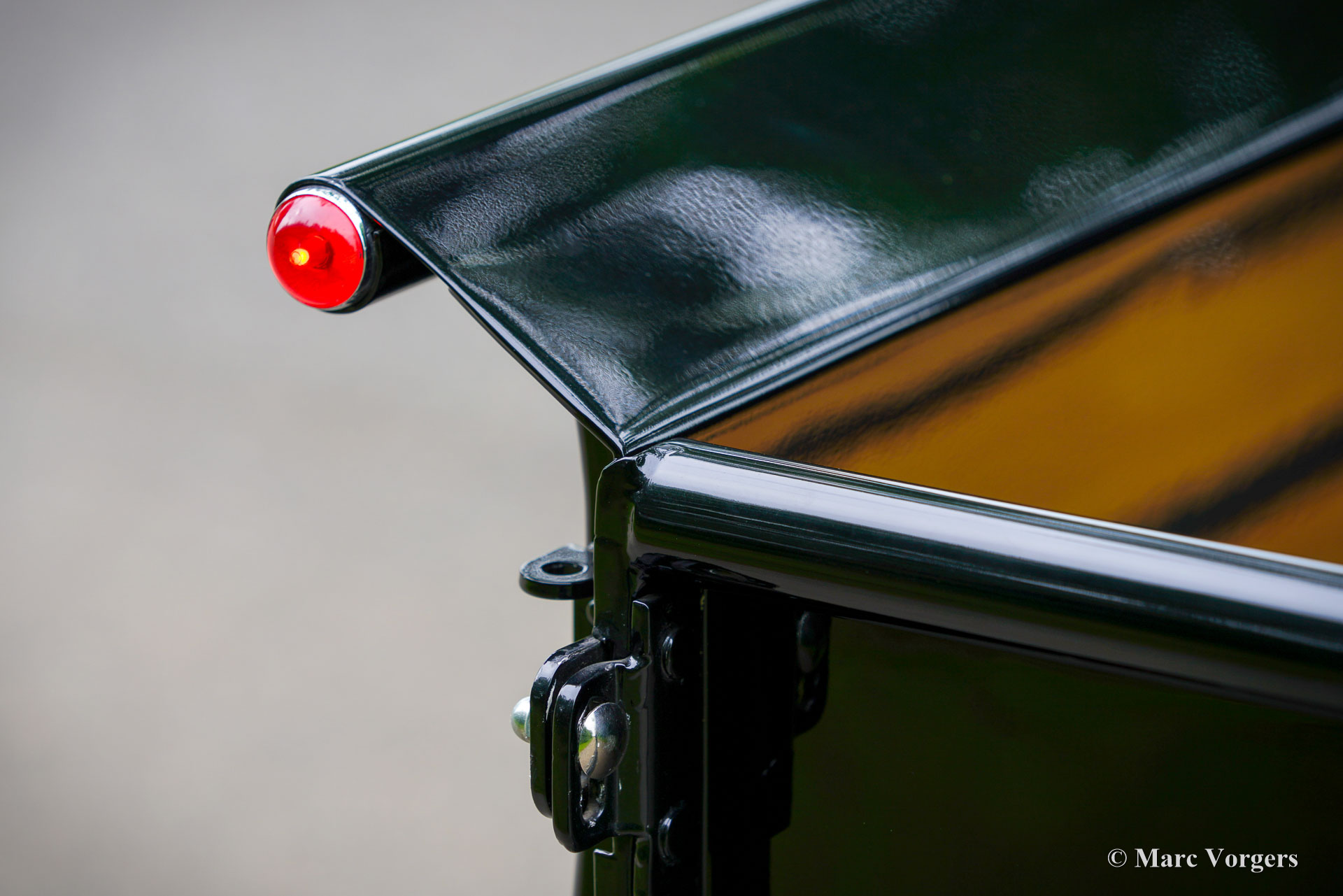 - Carburant et carrosserie : Réservoir et conduites de carburant en acier inoxydable ; nouvelle tôlerie de la benne de chargement ; remplacement des caoutchoucs extérieurs, des profils d’ailes, des guides de vitres, des vitres teintées et un nouvel ornement de capot. Le châssis a été sablé et thermolaqué, tandis que la carrosserie a été entièrement rénovée, sablée, réparée, poncée et repeinte.