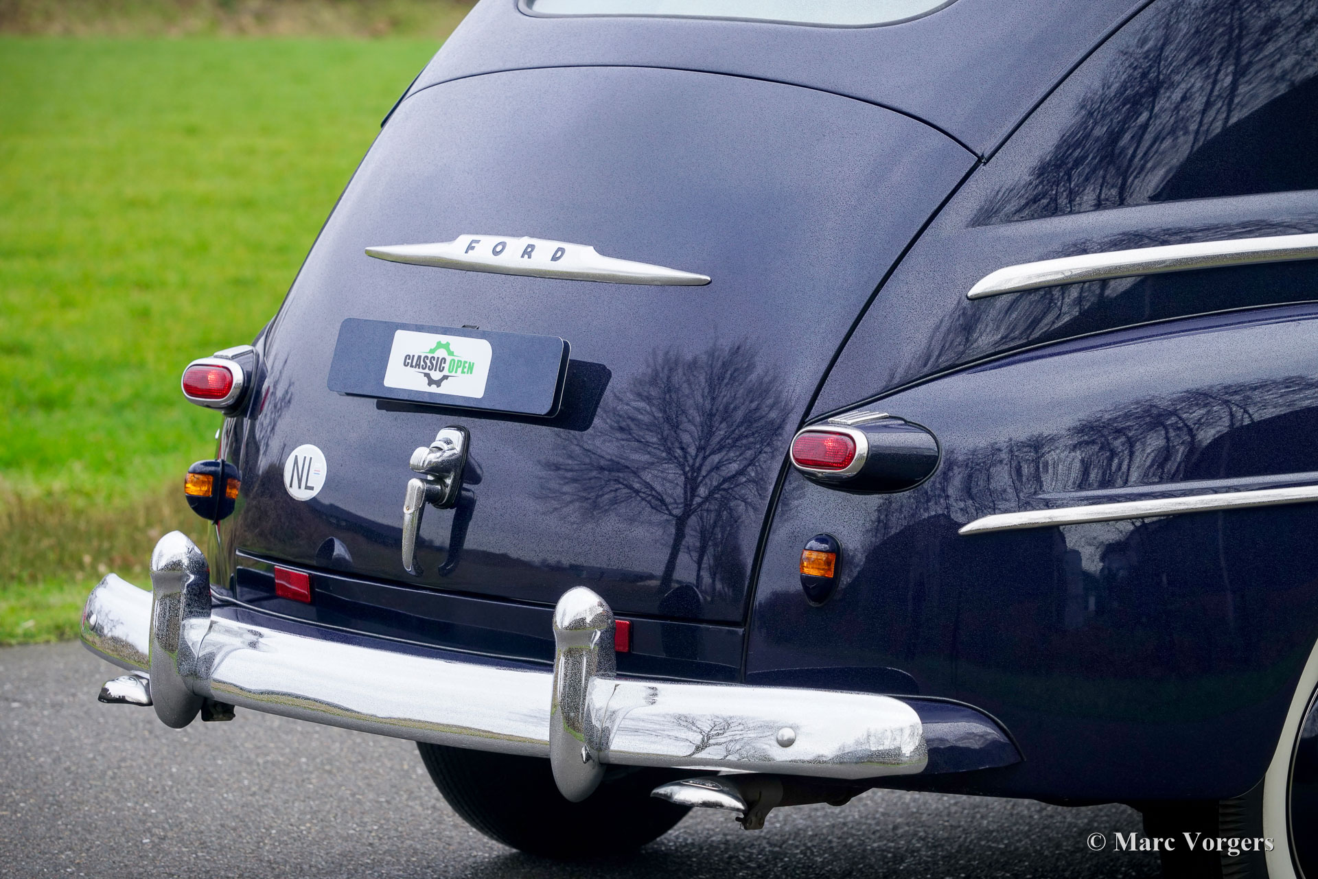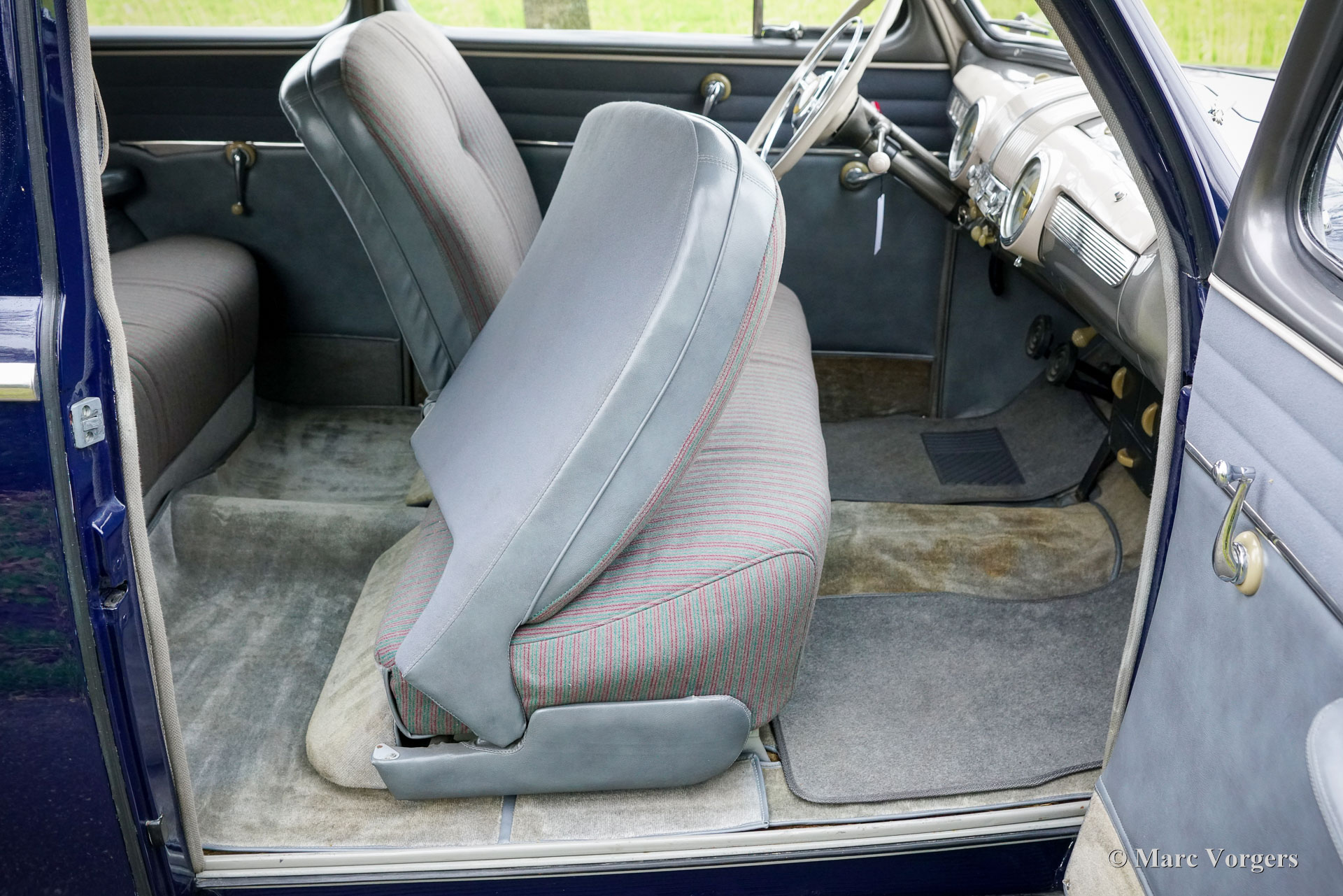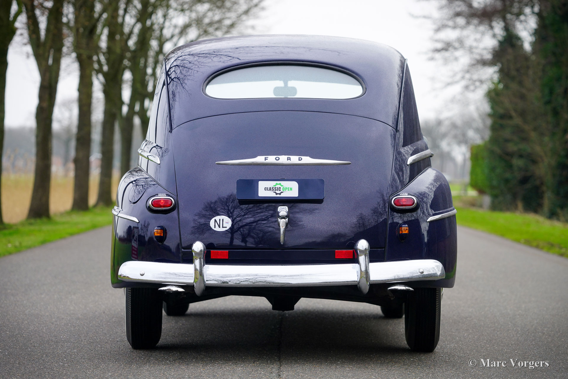 Ford Tudor V8, année 1947. Couleur bleu foncé combinée à un intérieur en tissu gris. Ce magnifique Ford V8 des années 40 a été vendu neuf aux USA. Il y a quinze ans, l'automobile était importée de Californie aux Pays-Bas. La voiture fut magnifiquement restaurée aux USA, cette Ford est dans un très bon et merveilleux état ! La voiture roule parfaitement, le V8 Ford « flat head » de 3,6 litres fonctionne à merveille et la boîte de vitesses manuelle à 3 vitesses avec levier de vitesses sur la colonne de direction fonctionne à merveille. La Ford n'a connu qu'un seul propriétaire néerlandais. Cette Ford Tudor V8 montre tous les détails d'origine. Le design extérieur est magnifique et le tableau de bord est un pur art ! L'automobile présente de légères traces d'utilisation antérieure, une patine qui complète ses presque 80 ans d'âge. Sous le capot, tout semble net et propre… presque comme neuf ! C'est votre chance d'acheter un classique américain très spécial, une voiture rarement vue en Europe.