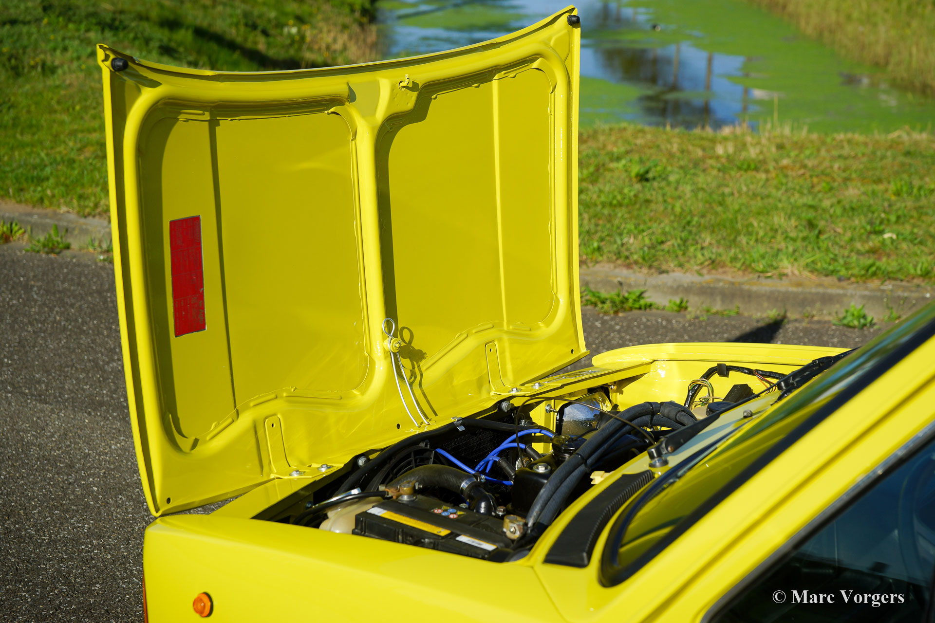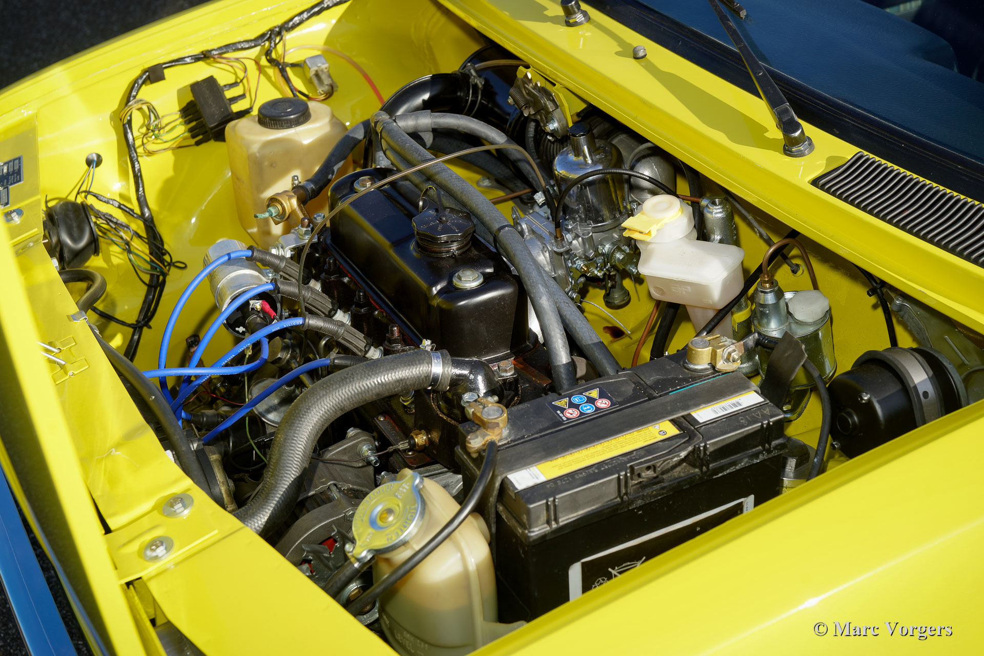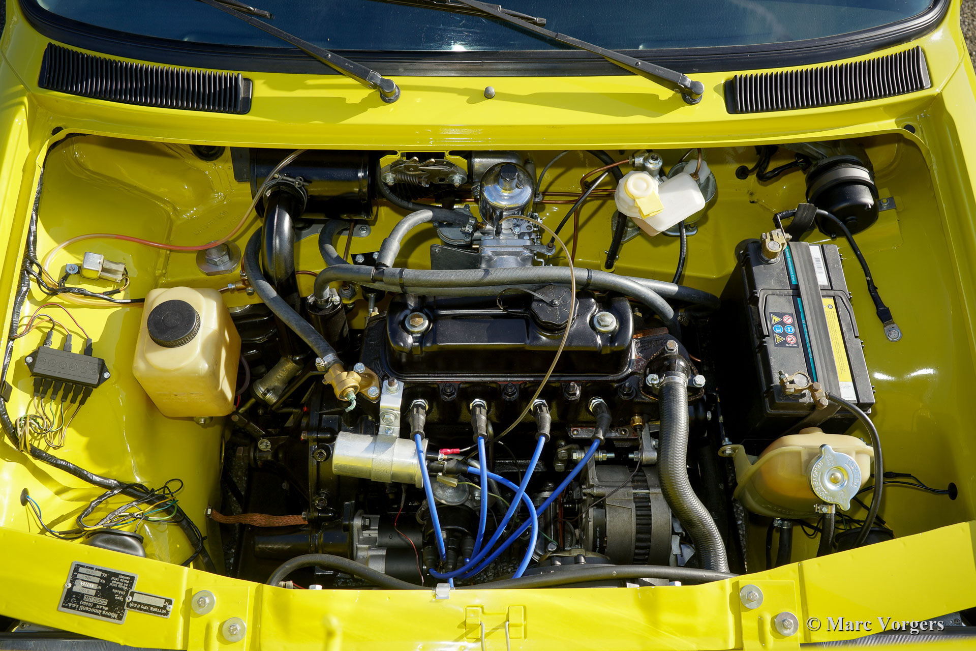 Innocenti 90L, année 1981. Couleur jaune (peinture spéciale avec une nuance de vert olive) combinée avec un intérieur noir. Les centres des sièges sont garnis de tissu « tartan » gris / vert / jaune qui se combine à merveille avec la peinture extérieure. L’Innocenti Mini a été conçue par Bertone et la voiture a été introduite en 1974. Plus tôt, Innocenti a construit une version italienne de la Mini britannique « classique ». Le nouveau design Bertone utilisait toutes les pièces mécaniques de la British Mini mais l'extérieur et l'intérieur étaient 100% modernes et italiens ! Les premiers modèles ont montré des lignes très pures et de magnifiques pare-chocs minces en chrome. Cet exemple magnifiquement restauré a été importé d'Espagne en 2017. Aux Pays-Bas, la voiture a été restaurée détaillée à la perfection ! Le corps fut restauré à partir du métal nu et a reçu un travail de peinture de première classe. L'intérieur a reçu une nouvelle sellerie… Fabriqué à la main par des professionnels. Les couleurs extérieures et intérieures furent choisies par le propriétaire, une merveilleuse palette de couleurs ! La mécanique fut entièrement révisée et le moteur quatre cylindres de 998 cm3 fut remplacé par un moteur Cooper 1275 ! Beaucoup des très rares pièces intérieures en plastique furent renouvelées.