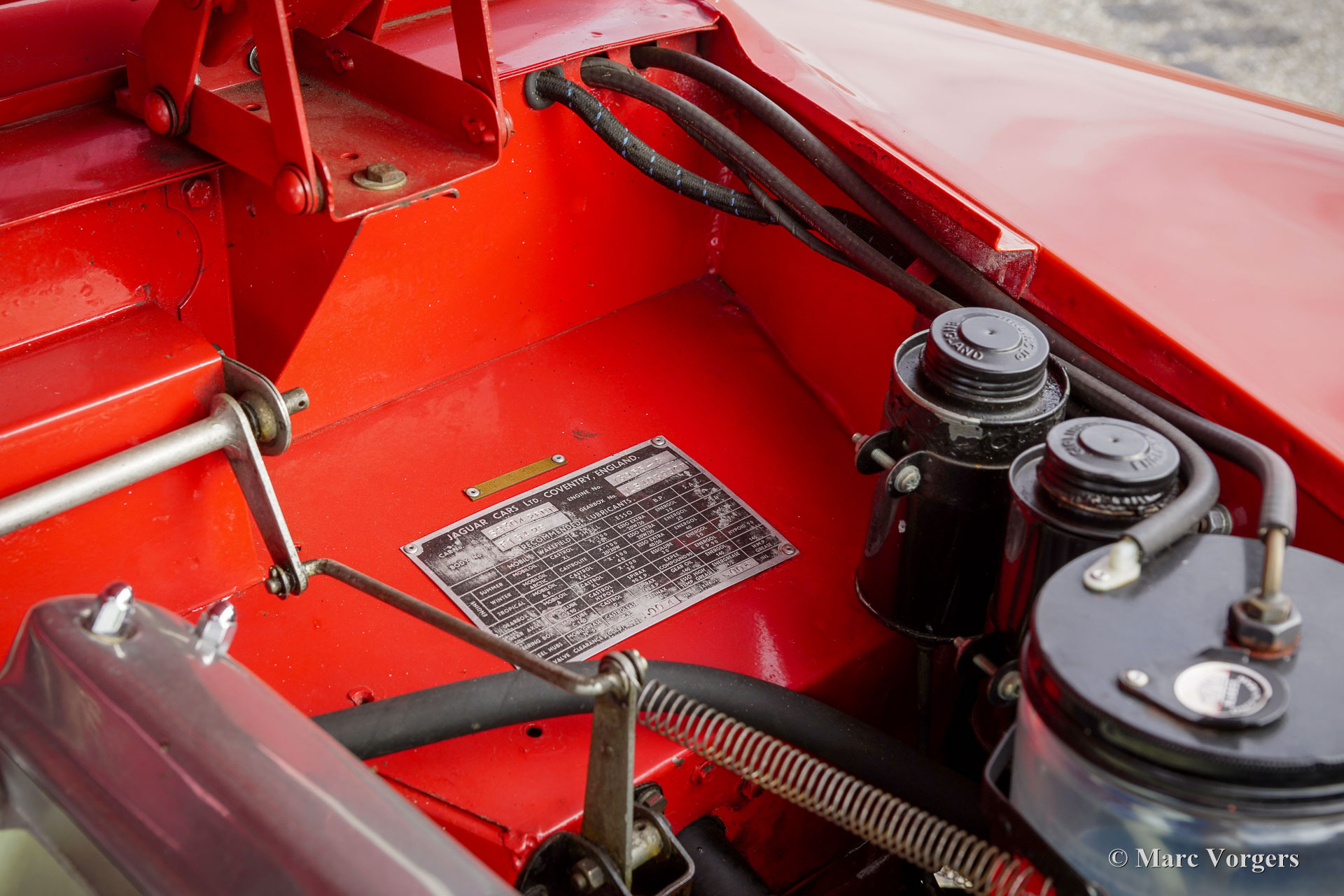 Jaguar XK 150 3,4 litres OTS (roadster), année 1959. Couleur rouge Carmen associée à un intérieur en cuir noir garni de moquette noire. Capote et couvre-caisse noirs. Cette glorieuse Jaguar XK 150 OTS (Open Two Seater, également appelée roadster aux USA) a été vendue neuve aux États-Unis. La voiture fut importée aux Pays-Bas en 1986 et achetée par le dernier propriétaire en 2001. L'historique (d'entretien) est entièrement documenté depuis 2009. Un certificat Heritage est présent et les informations indiquent qu'il s'agit d'une Jaguar « matching number » ! L'automobile est en très bon état et tout est à jour. La carrosserie présente un ajustement parfait des panneaux, une belle peinture et de magnifiques garnitures chromées. Le moteur six cylindres XK fut révisé en 2014 par un spécialiste aux Pays-Bas. En 2016, la direction assistée électrique EZ a été installée. Les 215 chevaux au freinage sont transmis aux roues arrière via une boîte de vitesses manuelle à quatre rapports avec overdrive. Ce roadster XK 150 roule parfaitement, c'est l'un des meilleurs exemplaires que nous n’ayons jamais conduits ! La voiture présente tous les détails d'origine et présente des options souhaitables telles que le centre du tableau de bord en bois, des roues à rayons de 16 pouces chaussées de pneus Vredestein Sprint Classic, une paire de feux antibrouillard/de virage Lucas SFT576 à l'avant, des freins assistés, un allumage électronique, un ventilateur électrique, des ceintures de sécurité rouges et une radio « rétro » avec navigation par satellite. Il s’agit d’une très désirable Jaguar XK 150 OTS (Roadster) dans un état merveilleux, une fantastique voiture de conducteur classique qui apportera beaucoup de plaisir de conduite à un fier nouveau propriétaire. La Jaguar XK 150 3,4 litres OTS est une voiture rare, seuls 1339 exemplaires furent construits.