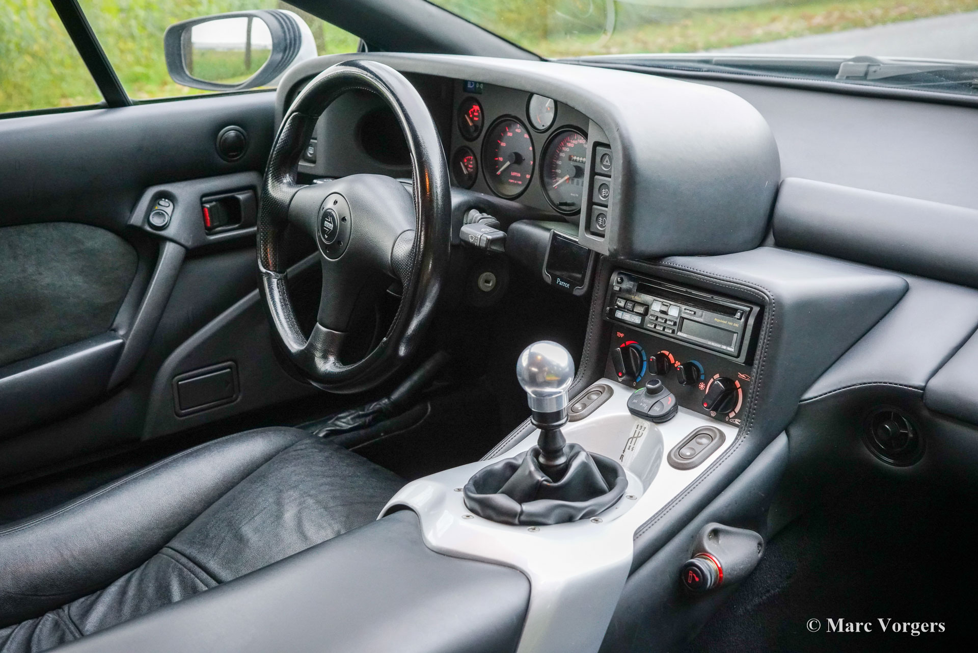 Lotus Esprit S4 GT3, année de construction 1996 (11 novembre). Première immatriculation routière 1999. Couleur Aluminium métallisé (B22) combinée à un intérieur en similicuir noir. Une voiture de sport rare dont 196 exemplaires furent construits ; Cet exemplaire est l'un des seuls 68 modèles GT3 à conduite à gauche construits ! La Lotus Esprit (S1) est arrivée sur le marché en 1976 et est devenue mondialement célèbre grâce à James Bond. La S4 est le dernier modèle Esprit dont la GT3 est la version la plus légère avec un poids de seulement 1 220 kg. La voiture est équipée du fantastique moteur Lotus quatre cylindres de deux litres avec turbo Garrett qui développe 240 ch dans la GT3. Le moteur est situé derrière les sièges avant selon le principe du « moteur central » pour obtenir une répartition optimale du poids et une tenue de route parfaite. Cette Lotus Esprit S4 GT3 est une voiture de conduite extrêmement performante et passionnante ! Cette belle Esprit S4 GT3 fut vendu neuve par la voiture Chimera SRL en Italie. La voiture est équipée en usine de la climatisation (en option) ! La voiture fut importée aux Pays-Bas en 2018 et est dans un excellent état d'origine ! La voiture est accompagnée d'un « certificat de provenance du véhicule Lotus Classic » et d'une lettre d'accompagnement de l'archiviste de Lotus Cars Limited. Cette Lotus n'a parcouru que 79 000 kilomètres depuis l'origine. La courroie de distribution fut remplacée au kilométrage 77 900 en 2019. Il s'agit d'une rare Lotus Esprit S4 GT3 à conduite à gauche en excellent état d'origine ; une magnifique voiture de passionné !
