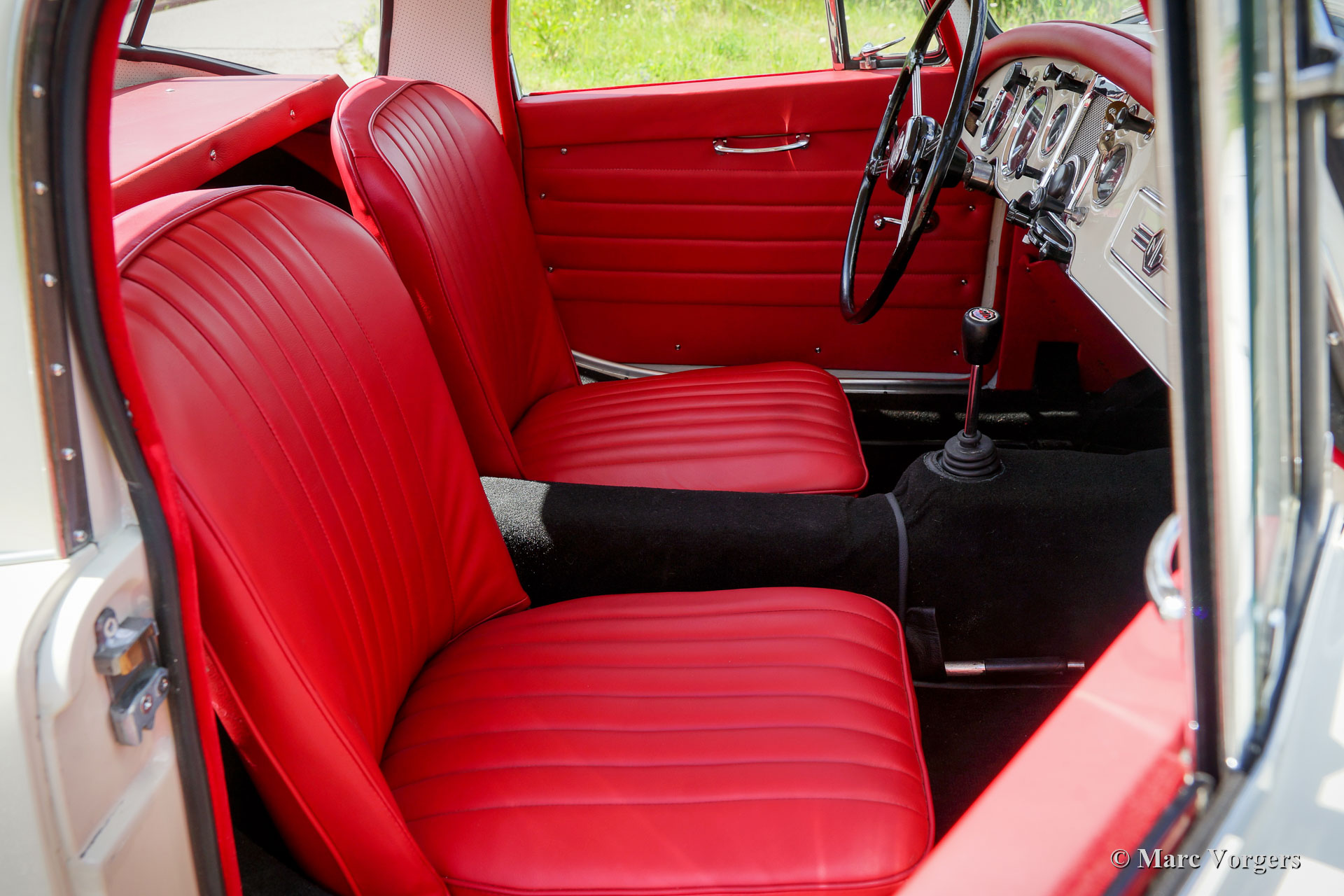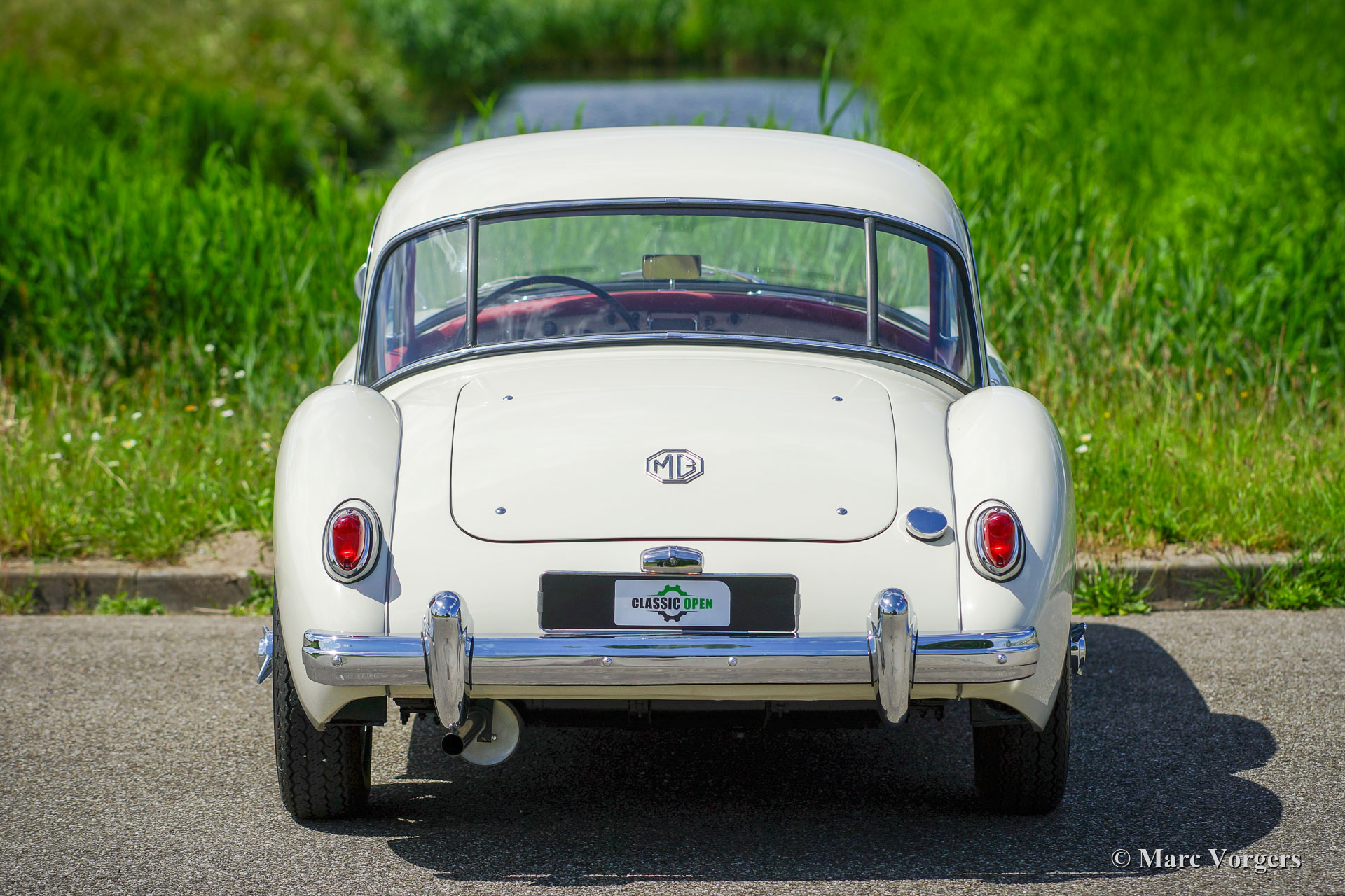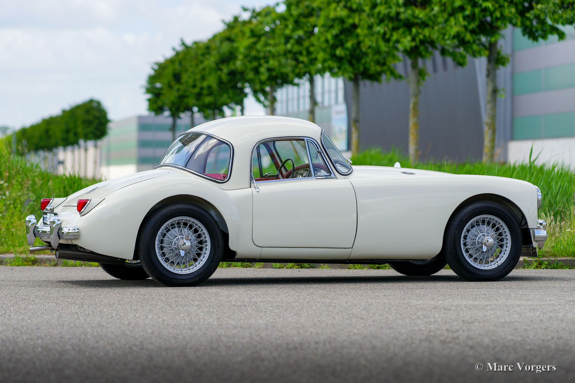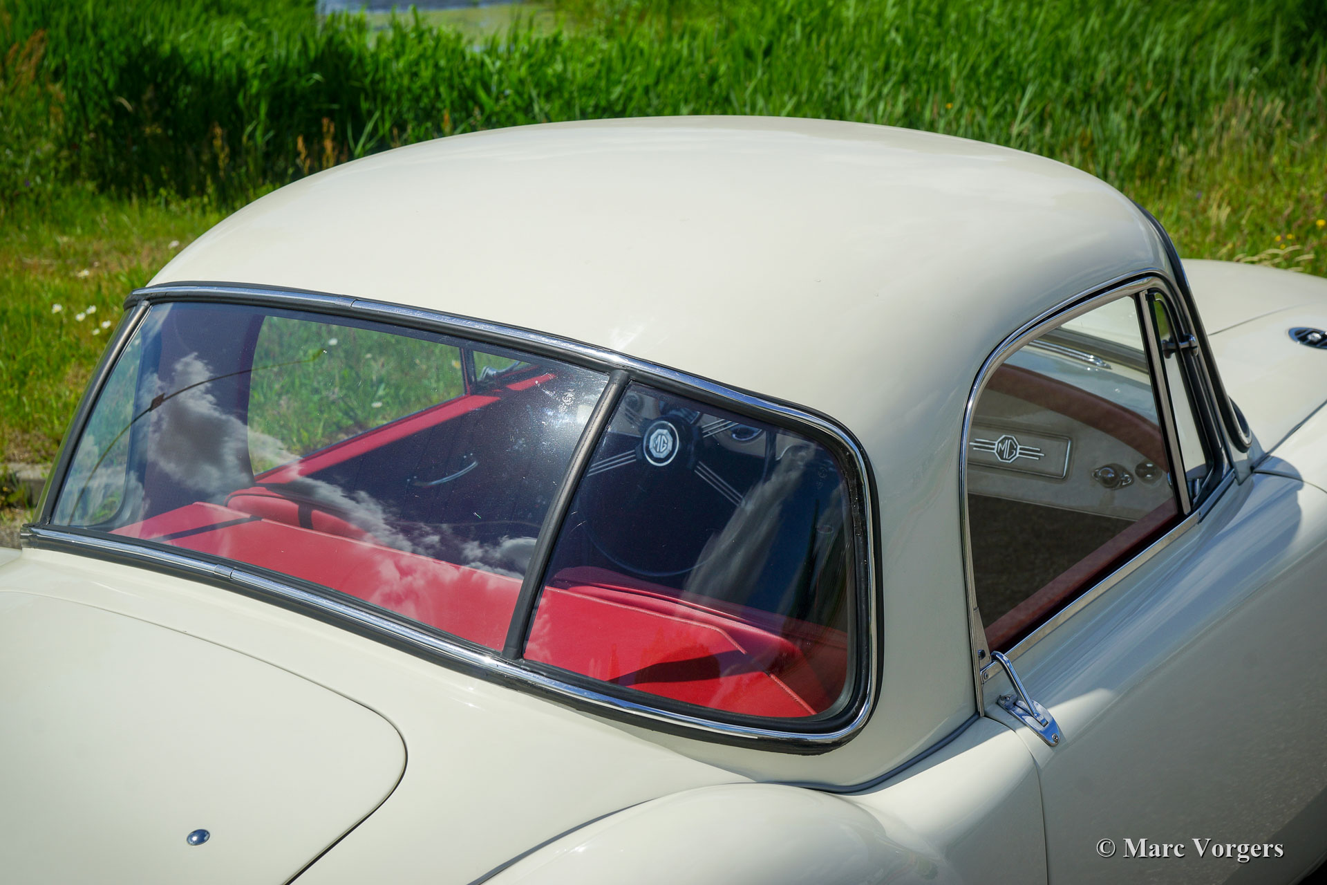 MG MGA 1500 coupé, année 1959. Couleur « Old English White » combinée à un intérieur en cuir rouge garni de tapis noire. Ce très beau MGA 1500 coupé fut restauré détaillée à la perfection, l'automobile est dans un état concours meilleur que neuf ! Le MGA 1500 coupé est une voiture assez rare par rapport à son modèle sœur « roadster » qui jouissait d'une grande popularité aux États-Unis. Seuls 6200 coupés MGA 1500 furent construits et la plupart d'entre eux ont trouvé un fier propriétaire au Royaume-Uni et dans le reste de l'Europe. Ce magnifique MGA coupé montre de superbes détails originaux, vous ne pouvez pas arrêter de regarder toutes ses merveilleuses caractéristiques et lignes. L'automobile est équipée de roues à rayons peintes en argent, d'écrous de roue chromés et d'un couvercle de soupapes aluminium. Il s'agit d'un rare et désirable MG MGA 1500 en parfait état !