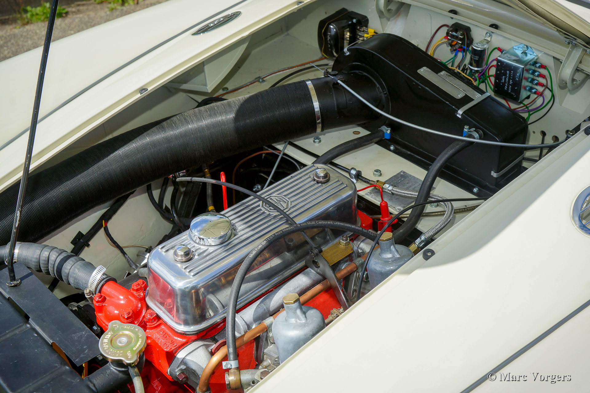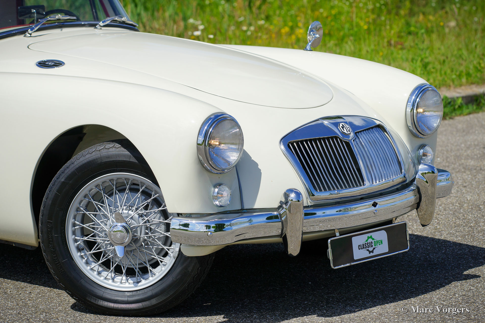 The year 1955 saw the introduction of the MGA. With this design the MG broke new grounds. After its predecessors MG TD and MG TF, which were largely based on the pre-war MG TB, it was a roadster with a very modern sporty design. Like its predecessors, the MGA was a great success and, like before, the greater part was sold in America. Until 1959, the MGA was equipped with a 1459 cc four-cylinder engine. From that year, the car was fitted with a 1588 cc four-cylinder. A 1622 cc four-cylinder engine replaced the 1588 cc. engine in 1961. The early MGA versions had very good drum brakes until 1959, but after that year, the MG A was equipped with disc brakes on the front wheels. The year 1962 saw the production of the MGA, the A 1600 Mk II. The MGB replaced this very popular British sports car, and was to develop the success of the MG A even further.