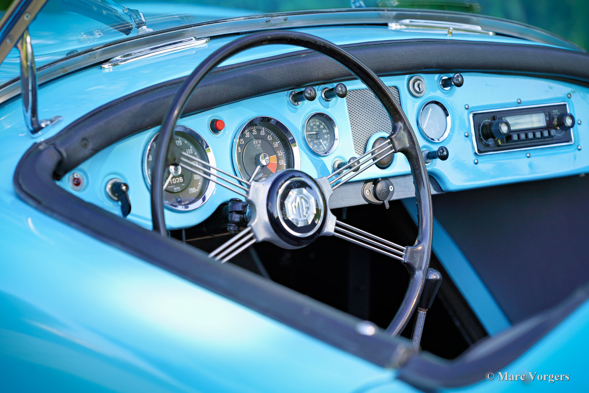 The year 1955 saw the introduction of the MGA. With this design the MG broke new grounds. After its predecessors MG TD and MG TF, which were largely based on the pre-war MG TB, it was a roadster with a very modern sporty design. Like its predecessors, the MGA was a great success and, like before, the greater part was sold in America. Until 1959, the MGA was equipped with a 1459 cc four-cylinder engine. From that year, the car was fitted with a 1588 cc four-cylinder. A 1622 cc four-cylinder engine replaced the 1588 cc. engine in 1961. The early MGA versions had very good drum brakes until 1959, but after that year, the MG A was equipped with disc brakes on the front wheels. The year 1962 saw the production of the MGA, the A 1600 Mk II. The MGB replaced this very popular British sports car, and was to develop the success of the MG A even further.