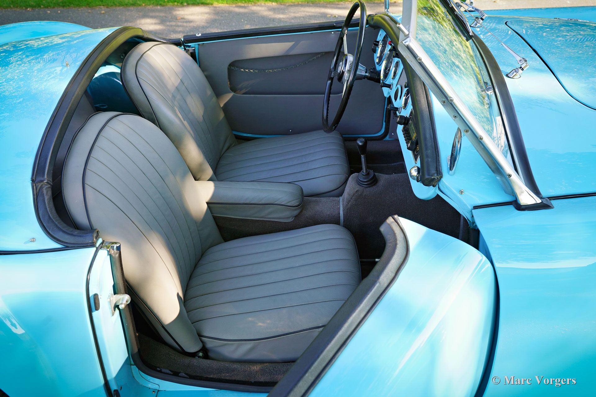MG MGA 1500 Roadster, année 1957. Couleur bleu glacier associée à un intérieur en cuir gris, une moquette grise et un couvre-tonneau gris. Ce magnifique roadster MGA 1500 est en excellent état et la voiture roule parfaitement ! La voiture fut restaurée détaillée dans les années 2020 – 2022. La MGA est à nos yeux le plus beau design MG jamais conçu. Le design remonte à 1951, lorsque le designer MG Syd Enever a créé une carrosserie profilée pour une voiture MG TD Le Mans. En tant que successeur de la MG TF, la MGA a été présentée en 1955 comme « la première d'une nouvelle ligne » arborant une carrosserie élégante, moderne et super attrayante, une conduite confortable et d'excellentes capacités de tenue de route. La MGA a été un grand succès pour MG, non seulement sur le plan commercial, mais aussi dans les compétitions de rallye et de course. Trois prototypes MGA furent engagés aux 24 heures du Mans 1955. Deux des voitures ont terminé la course en 12e et 17e position au classement général, prouvant la valeur de la nouvelle voiture. Aux États-Unis, la MGA a remporté de nombreux championnats régionaux et nationaux dans les compétitions du Sports Car Club of America, et la MGA a couru en NASCAR de 1960 à 1963. Vous n'avez peut-être pas ces ambitions sportives, mais il est toujours agréable de connaître le pedigree et les capacités de la voiture de sport classique que vous allez apprécier sur les plus belles routes que vous puissiez trouver ! Ce magnifique roadster MGA 1500 est prêt à être apprécié au maximum.