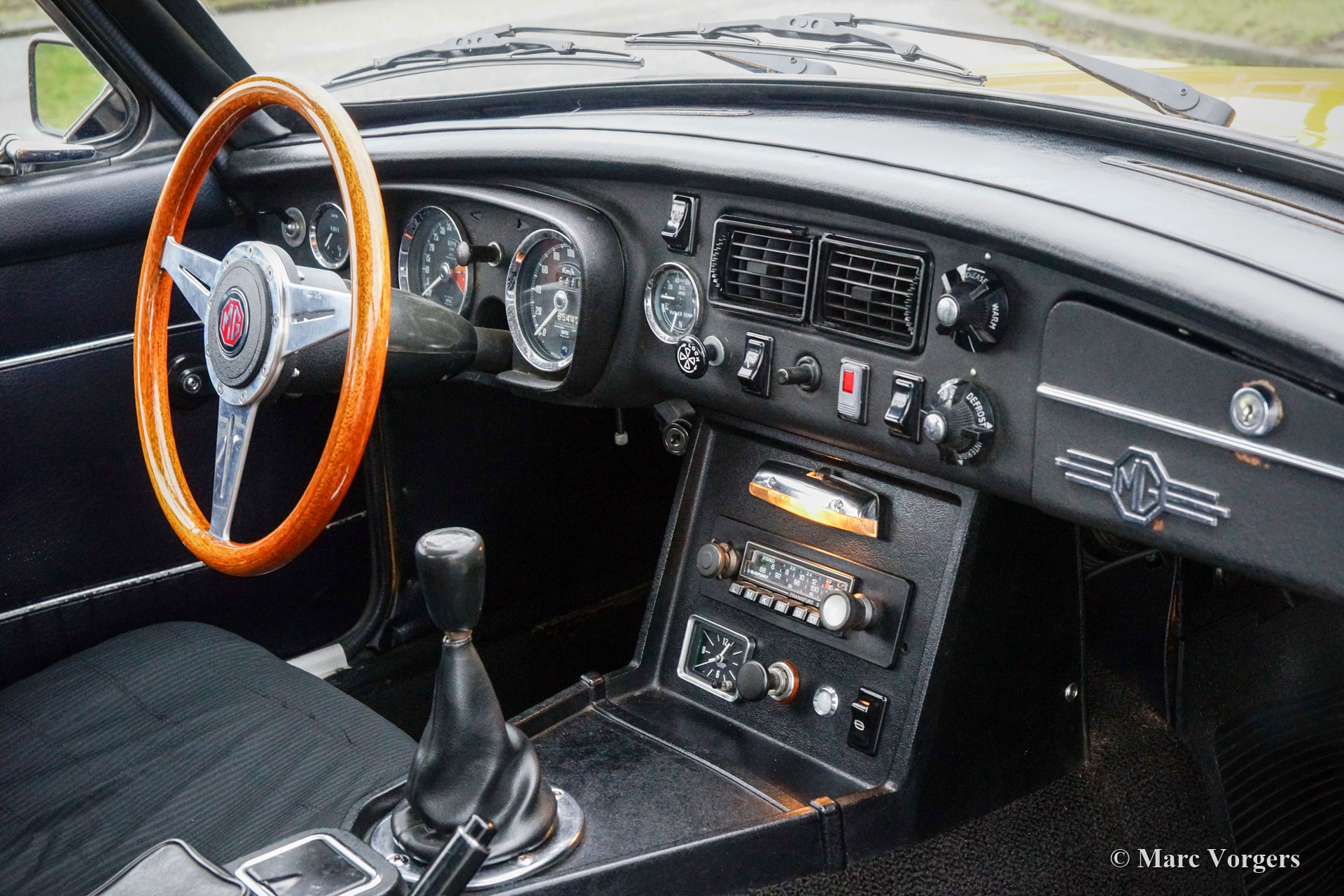 MG MGB GT, année 1973. Couleur « Bronze Yellow » combinée à un intérieur en tissu noir. Cette belle MGB GT est une voiture de pilote très originale en bon état. Cette MGB GT n'a jamais été restaurée, la voiture présente de magnifiques détails d'origine, une certaine patine et la voiture roule délicieusement. Le moteur quatre cylindres tourne parfaitement et la boîte de vitesses à quatre rapports est équipée d'un overdrive. C'est une fantastique MGB GT pour en profiter au maximum, vous pouvez même envisager de l'utiliser comme pilote quotidien pendant les meilleurs mois de l'année ! Cette MGB GT est équipée de roues Rostyle d'origine et d'une radio Blaupunkt Frankfurt Stereo.
