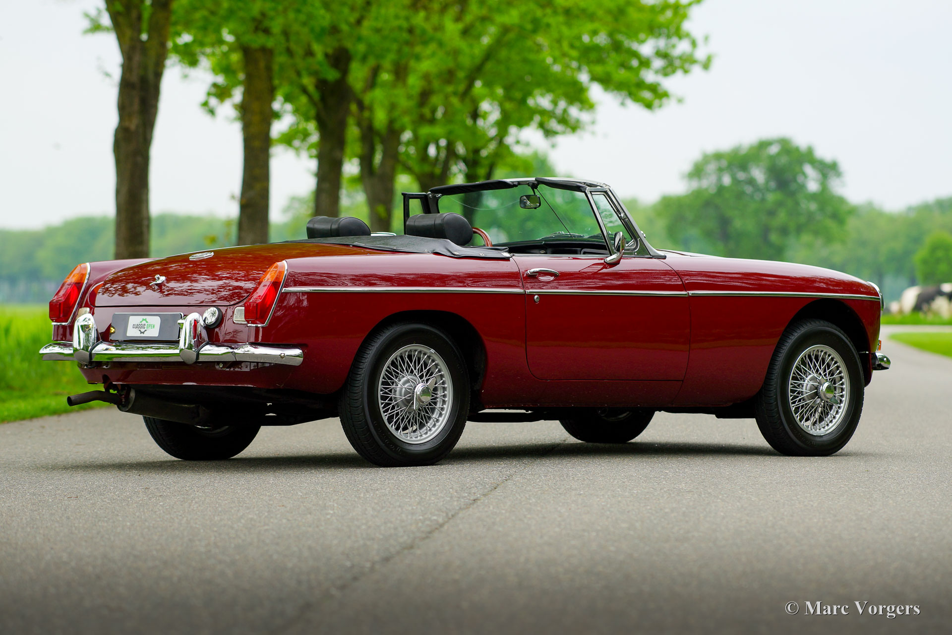 MG MGB Roadster, année 1976. Couleur rouge bordeaux combinée à un intérieur noir. Sièges en cuir noir et moquette noire. Capote, couvre-tonneau et couvre-capot en vinyle noir. Ce beau roadster MGB fut largement restauré dans le passé. Plus tôt, en 1988, le 1800 cc. Le moteur a été révisé et reconditionné par Oselli au Royaume-Uni selon les spécifications « fast road ». Cette MGB était livrée à l'origine avec des pare-chocs en caoutchouc. Lors de la restauration, ceux-ci furent remplacés par des exemplaires chromés antérieurs. Cette belle MGB est en excellent état, la carrosserie montre un ajustement parfait des panneaux, la peinture est belle et l'intérieur est frais et propre. Sous le capot, tout est joliment détaillé et le coffre est entièrement capitonné. Ce dernier modèle MGB présente toutes les améliorations qui font de la MGB une voiture de sport ouverte très désirable, confortable et pratique. Ce très bel exemple est équipé d'une radio Harvard LMKUU d'époque avec réception AM et FM, d'un volant sport avec jante en bois, d'un pommeau de levier de vitesses en bois, de roues à rayons peintes en argent, de deux rétroviseurs chromés montés sur les portes, d'un refroidisseur d'huile, cache culbuteur en aluminium et électronique 123. Ce roadster MGB roule et se sent comme un nouveau MGB ! Cette voiture est prête pour toute aventure entre les mains d'un nouveau propriétaire !