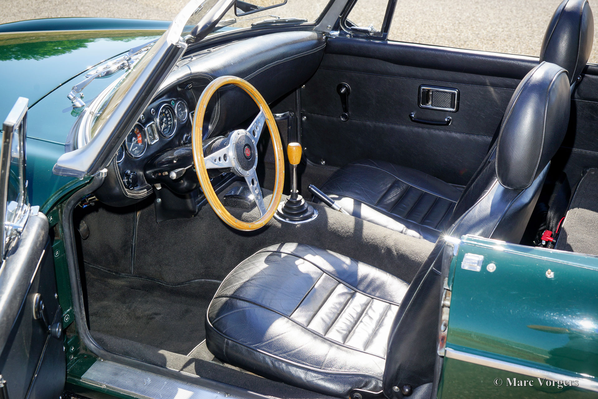 MG MGC Roadster, année 1969. Couleur British Racing Green combinée à un intérieur noir. Sièges en cuir noir avec appuie-tête et moquette noire. Capote beige « pack away » (qui se range dans le coffre). Ce fantastique MGC roadster est en très bon état et la voiture roule délicieusement. La voiture fut révisée et entretenue très bien ; le dernier propriétaire chérissait la voiture depuis 2018. La MGC est la voiture sœur à six cylindres de la MGB, le moteur délivre une bonne puissance de 145 ch SAE. L'expérience de conduite est un mélange de la « Big Healey » et de la MGB compacte, et la note d'échappement est merveilleuse ! Extérieurement, la MGC ressemble à première vue à la MGB, les connaisseurs la reconnaissent par le capot spécial qui présente des "renflements de puissance" pour loger le gros moteur et ses doubles carburateurs. Cette très belle MGC est équipée d'OVERDRIVE, de roues à rayons chromées, d'un volant MotoLita avec jante en bois, d'un échappement en acier inoxydable, de freins assistés avec deux servos. Le roadster MGC est un fantastique cabriolet de tourisme !