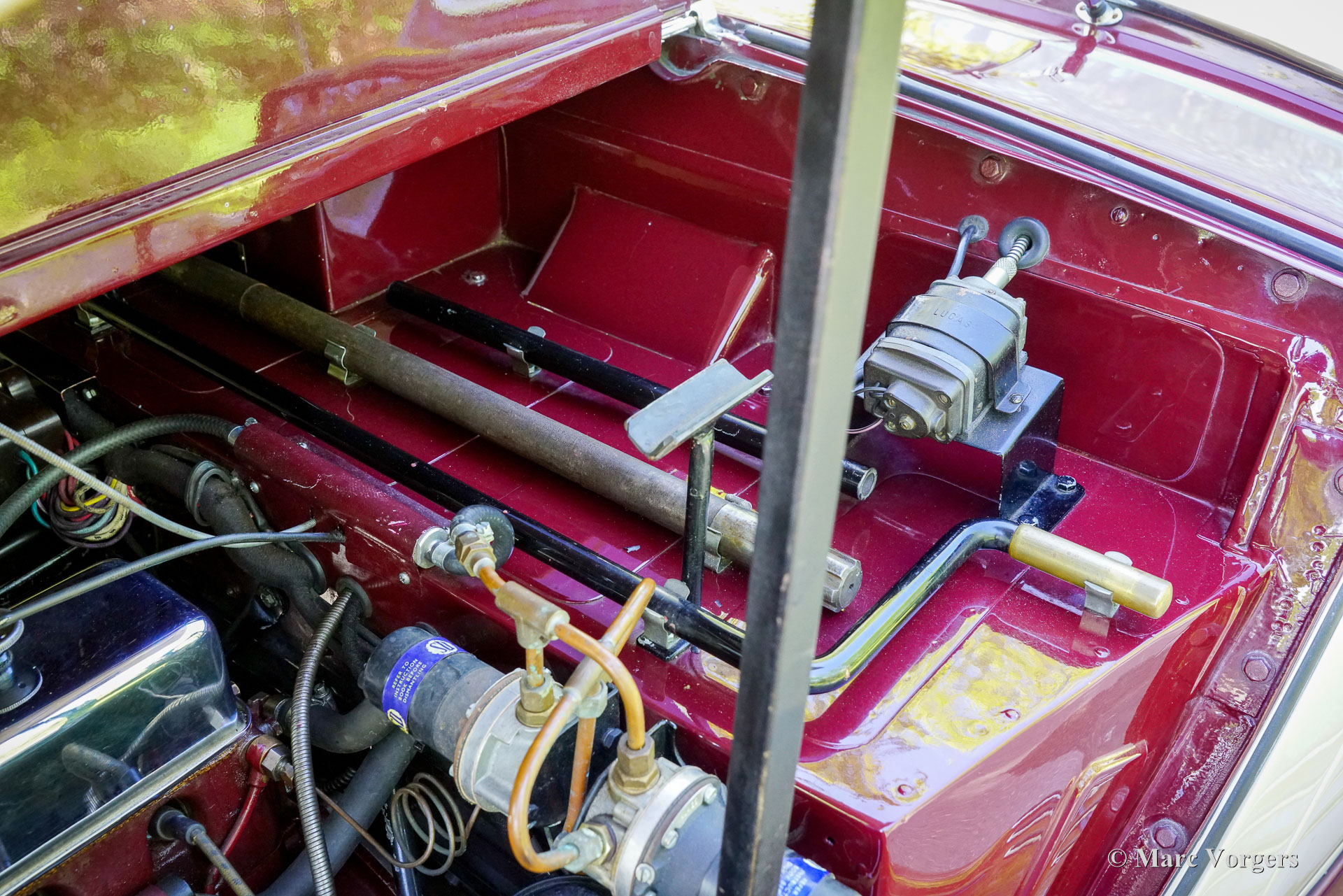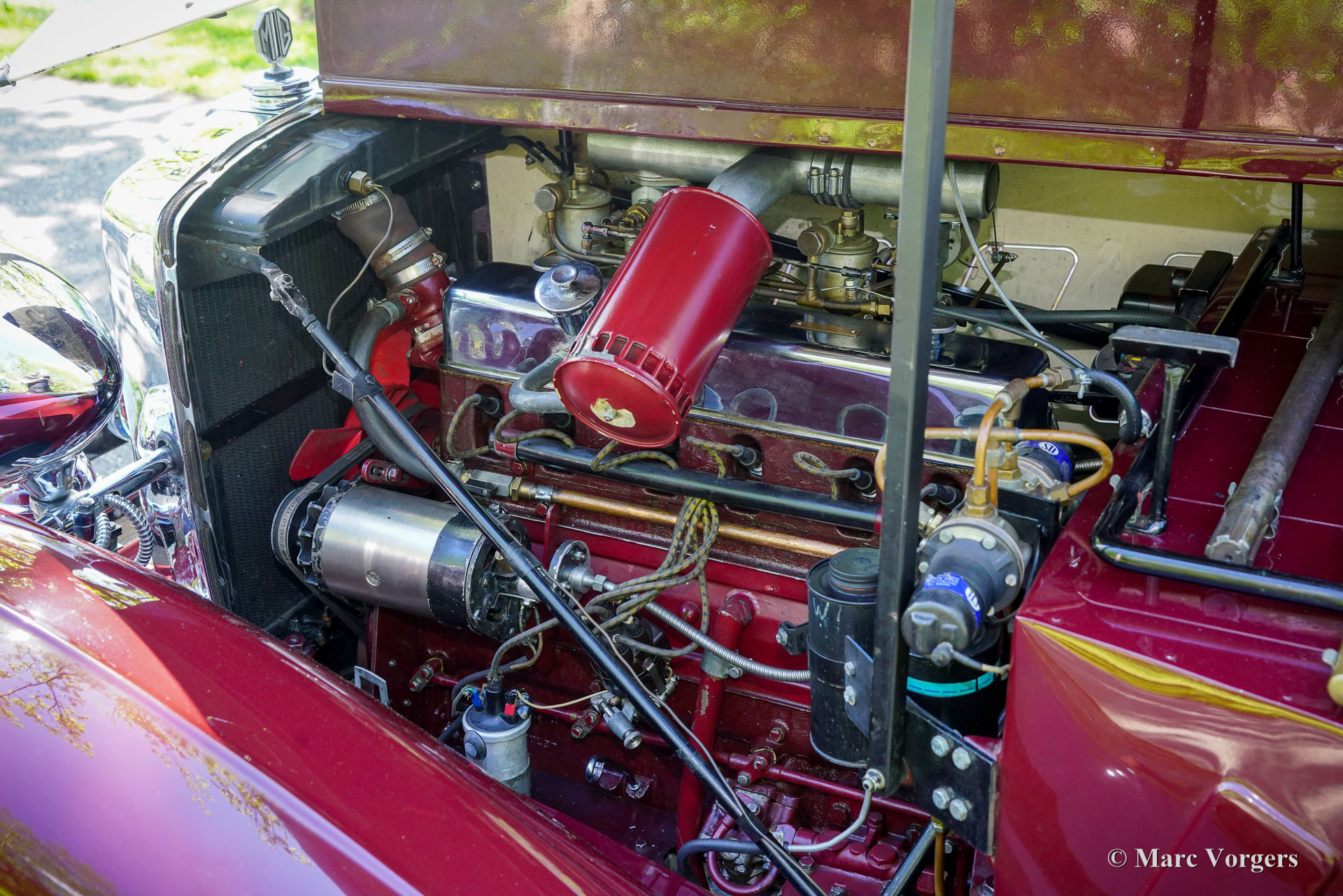 Caractéristiques et améliorations. Le moteur de 2,3 litres fut porté à 2 560 cm³ avec une compression plus élevée de 8:1. Des soupapes plus grandes (MG VA) furent installées, le vilebrequin fut rectifié et équilibré. Des pistons MGA équilibrés et pesés, des coussinets de bielle et un volant moteur allégé ont été installés. Un arbre à cames plus rapide fut installé, une pompe à huile optimisée et des sièges de soupapes renforcés ont été installés pour permettre l'utilisation d'essence sans plomb. Le radiateur fut amélioré avec un bloc de refroidissement à 4 noyaux au lieu des 3 noyaux d'origine et un ventilateur électrique. La boîte de vitesses d'origine fut révisée avec de nouvelles pièces et un synchroniseur. Le châssis et la suspension furent améliorés avec des amortisseurs télescopiques, des ressorts renforcés (le deuxième ressort à lames en partant du haut est plus épais de 1 mm), des jantes à rayons à 72 rayons chaussées de pneus Blockley et un système de freinage hydraulique avec deux mâchoires principales sur les freins à tambour avant. De plus, un réservoir d'essence plus grand (75 litres) fut installé et une direction assistée électrique EZ fut installée. Le système de cric hydraulique d'origine « Jackall » est toujours présent sur le châssis. Cette magnifique MG SA « Keller » spéciale est dans un état exceptionnel et se conduit et se comporte à merveille ! Seuls 2 738 châssis MG SA ont quitté l'usine MG d'Abingdon-on-Thames. Cette magnifique MG SA avec sa carrosserie de style « Keller » est une véritable merveille !