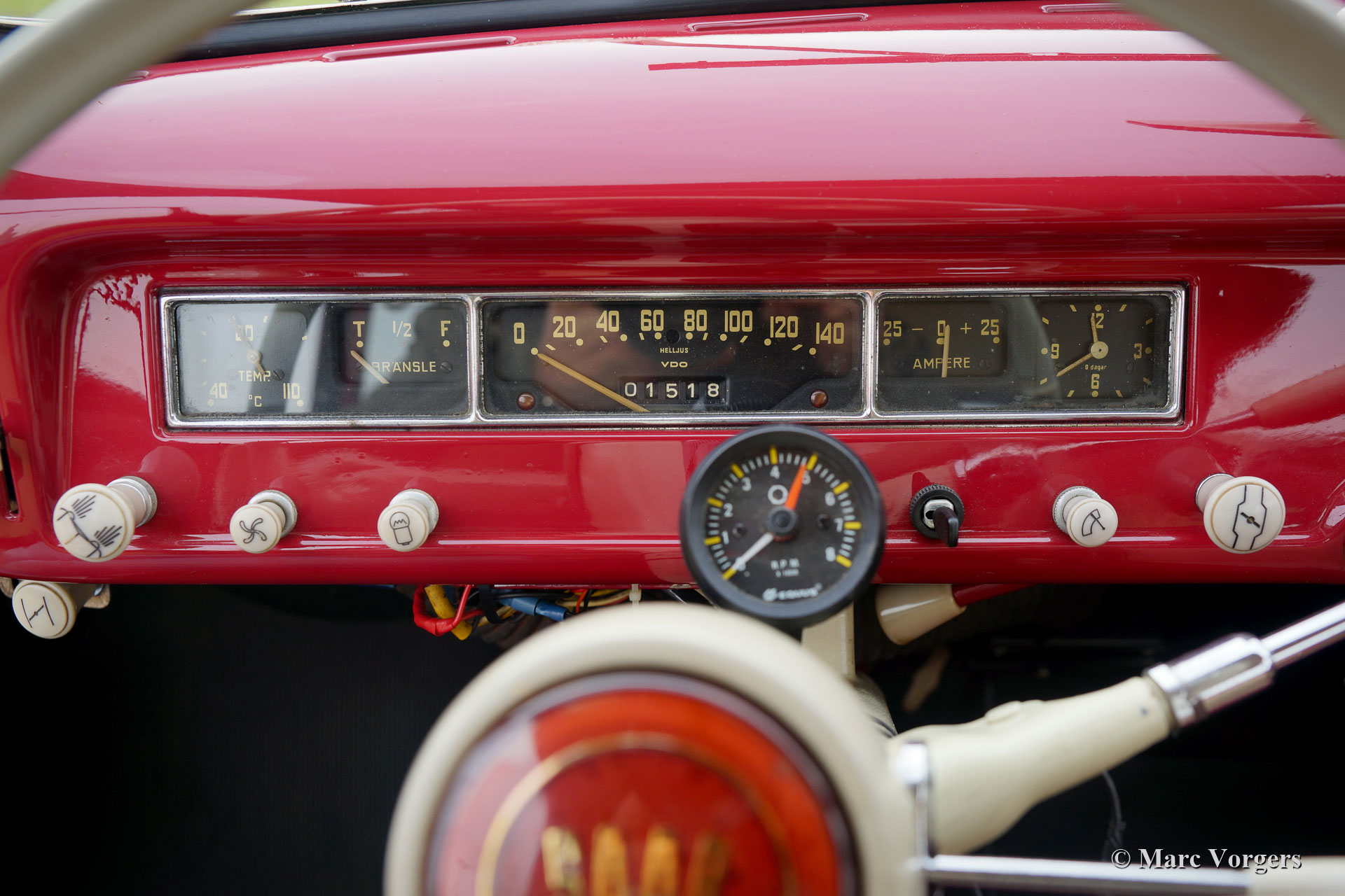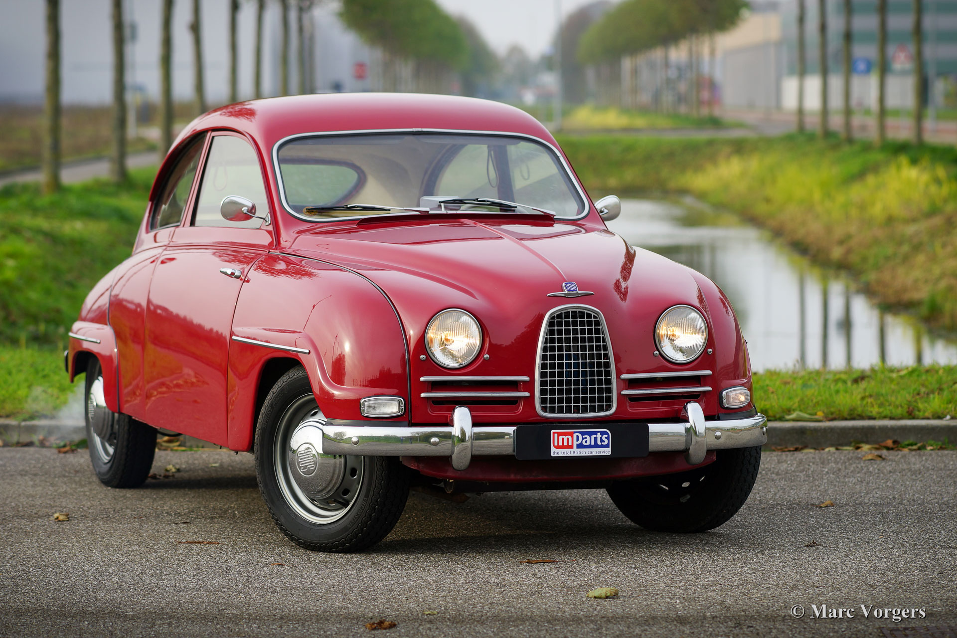 Saab 93B « deux temps », année 1958. Couleur rouge combinée à un intérieur en toile beige et cuir artificiel rouge. Ce magnifique Saab 93B fut vendu neuf aux Pays-Bas. La voiture fut restaurée par le dernier propriétaire il y a une quinzaine d'années. La voiture fut régulièrement utilisée depuis. Cette belle Saab est en très bon état et la voiture roule et pilote très bien. Cette Saab propose une option rare et souhaitable ; une boîte de vitesses Sachsomatic « semi-automatique » à 4 vitesses ! L'embrayage est actionné automatiquement lorsque le conducteur sélectionne un rapport via le sélecteur de colonne de direction ; très confortable !