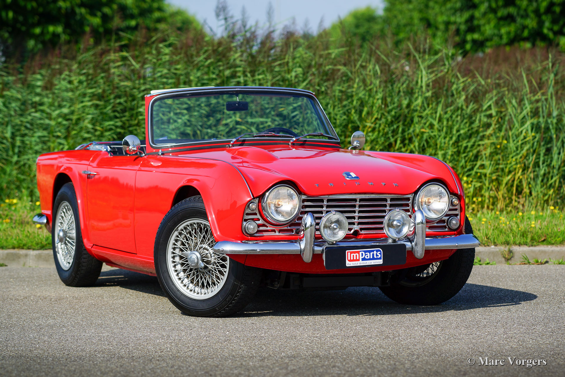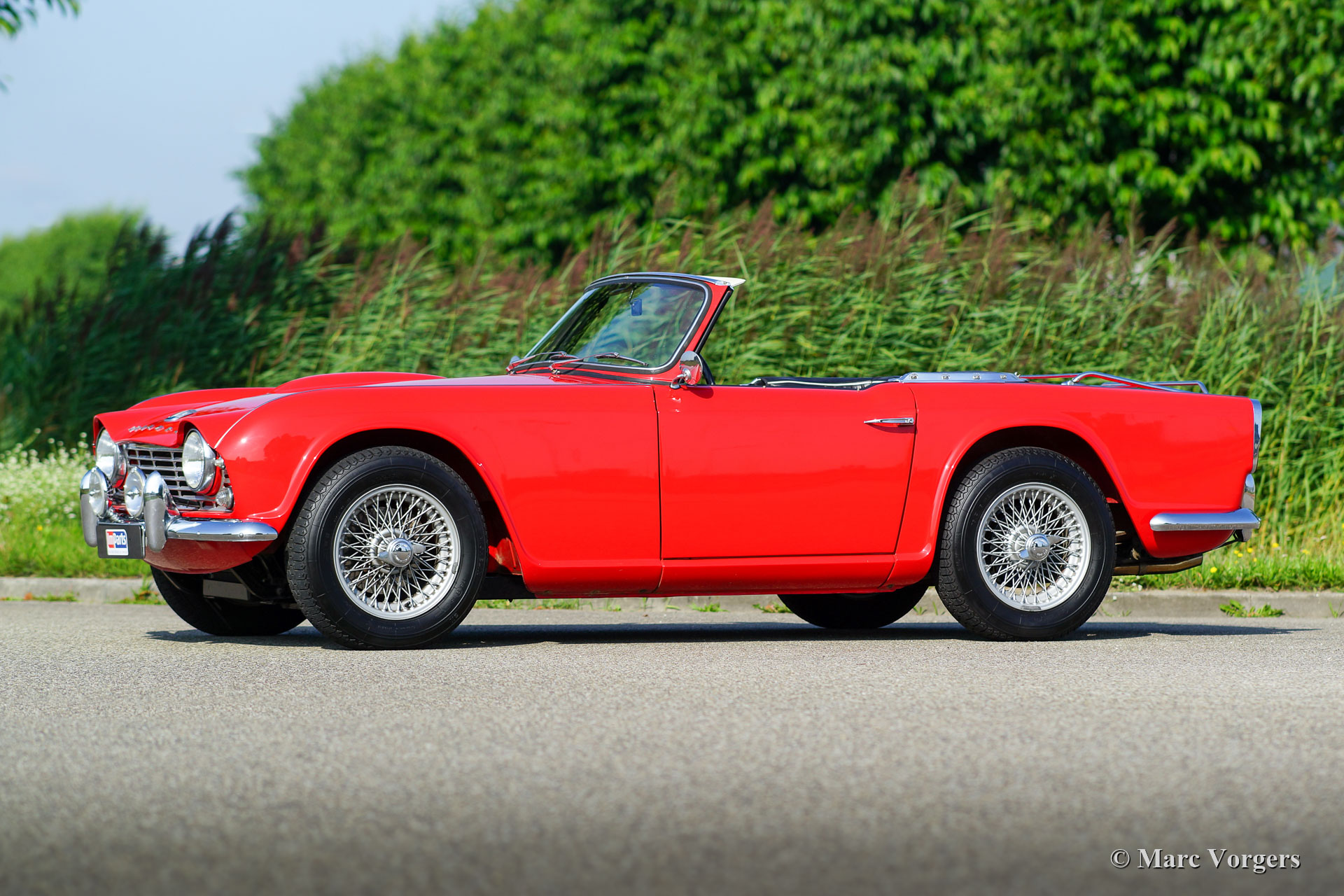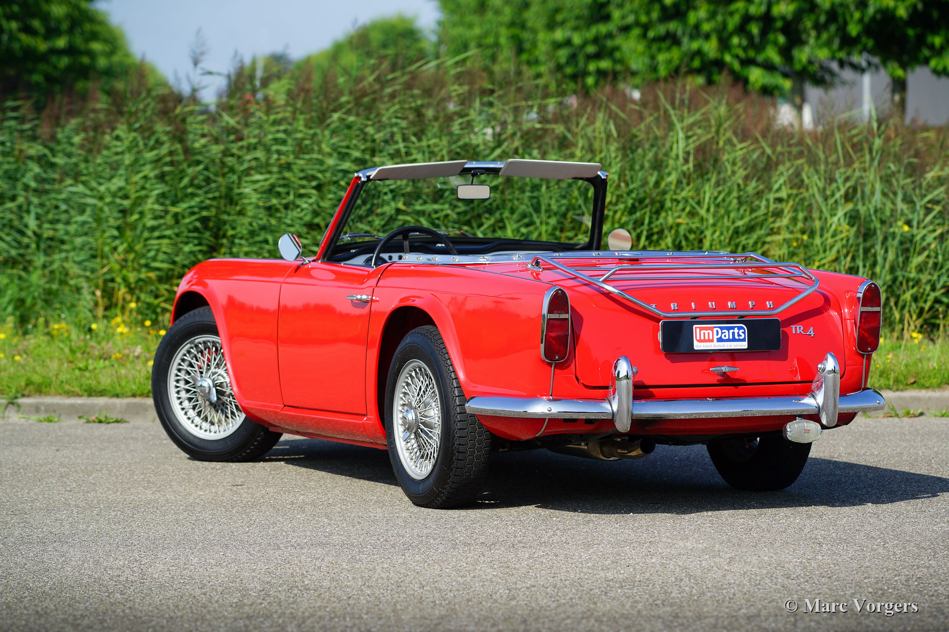 The Triumph TR 4 is a real British roadster; pure and honest. The TR 4 is built with a sturdy separate chassis with independent front suspension and a live rear axle. (IRS versions are equipped with independent rear suspension). The TR4 is equipped with disc brakes at the front and drum brakes at the rear. The bonnet shows a beautiful power bulge which gives space for the two carburettors. The Triumph TR 4 has a very beautiful wooden dashboard that is clear and functional and is equipped with large Smiths clocks. For the TR 4 a very nice "Surrey-top" is available as accessory. The Triumph "Surrey top" inspired Porsche to built the Porsche "Targa" versions. The Triumph TR4 is as all the TR versions a real drivers car.