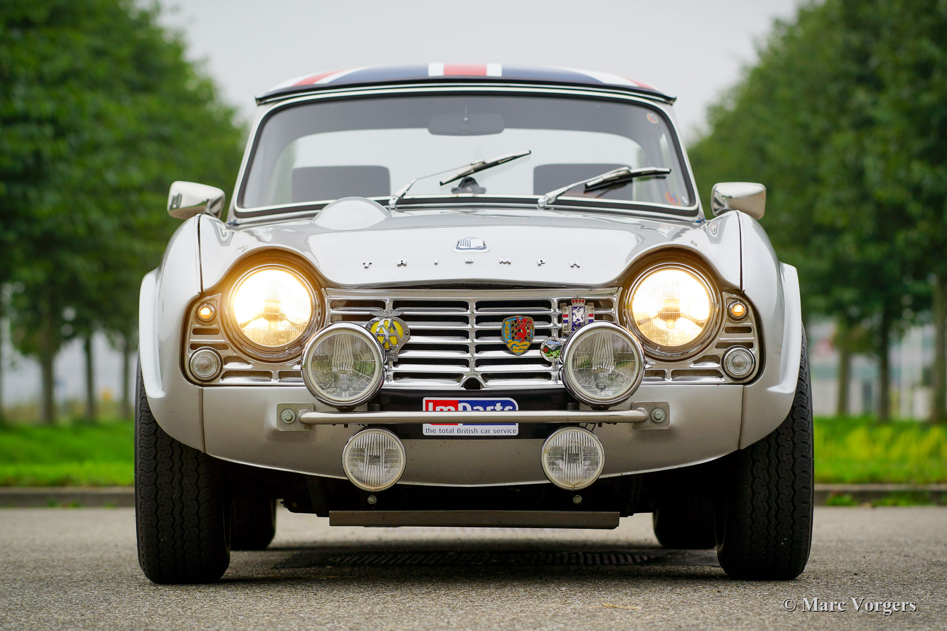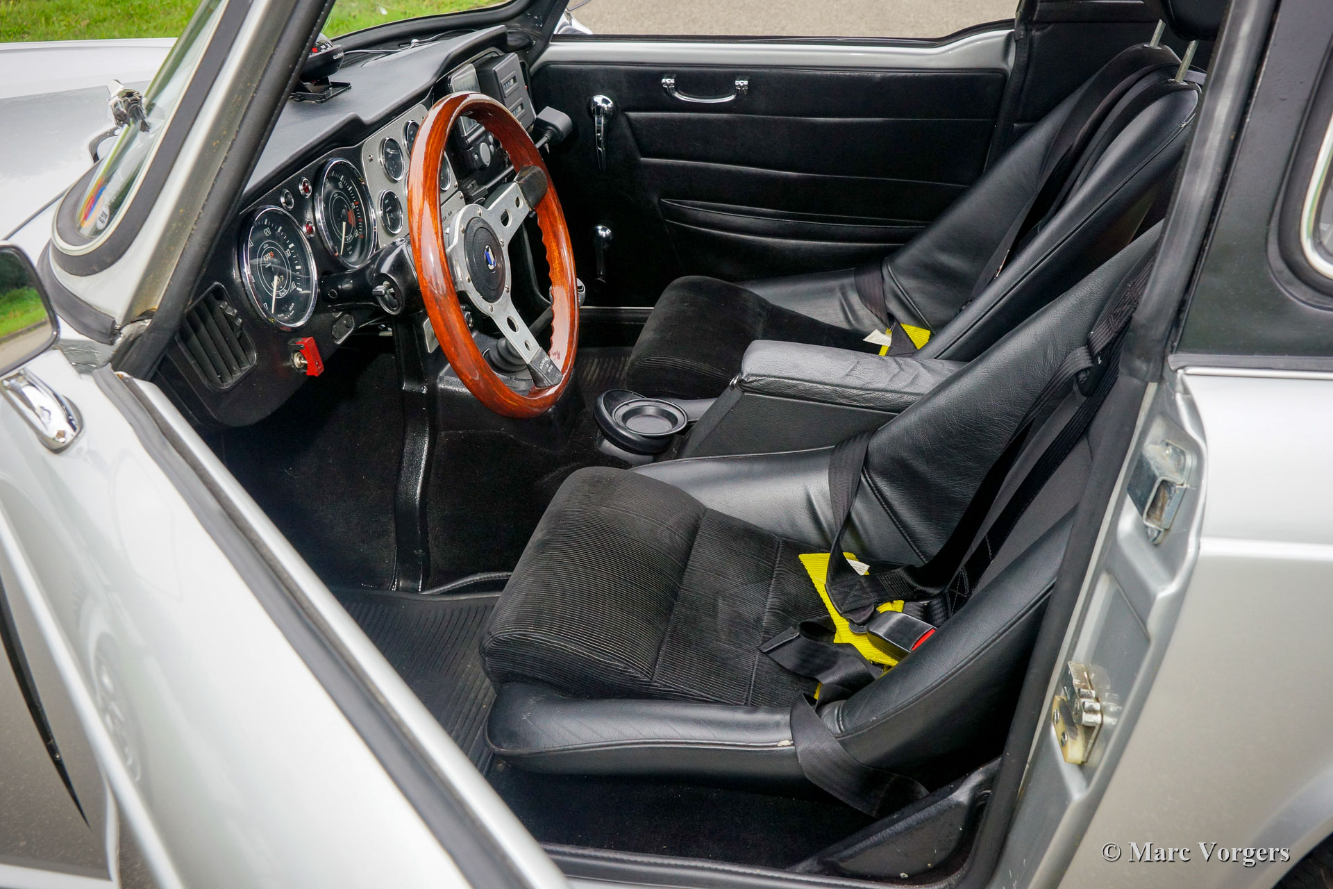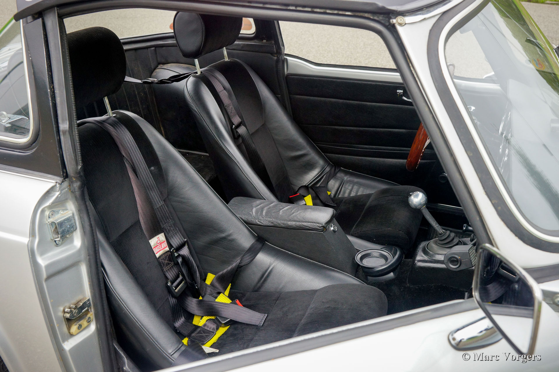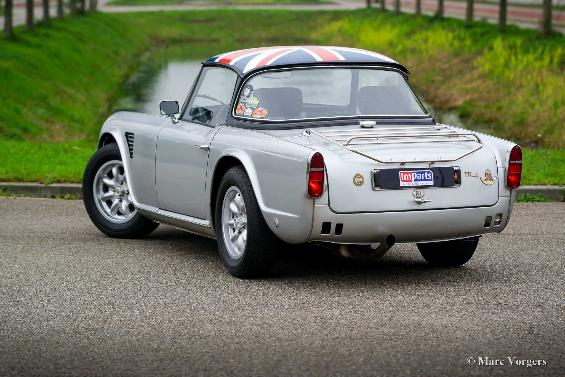 Triumph TR4 voiture de rallye, année 1963. Couleur argenté métallisé combinée à un intérieur noir. Cette fantastique Triumph TR4 fut magnifiquement restaurée et préparée pour des événements de rallye historiques il y a quelques années. Cette TR4 est en excellent état et la voiture roule parfaitement. La voiture est équipée d’un ‘Surrey-top’ original recherché, le panneau de toit est décoré d’un « Union Jack ». Au cours de la construction, la voiture était équipée d’un système de freinage à double circuit Triumph TR6 avec servo-frein, de deux carburateurs doubles Weber, d’un alternateur et d’un ventilateur de refroidissement électrique. En outre, cette TR4 est équipée des accessoires de rallye suivants : jantes en alliage Mini-Lite chaussées de pneus 185/70/15, compteur « trip » kilométrique, compteur minuterie, boussole et phares supplémentaires à l'avant. Cette TR4 est très robuste et l'expérience de conduite est fantastique ! La conduite n’est pas trop ferme et la voiture gère et dirige avec rapidité et précision. C’est une première Triumph TR4 très souhaitable et une excellente voiture pour participer à des événements de rallye historiques !
