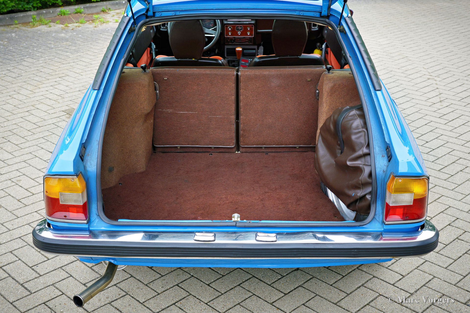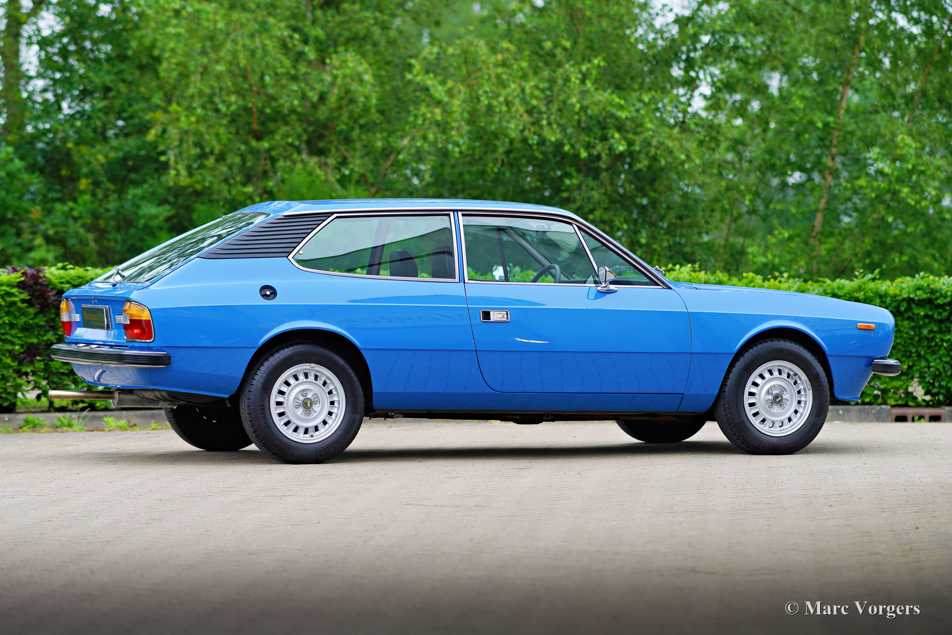 Lancia Beta HPE 2000, année 1976 (première immatriculation le 14 juin 1976). Couleur bleu (Blu Antibes 169) associée à un intérieur en tissu/similicuir bicolore marron/orange garni de moquette marron. La Lancia fut importée aux Pays-Bas en mars 2017. La voiture est dans un état très bon à excellent et super original, la voiture ne présente que les moindres traces d'utilisation antérieure. Le compteur kilométrique indique 93 000 kilomètres. La voiture est accompagnée de factures de service qui montrent que la voiture est bien entretenue. Les freins et la direction assistée furent révisés. L'embrayage, le radiateur et l'échappement furent renouvelés. La Lancia HPE (High Performance Estate) est un break de luxe sportif, élégant et pratique conçu par Pininfarina. La voiture présente de merveilleux détails de style, parmi lesquels la banquette arrière merveilleusement incurvée (qui peut également être rabattue) est tout à fait remarquable ! Cette Lancia HPE 2000 roule parfaitement, ce bel exemplaire est une belle trouvaille pour les passionnés de Lancia !