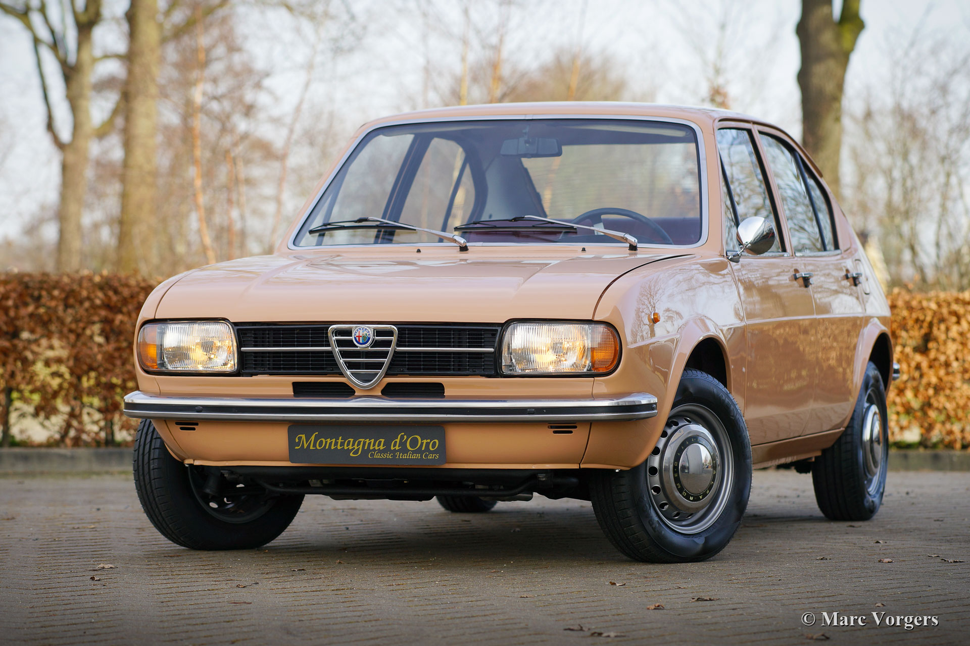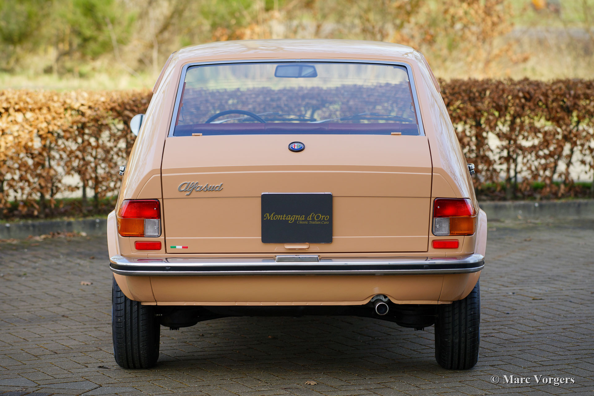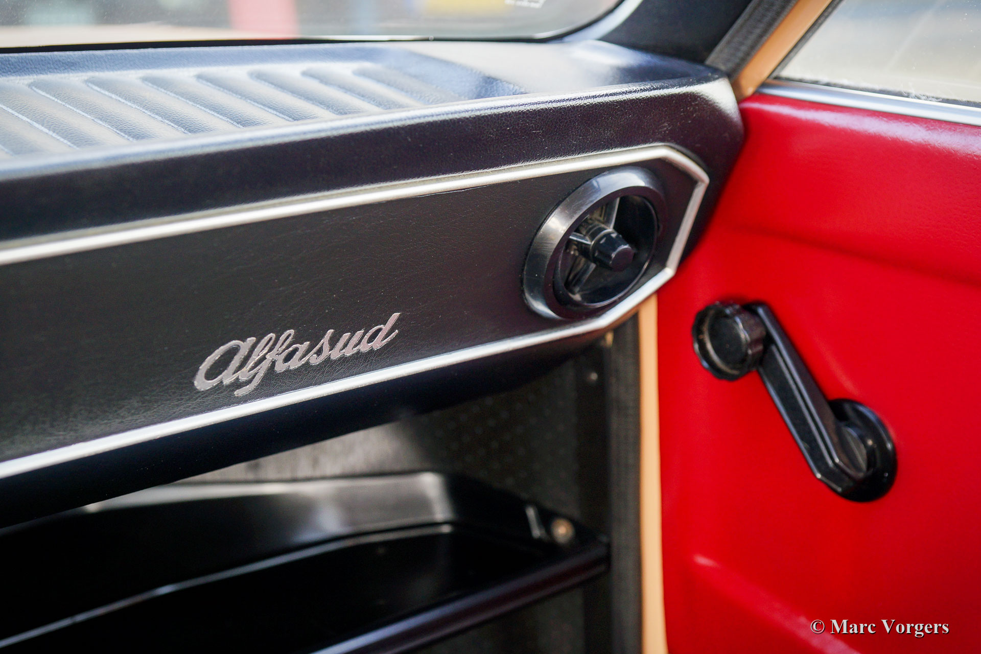 Alfa Romeo Alfasud 1.2, année 1973. Couleur beige (Beige Ponza AR 62) combiné avec un intérieur en vinyle rouge et un tapis en caoutchouc noir. Ce fantastique Alfasud 1.2 fut vendu neuf à un Italien qui vivait en Allemagne. En 2010, la voiture fut importée aux Pays-Bas et restaurée et révisée détaillée à la perfection entre 2013 et 2018. En 2019, la voiture fut achetée par un passionné et collectionneur néerlandais d'Alfasud. Ce merveilleux Alfasud est en superbe état de top, comme neuf, non; mieux que neuf ! Le compteur kilométrique indique 15,525 kilomètres. Au volant de ce bel Alfasud, vous pouvez sentir pourquoi l'Alfasud était une voiture de conduite si populaire dans les années 1970 ! Il s’agit d’un Alfasud «de collection» parfait, la voiture est également prête à être pleinement appréciée sur la route par le passionné!