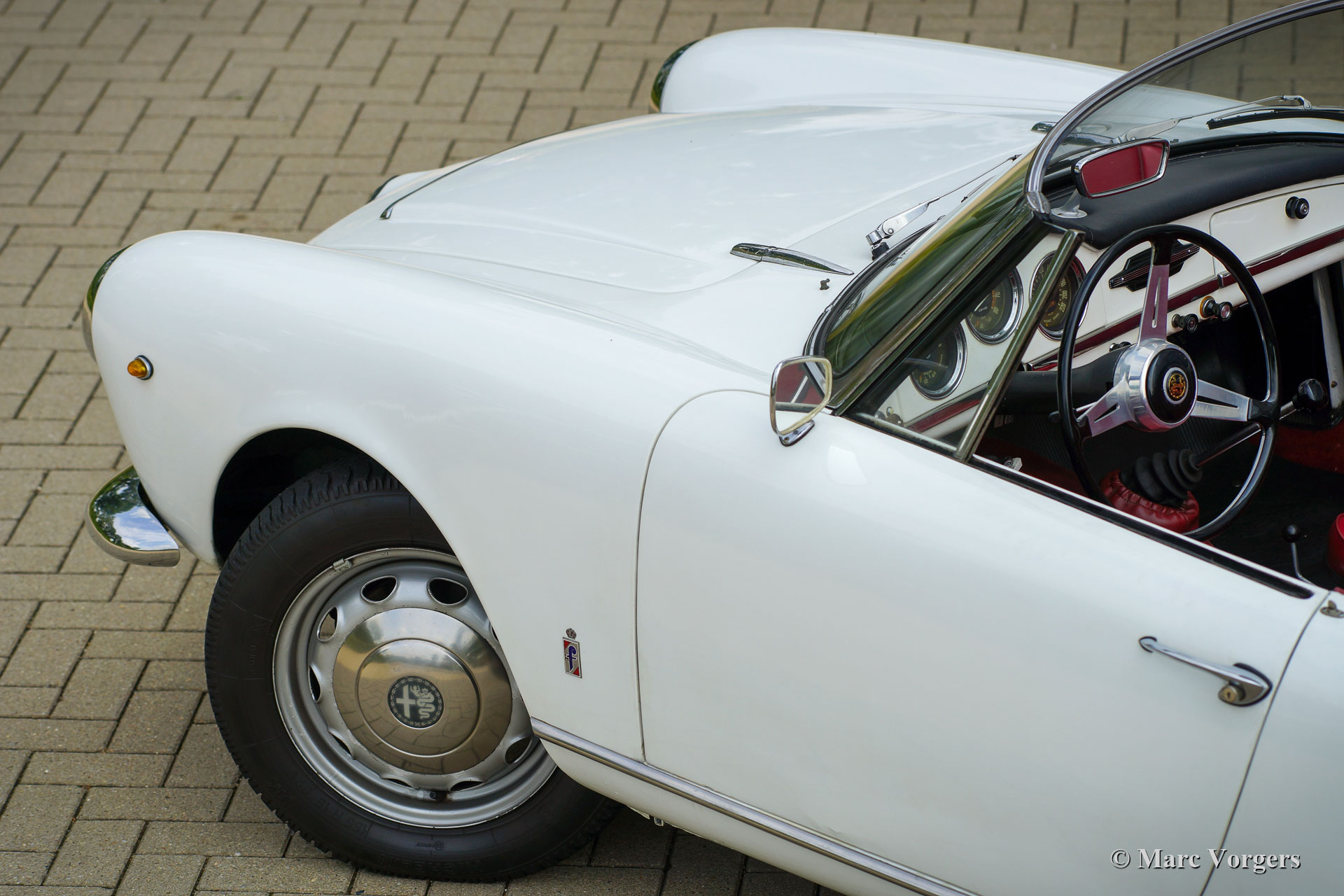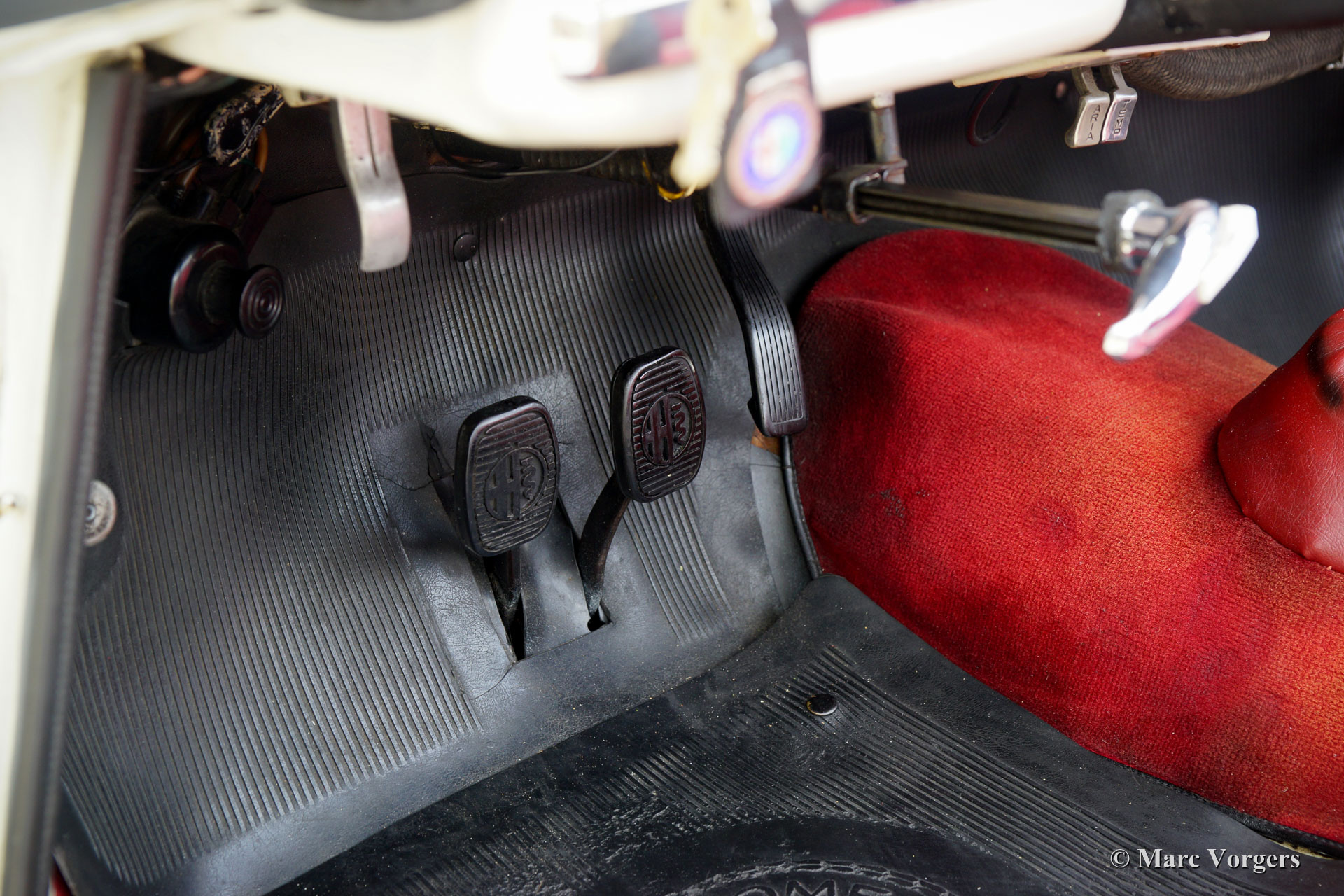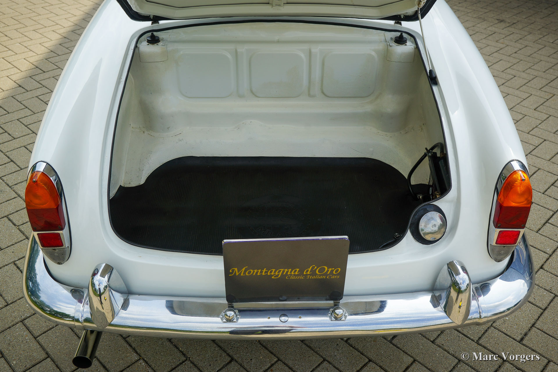 The interior works very roomy to your senses and the typical dashboard and almost non existent front-screen post give a very nice, Mediterranean, convertible feeling...The Giulia spider was built until the year 1965.
