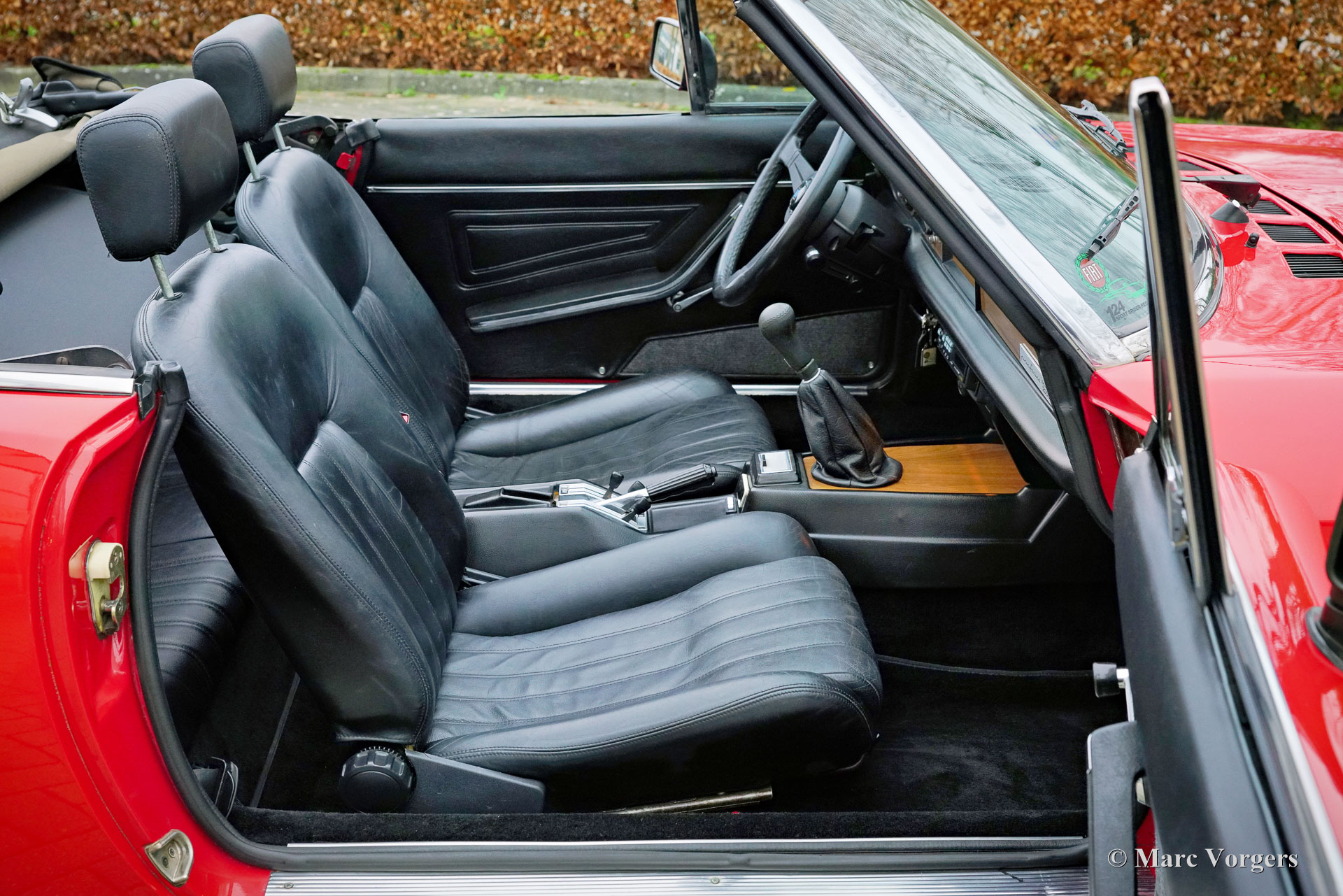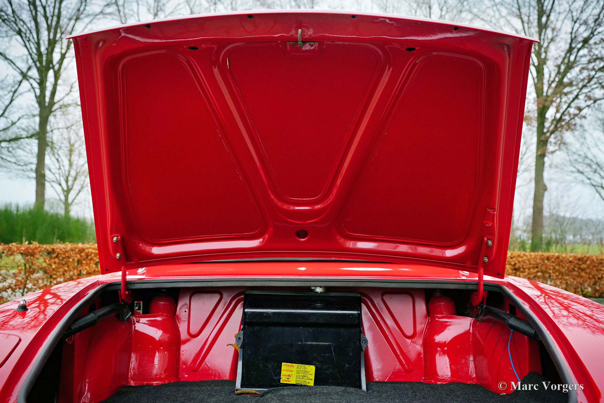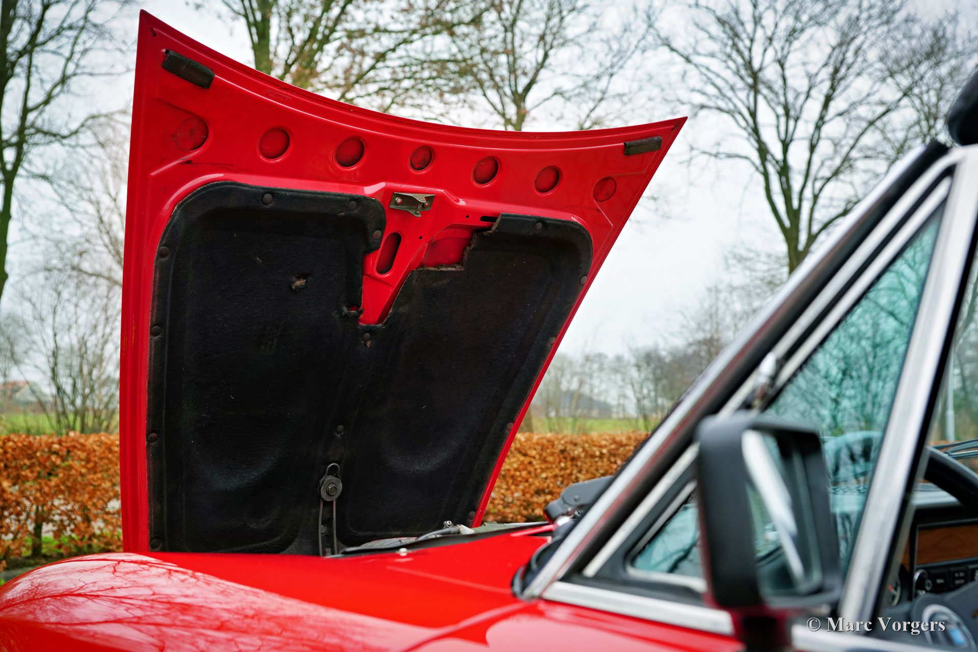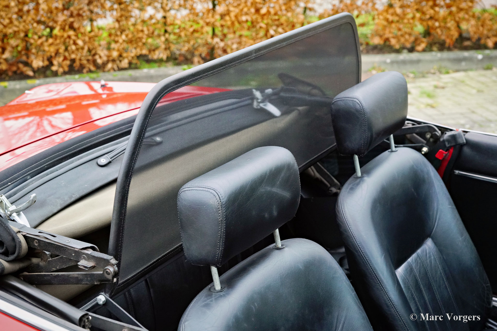 Fiat 124 Spider 2000 USA, année 1980. (Première immatriculation 28-02-1980). Numéro de châssis ZFA124CS000168676, numéro de moteur FF132CB 4371507. Couleur rouge associée à un intérieur en cuir noir et à une moquette noire. Capote noire. Cette fantastique Fiat 124 2000 Spider fut importée aux Pays-Bas en 1995. Le compteur kilométrique indique actuellement 38,094 miles. La voiture est très bien documentée et complète avec des factures décrivant tous les travaux effectués. Récemment, la courroie de distribution et les joints du moteur furent renouvelés. Les freins furent révisés et un entretien complet a été effectué, y compris les changements d'huile et de liquide, de nouvelles bougies d'allumage et de nouveaux filtres. La Fiat 124 Spider fut conçue par Pininfarina. La Spider est une voiture à toit ouvert très belle et pratique qui offre un espace intérieur et de coffre suffisant pour les sorties de week-end et les « road trips ». Cette magnifique Fiat 124 Spider 2000 est un véritable bijou avec ses couleurs et son intérieur en cuir ainsi que ses superbes jantes en alliage Cromodora Abarth ! De plus, la voiture est équipée d'un magnifique volant Nardi et d'un système radio/CD stéréo Alpine 4 x 25 watts. Ce bel exemplaire apportera beaucoup de joie et de plaisir de conduite au fier nouveau propriétaire !