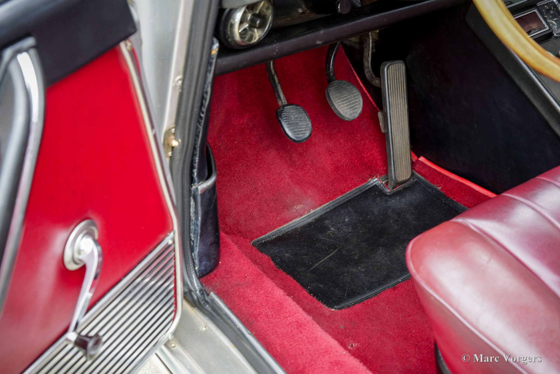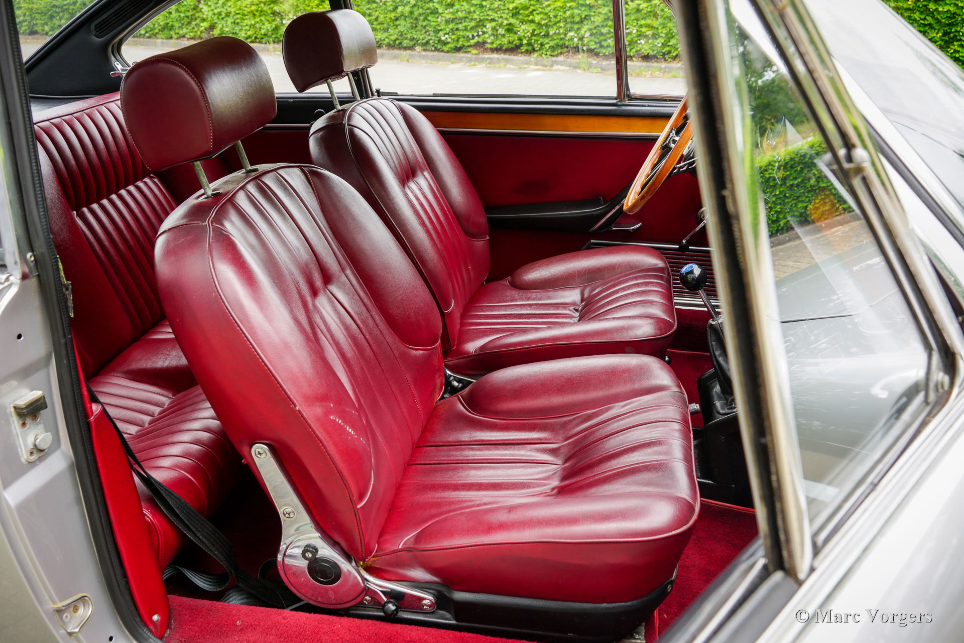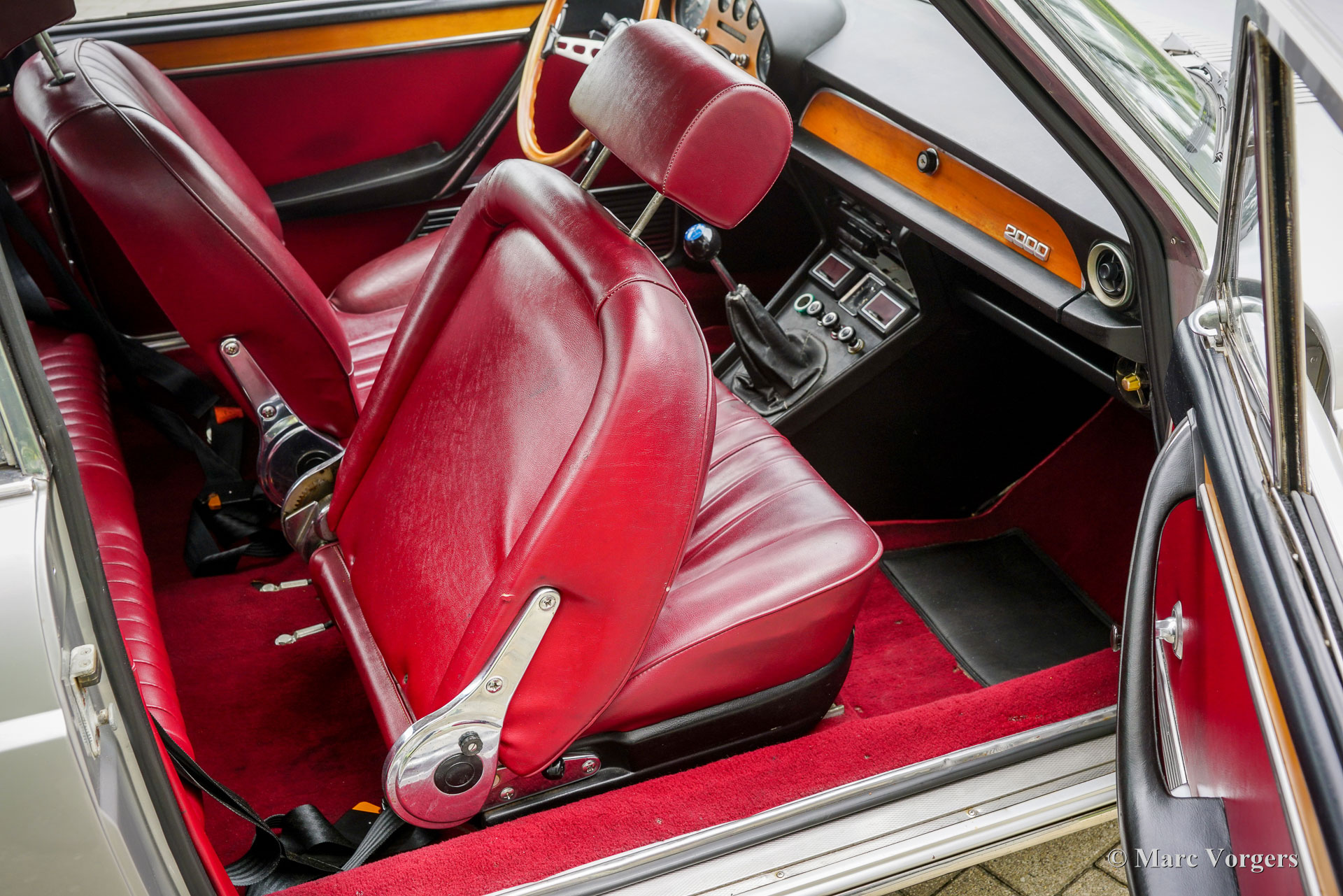 Lancia 2000 Coupé, année 1972 (première immatriculation le 15 septembre 1972). Numéro de châssis 820.230.001.445, numéro de moteur 820.200.002.048. Couleur : Grigio (gris) métallisé, associé à un intérieur en similicuir rouge et à une moquette rouge. Cette magnifique Lancia 2000 Coupé a été vendue neuve en Belgique ; le 15 décembre 1984, elle a été immatriculée aux Pays-Bas. Le compteur affiche désormais 76 361 km. La voiture est en bon état, avec quelques imperfections mineures sur la carrosserie et la peinture. La Lancia 2000 Coupé succède à la Lancia Flavia Coupé 2000, bien que les deux voitures soient quasiment identiques. Le design original et très élégant de la Lancia Flavia Coupé Pininfarina fut modifié sur quelques détails. La prise d'air du capot fut supprimée et la calandre a été dotée d'une garniture chromée. L'amélioration la plus significative fut l'introduction d'une boîte de vitesses à cinq rapports. Le moteur boxer quatre cylindres de 1 991 cm³ refroidi par eau développe 115 ch et permet à la voiture d'atteindre une vitesse de pointe de 185 km/h – une performance exceptionnelle pour une voiture du début des années 1970 ! La Lancia 2000 Coupé est une voiture rare et exclusive ; seulement 1 399 exemplaires furent produits. Cette Lancia 2000 Coupé est une véritable voiture de conduite, à savourer pleinement. La Lancia (Flavia) 2000 Coupé est l'une de nos préférées ; nous avons toujours une sélection d'exemplaires attrayants, dans différentes gammes de prix, exposés dans notre showroom.