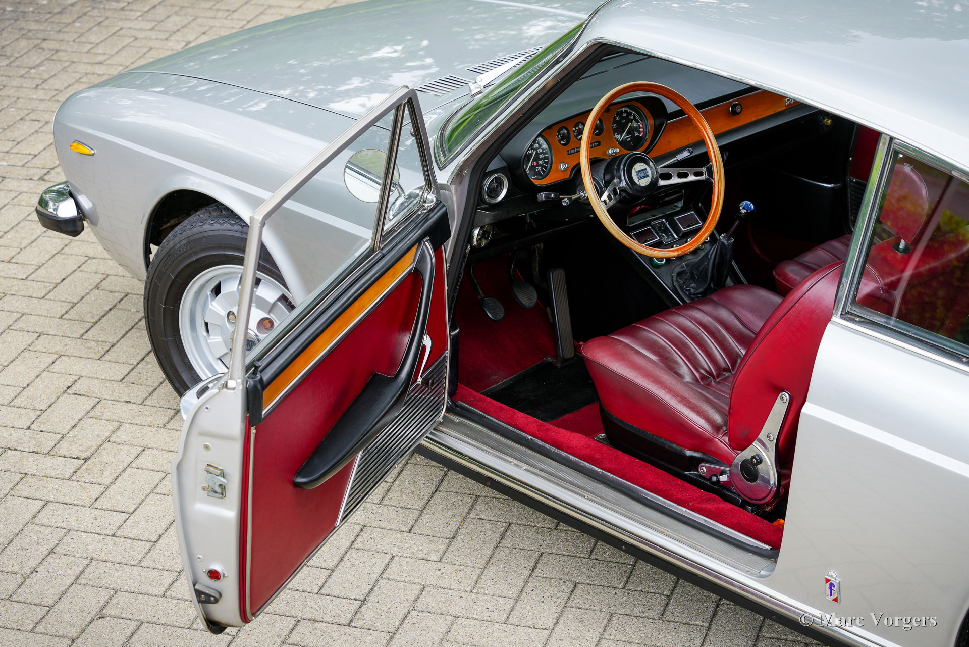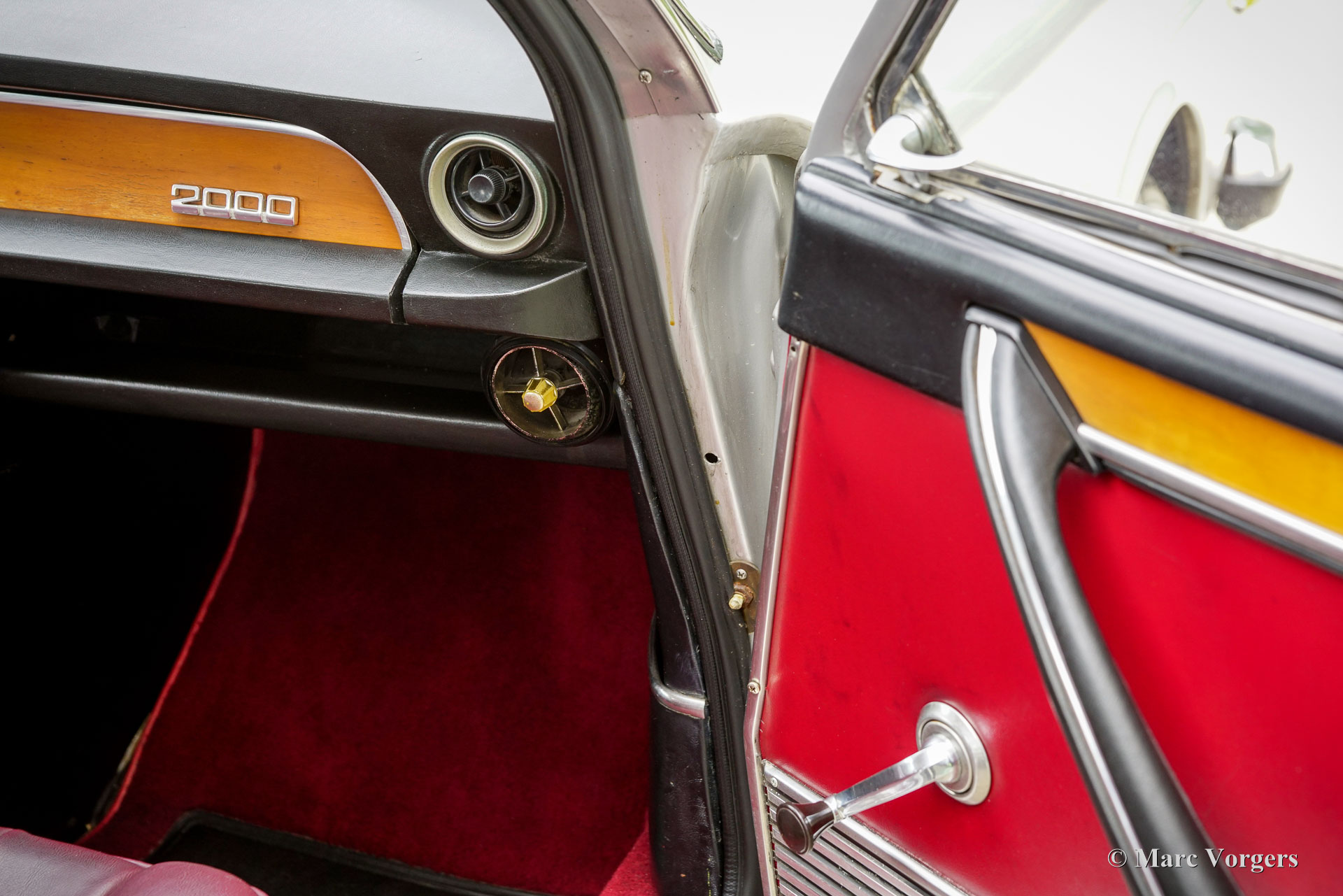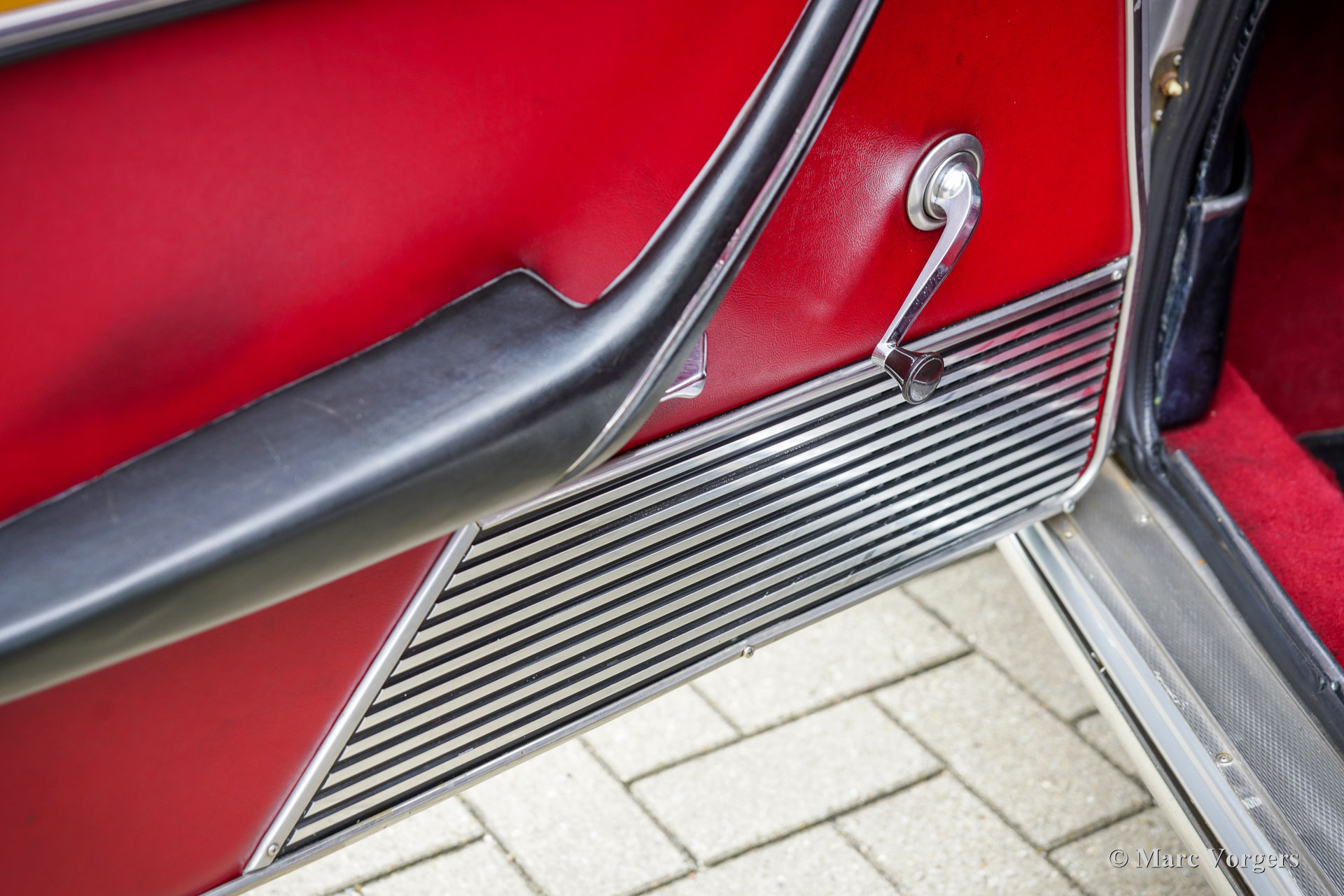 Lancia 2000 Coupé, année 1972 (première immatriculation le 15 septembre 1972). Numéro de châssis 820.230.001.445, numéro de moteur 820.200.002.048. Couleur : Grigio (gris) métallisé, associé à un intérieur en similicuir rouge et à une moquette rouge. Cette magnifique Lancia 2000 Coupé a été vendue neuve en Belgique ; le 15 décembre 1984, elle a été immatriculée aux Pays-Bas. Le compteur affiche désormais 76 361 km. La voiture est en bon état, avec quelques imperfections mineures sur la carrosserie et la peinture. La Lancia 2000 Coupé succède à la Lancia Flavia Coupé 2000, bien que les deux voitures soient quasiment identiques. Le design original et très élégant de la Lancia Flavia Coupé Pininfarina fut modifié sur quelques détails. La prise d'air du capot fut supprimée et la calandre a été dotée d'une garniture chromée. L'amélioration la plus significative fut l'introduction d'une boîte de vitesses à cinq rapports. Le moteur boxer quatre cylindres de 1 991 cm³ refroidi par eau développe 115 ch et permet à la voiture d'atteindre une vitesse de pointe de 185 km/h – une performance exceptionnelle pour une voiture du début des années 1970 ! La Lancia 2000 Coupé est une voiture rare et exclusive ; seulement 1 399 exemplaires furent produits. Cette Lancia 2000 Coupé est une véritable voiture de conduite, à savourer pleinement. La Lancia (Flavia) 2000 Coupé est l'une de nos préférées ; nous avons toujours une sélection d'exemplaires attrayants, dans différentes gammes de prix, exposés dans notre showroom.