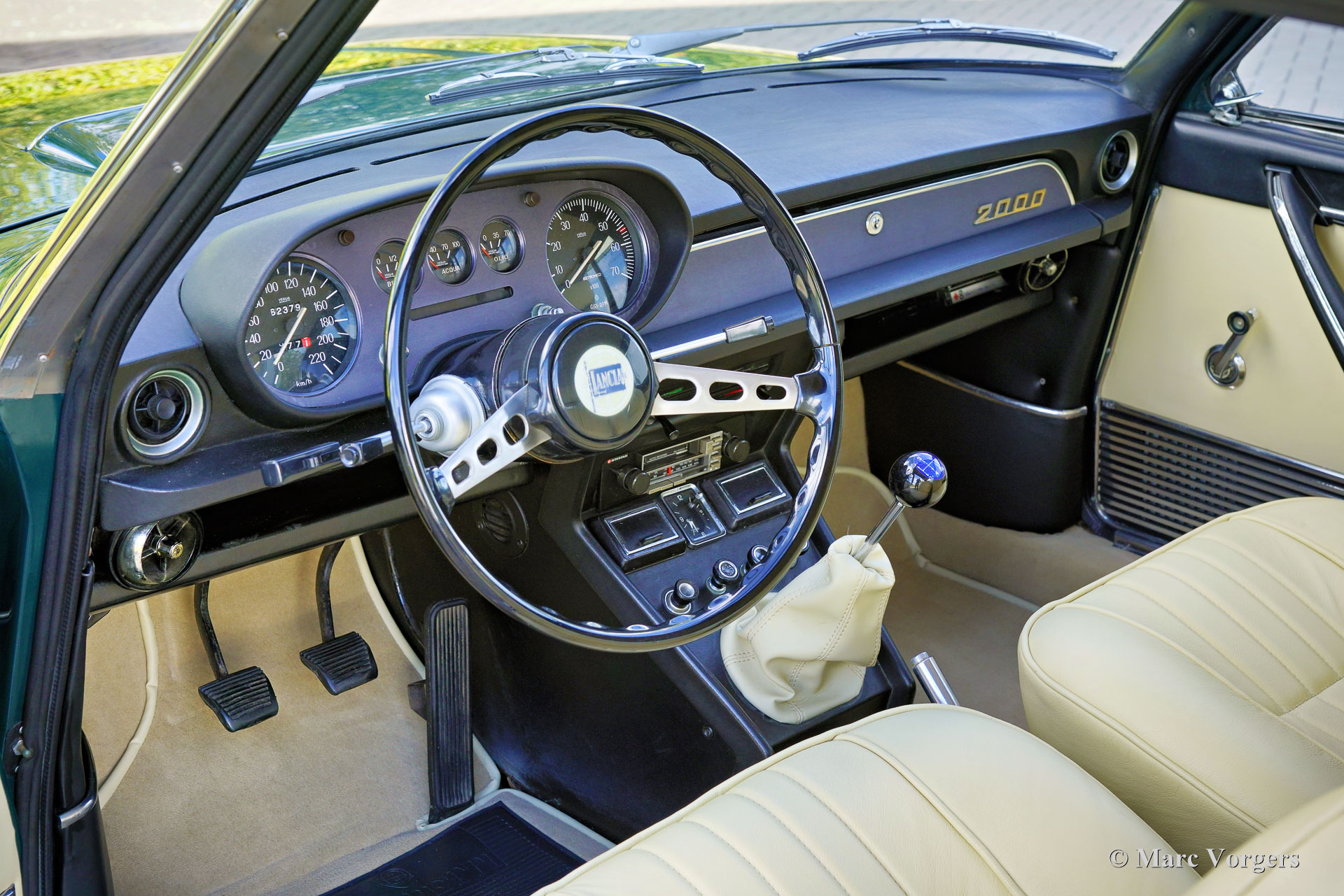 Lancia Flavia 2000 Coupé, année 1970 (1er janvier 1970). Couleur vert foncé (Verde Scuro) associée à un intérieur en cuir beige clair garni de moquette beige. Cette magnifique Lancia Flavia 2000 Coupé fut vendue neuve à un certain M. Andrea Grandoni qui vivait à Pesaro sur la magnifique côte adriatique de l'Italie. En 2018, cette magnifique automobile fut achetée au salon « Auto e Moto d'Epoca » à Padoue et exportée vers un fier nouveau propriétaire aux Pays-Bas. Cette Lancia Flavia 2000 est dans un très bon à excellent état, et la voiture roule et sonne à merveille ! Le compteur kilométrique indique 62379 km. L'intérieur fut parfaitement refait récemment ; les sièges en cuir, la moquette en laine et la garniture de pavillon beige propre sont fantastiques ! Le fond, le compartiment moteur et le coffre sont beaux et propres. Cette Lancia Flavia montre tous les détails d'origine, la voiture est une pièce irrésistible du design automobile italien des années 1960. La Lancia Flavia 2000 Coupé est une voiture rare, seuls 4163 exemplaires furent construits de 1969 à 1971. Le moteur boxer quatre cylindres de 116 ch est une unité merveilleuse, et le son du moteur est très spécial. C'est un exemplaire incroyablement beau pour les passionnés de Lancia !