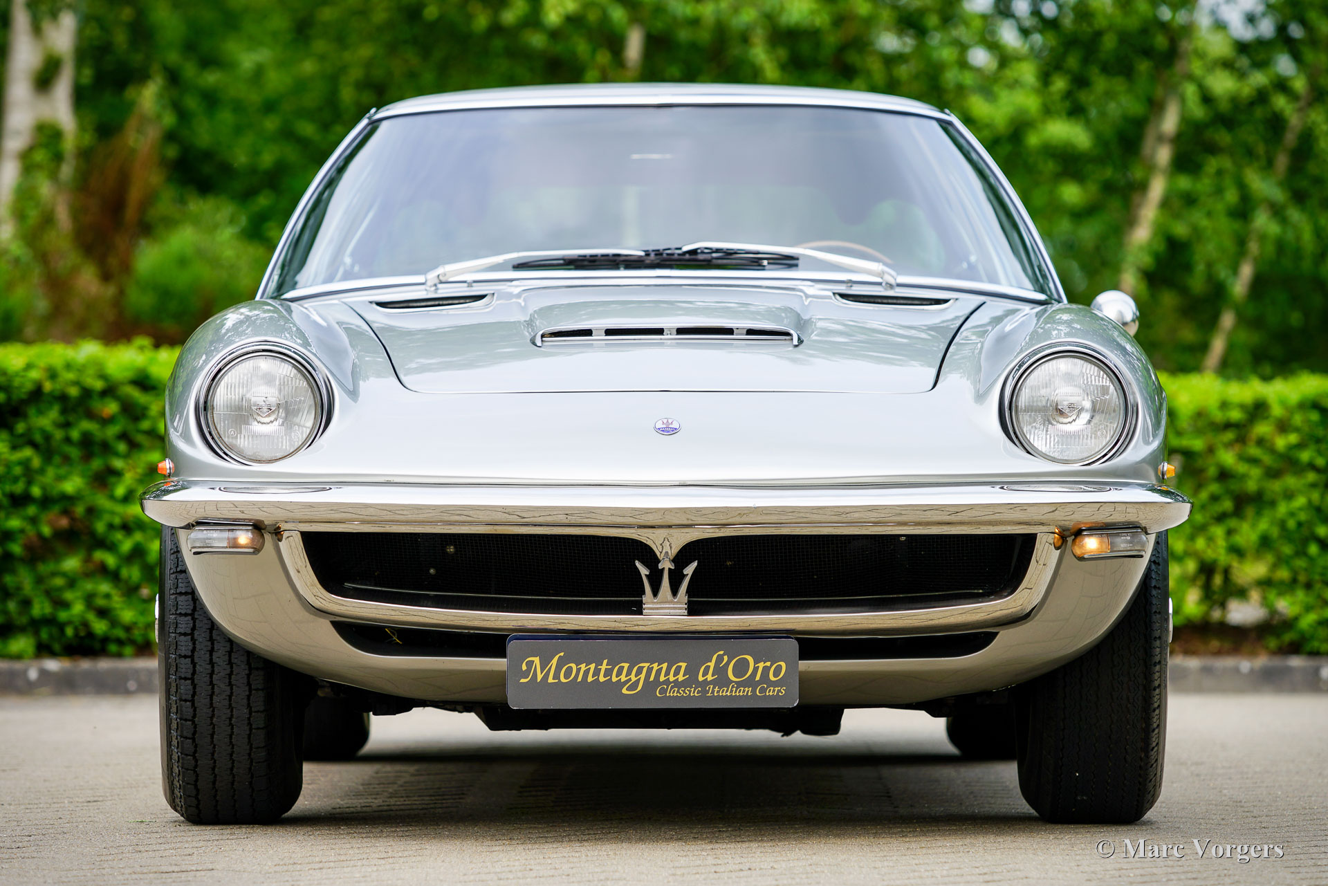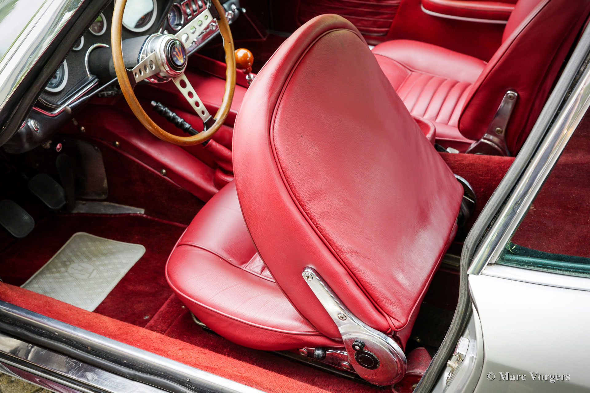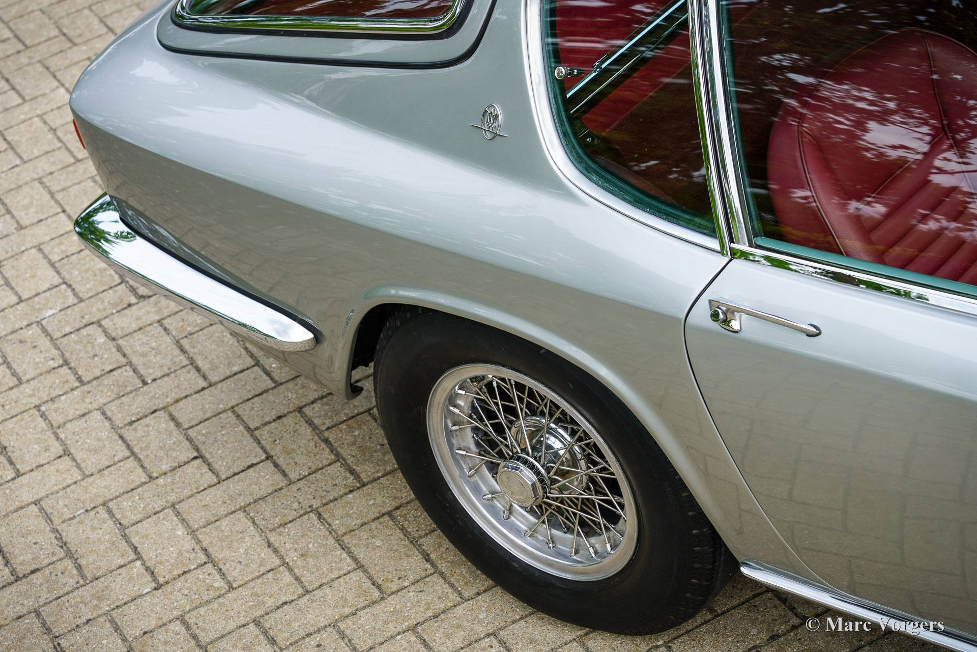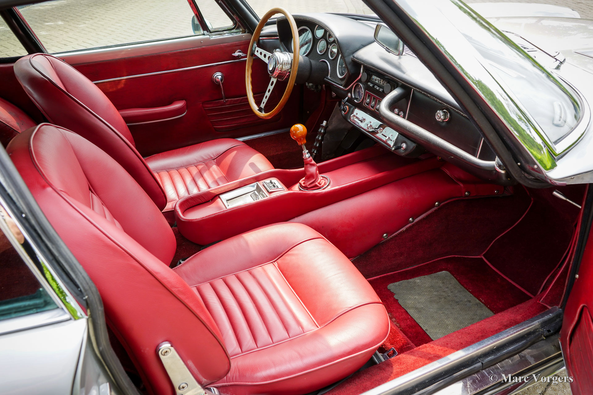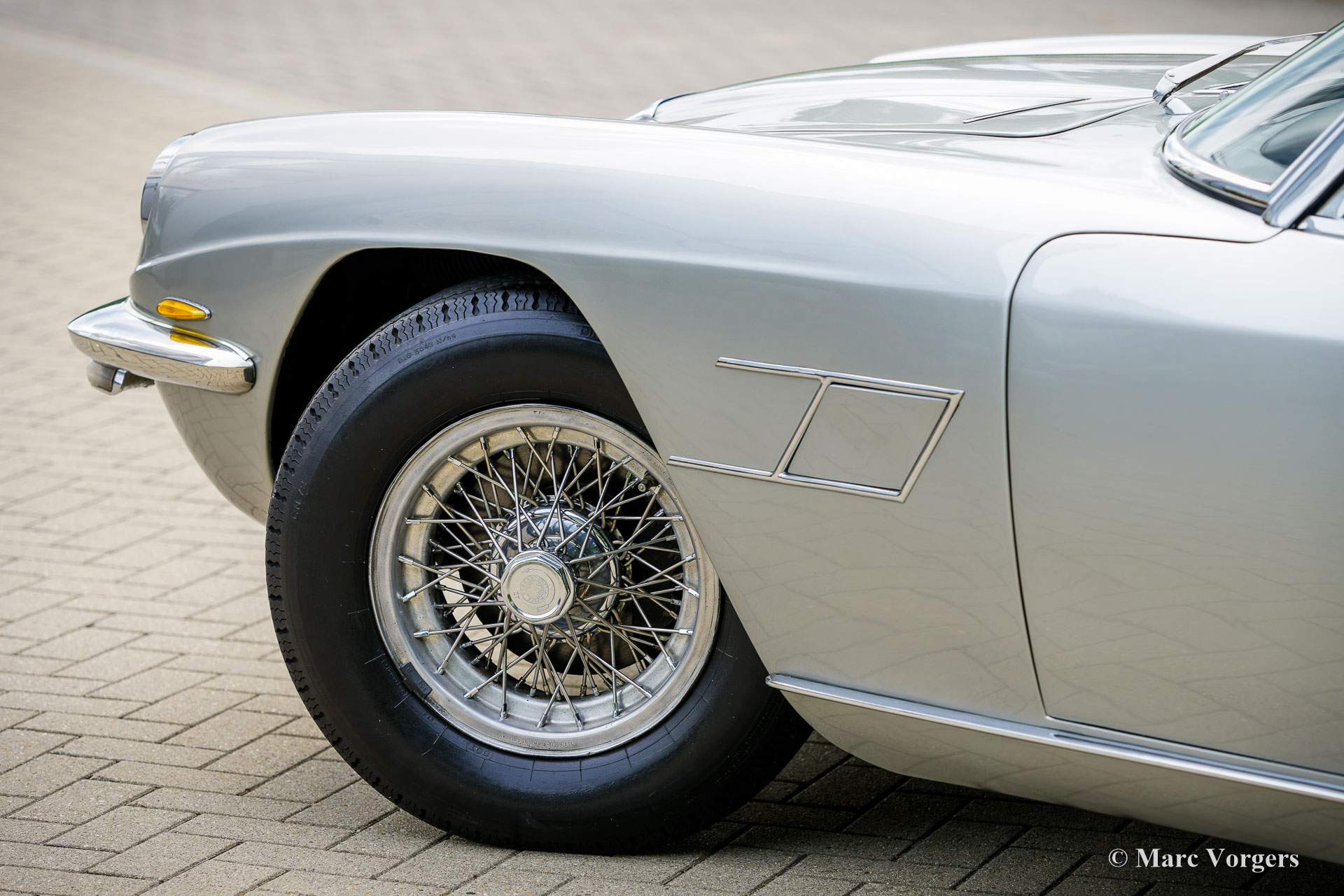 Maserati Mistral 4000 GT, année 1967 (première immatriculation le 1er février 1967). Couleur : argent métallisé (Argento Auteuil Salchi 106E1) associé à un intérieur en cuir rouge et une moquette rouge. Cette Maserati d'une qualité impressionnante a été livrée neuve le 5 février 1967 à Mario C. Sambrogio Susa à Turin, en Italie. Imaginez ! Ce devait être un jour inoubliable pour son premier propriétaire ! Le 6 juin 1991, la voiture fut immatriculée aux Pays-Bas et le 3 mai 1995, elle a été acquise par son propriétaire actuel. Cette magnifique machine est chérie par un véritable passionné depuis 30 ans, et le compteur affiche aujourd'hui 7 163 kilomètres. En 2017, le moteur six cylindres en ligne de 4 litres a été révisé. Le bloc fut équipé de pistons (surdimensionnés), roulements et joints neufs. Depuis sa révision, la voiture n'a parcouru qu'environ 1 000 kilomètres. En 2018, la carrosserie fut restaurée par le cabinet Van de Visch de Barneveld et repeinte intégralement. Le magnifique intérieur est resté presque entièrement d'origine, avec des sièges recouverts de cuir rouge par le cabinet Koning. Bien entendu, le reste des composants mécaniques a également été exceptionnellement bien entretenu et amélioré là où cela était nécessaire. Le système de freinage fut révisé : les étriers furent équipés de pistons en acier inoxydable, les jantes Borrani en aluminium furent rerayées et un échappement (partiellement) en acier inoxydable fut installé. Cette Maserati Mistral 4000 GT est en très bon, voire excellent état, et sa conduite est impressionnante ! Construite de 1966 à 1970, c'est une véritable GT italienne racée, incarnant l'ADN de la marque en matière de course. La Mistral 4000 GT est une voiture de collection rare, produite à seulement 844 exemplaires. Ce magnifique exemplaire a conservé tous ses détails d'origine et a été exceptionnellement bien entretenu.