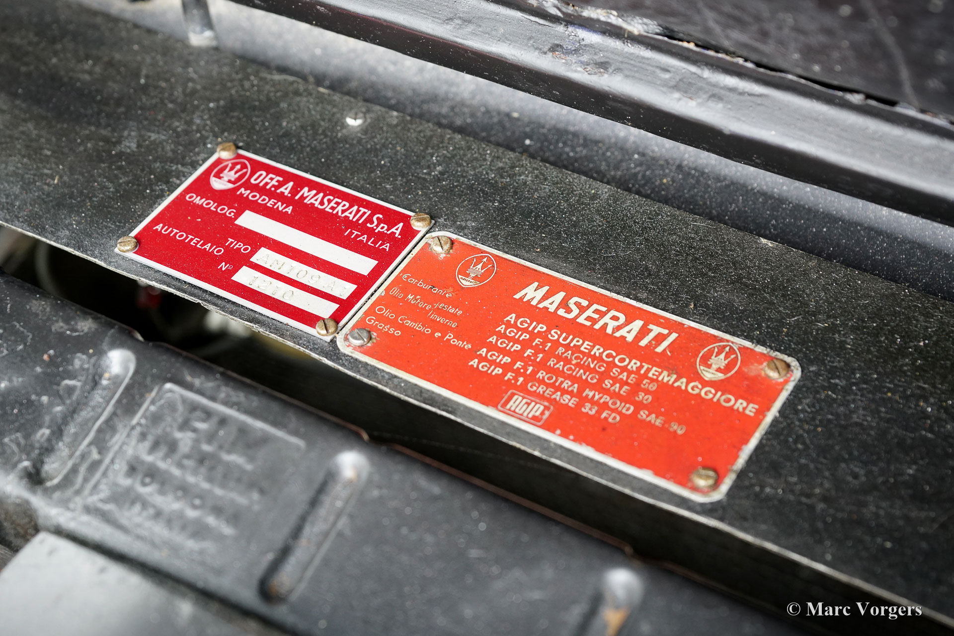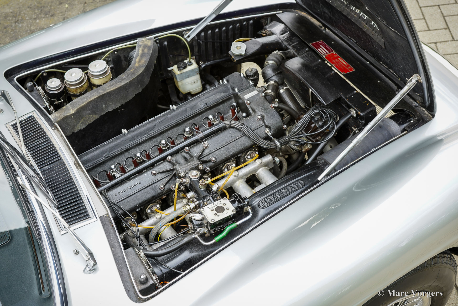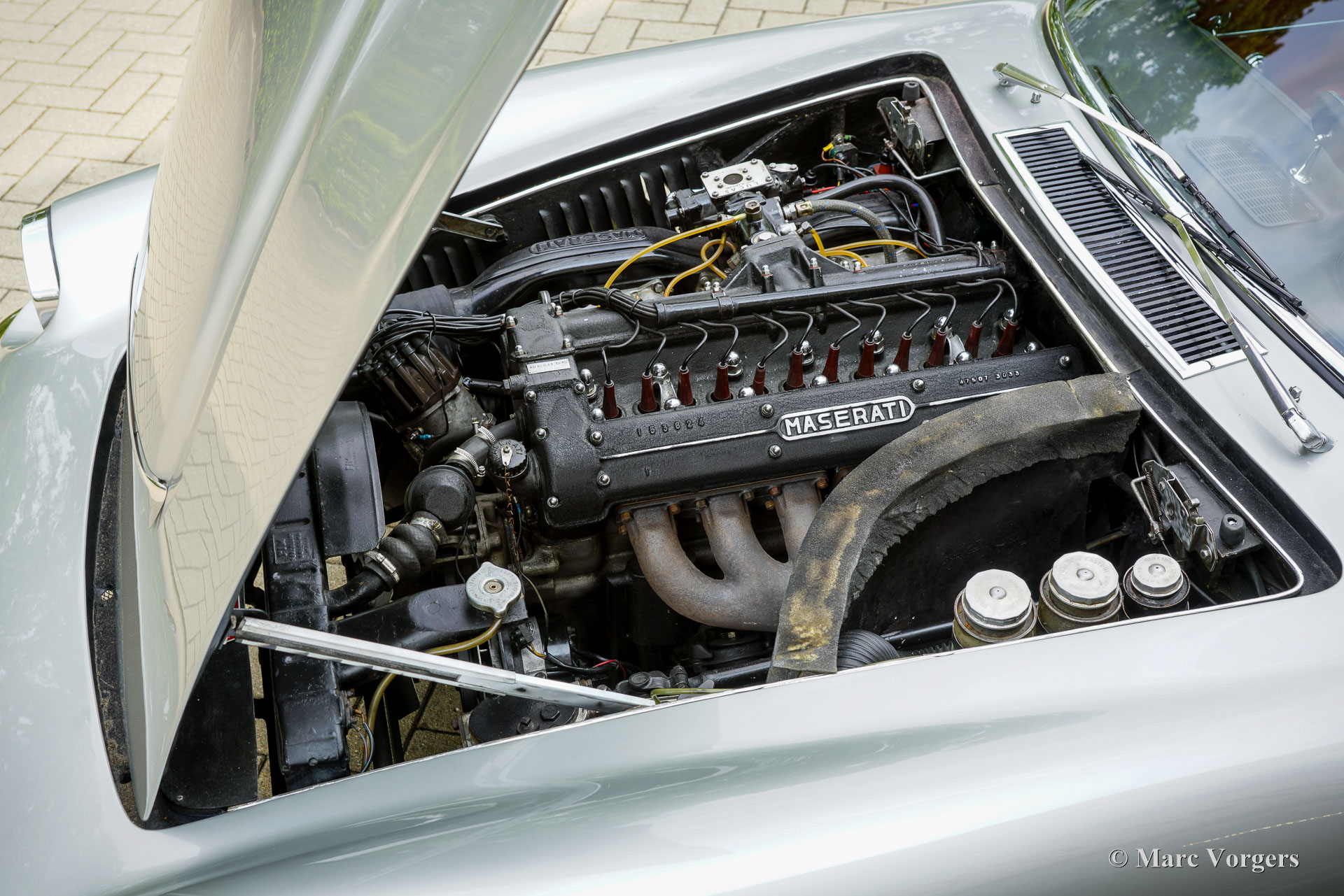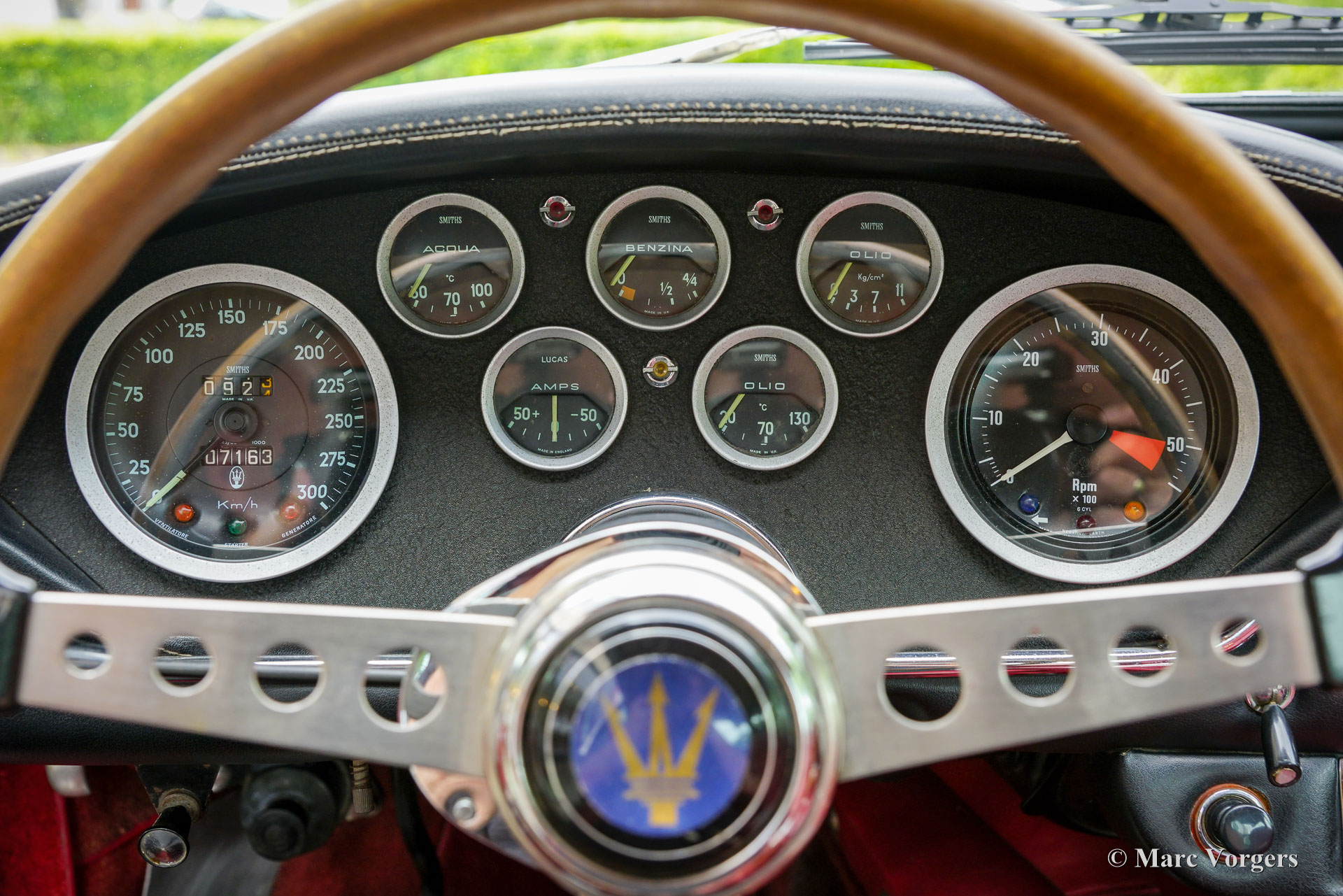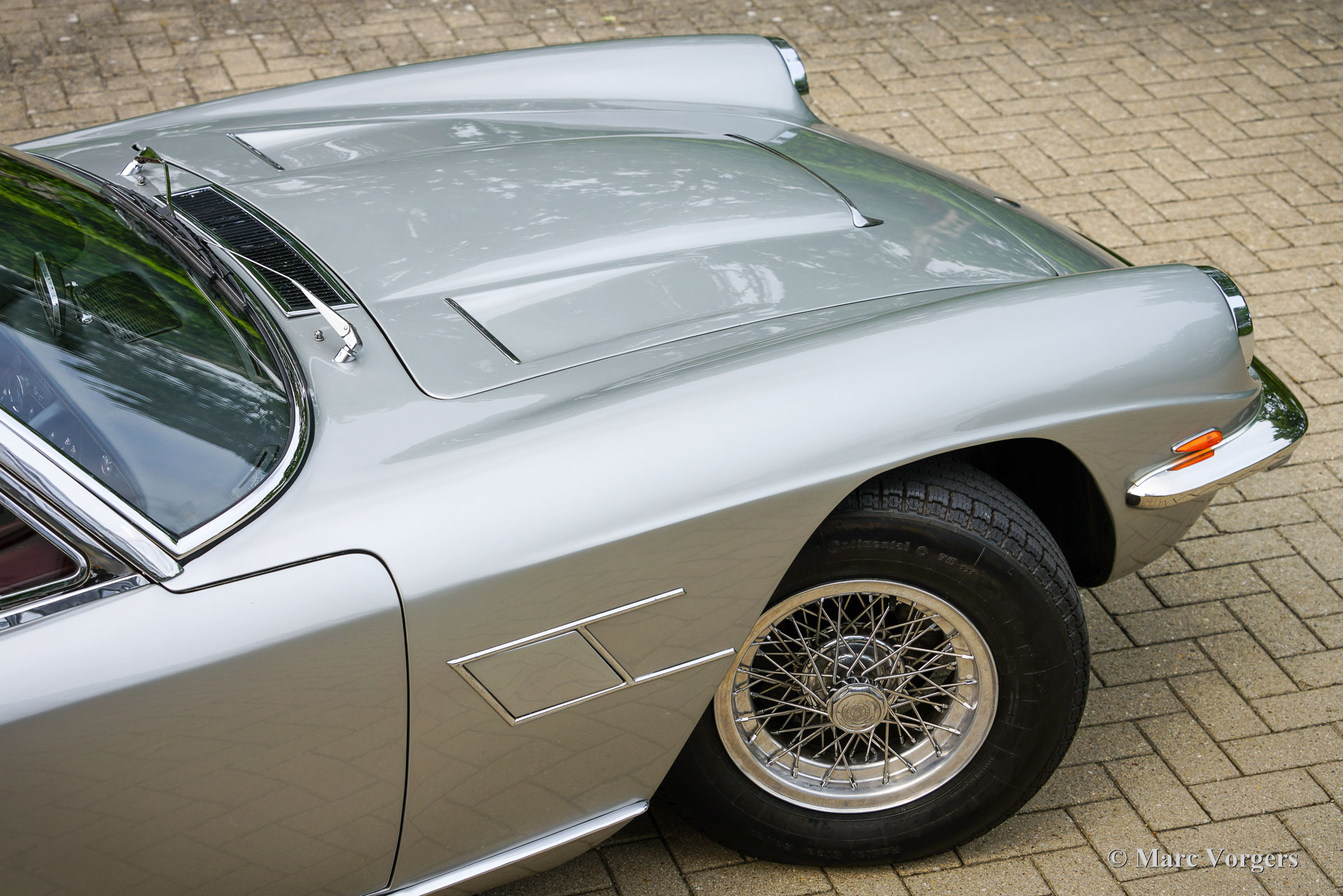 Maserati Mistral 4000 GT, année 1967 (première immatriculation le 1er février 1967). Couleur : argent métallisé (Argento Auteuil Salchi 106E1) associé à un intérieur en cuir rouge et une moquette rouge. Cette Maserati d'une qualité impressionnante a été livrée neuve le 5 février 1967 à Mario C. Sambrogio Susa à Turin, en Italie. Imaginez ! Ce devait être un jour inoubliable pour son premier propriétaire ! Le 6 juin 1991, la voiture fut immatriculée aux Pays-Bas et le 3 mai 1995, elle a été acquise par son propriétaire actuel. Cette magnifique machine est chérie par un véritable passionné depuis 30 ans, et le compteur affiche aujourd'hui 7 163 kilomètres. En 2017, le moteur six cylindres en ligne de 4 litres a été révisé. Le bloc fut équipé de pistons (surdimensionnés), roulements et joints neufs. Depuis sa révision, la voiture n'a parcouru qu'environ 1 000 kilomètres. En 2018, la carrosserie fut restaurée par le cabinet Van de Visch de Barneveld et repeinte intégralement. Le magnifique intérieur est resté presque entièrement d'origine, avec des sièges recouverts de cuir rouge par le cabinet Koning. Bien entendu, le reste des composants mécaniques a également été exceptionnellement bien entretenu et amélioré là où cela était nécessaire. Le système de freinage fut révisé : les étriers furent équipés de pistons en acier inoxydable, les jantes Borrani en aluminium furent rerayées et un échappement (partiellement) en acier inoxydable fut installé. Cette Maserati Mistral 4000 GT est en très bon, voire excellent état, et sa conduite est impressionnante ! Construite de 1966 à 1970, c'est une véritable GT italienne racée, incarnant l'ADN de la marque en matière de course. La Mistral 4000 GT est une voiture de collection rare, produite à seulement 844 exemplaires. Ce magnifique exemplaire a conservé tous ses détails d'origine et a été exceptionnellement bien entretenu.
