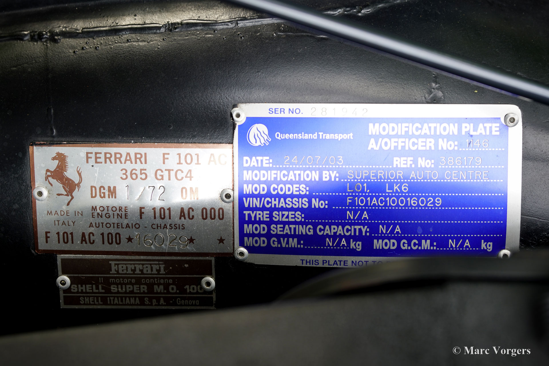 - Nouveau propriétaire en Australie depuis 2003. Kilométrage au compteur : 71 000 km. W.J. Murdoch, Noosaville, Queensland. Peinture rouge Ferrari sous ce propriétaire ; autres travaux effectués.
