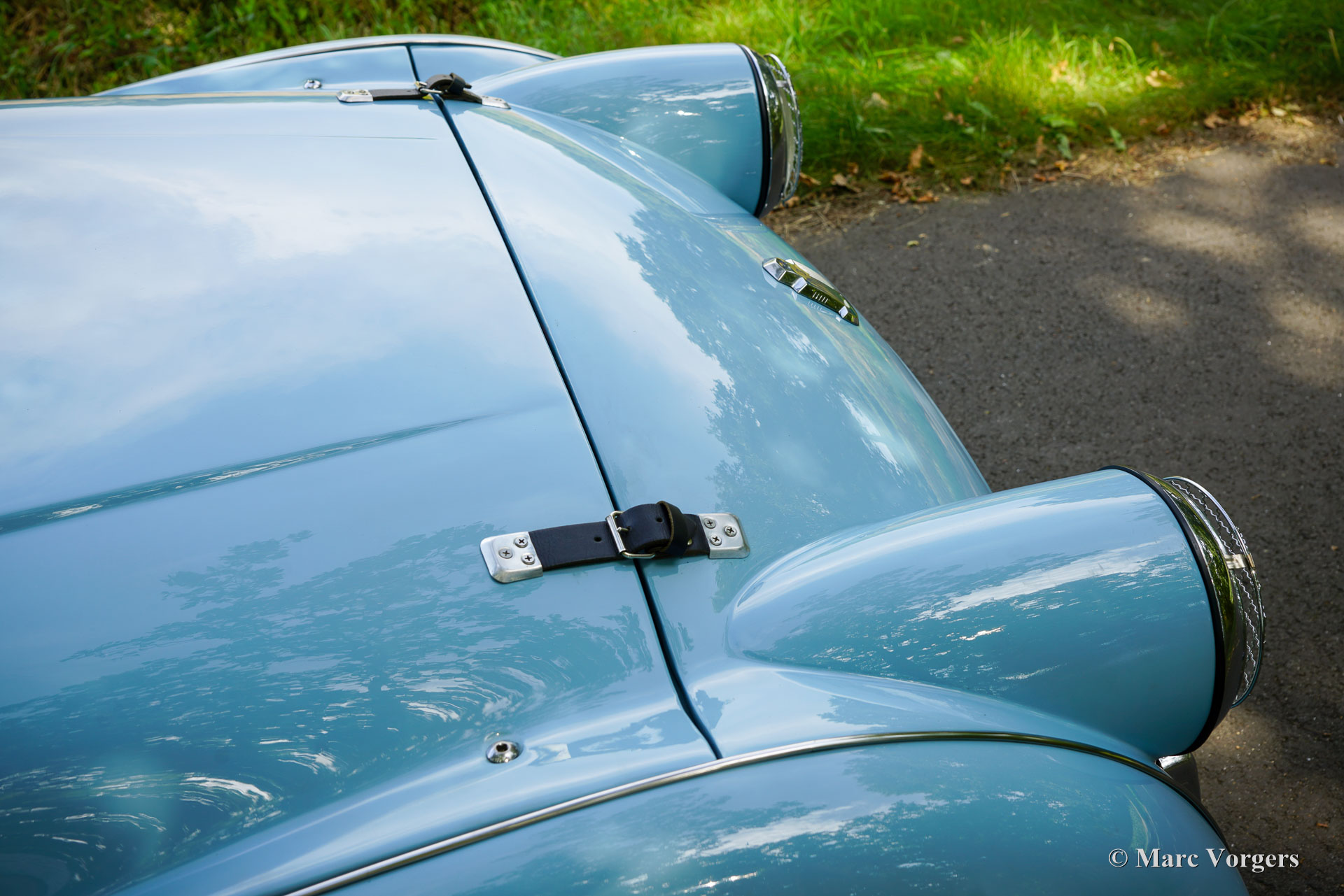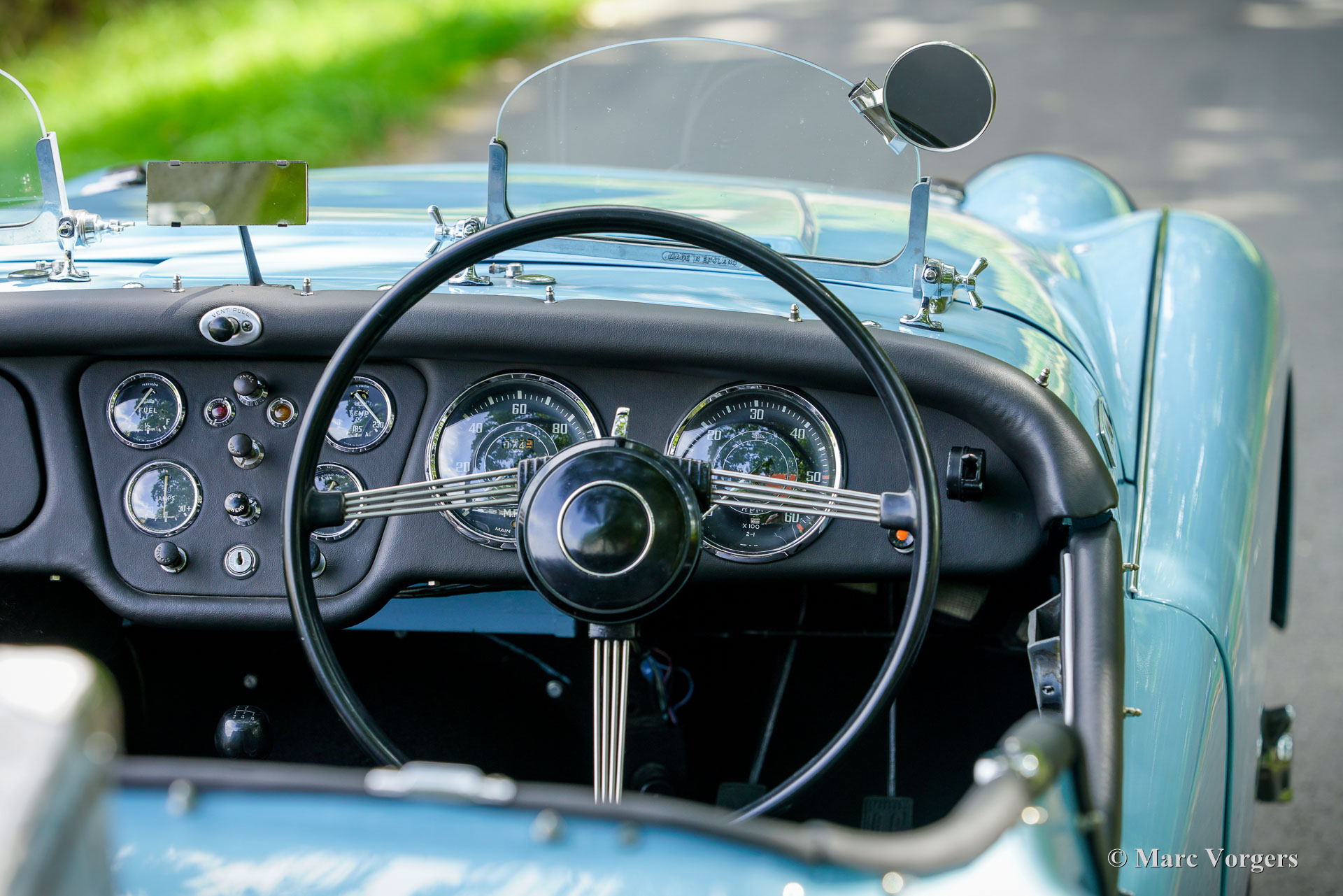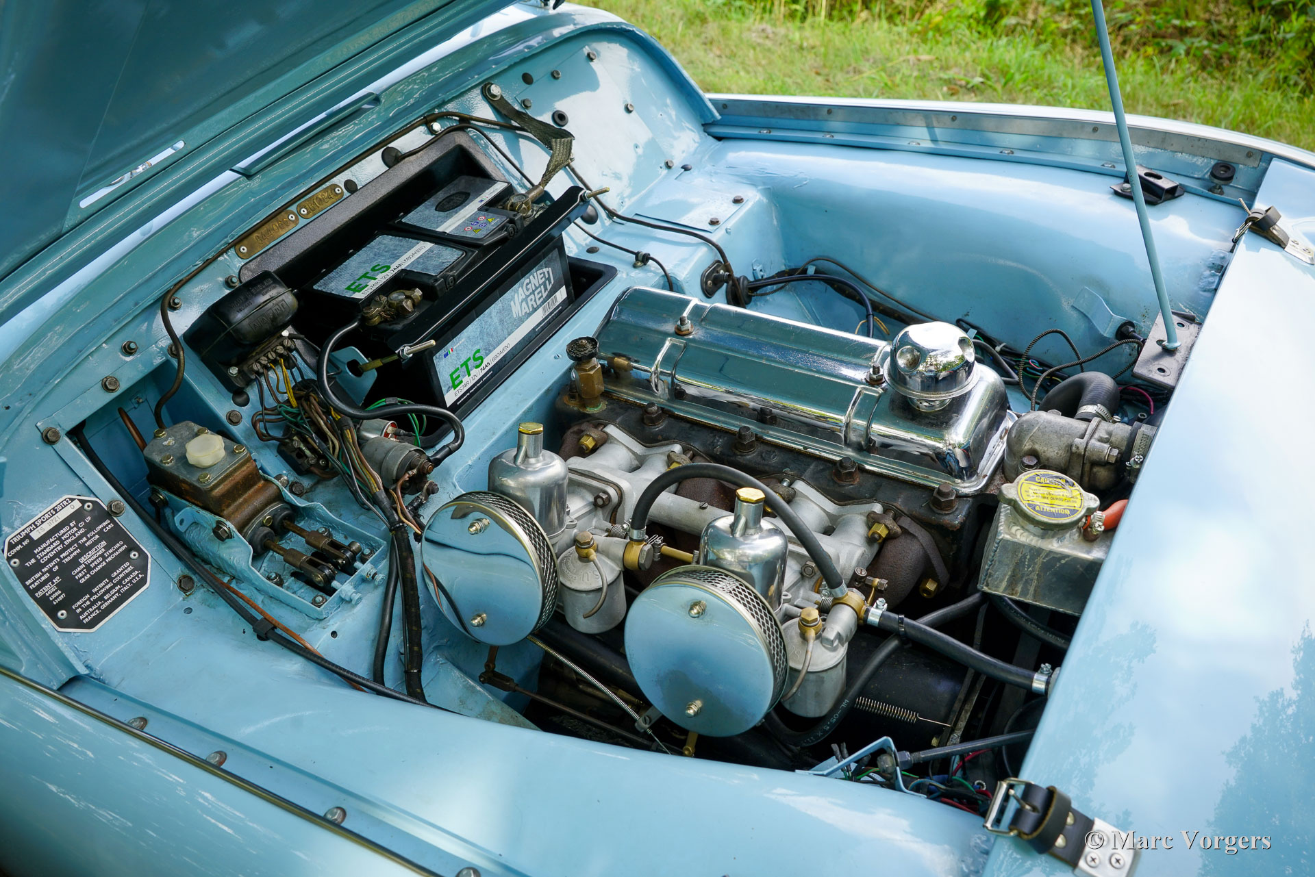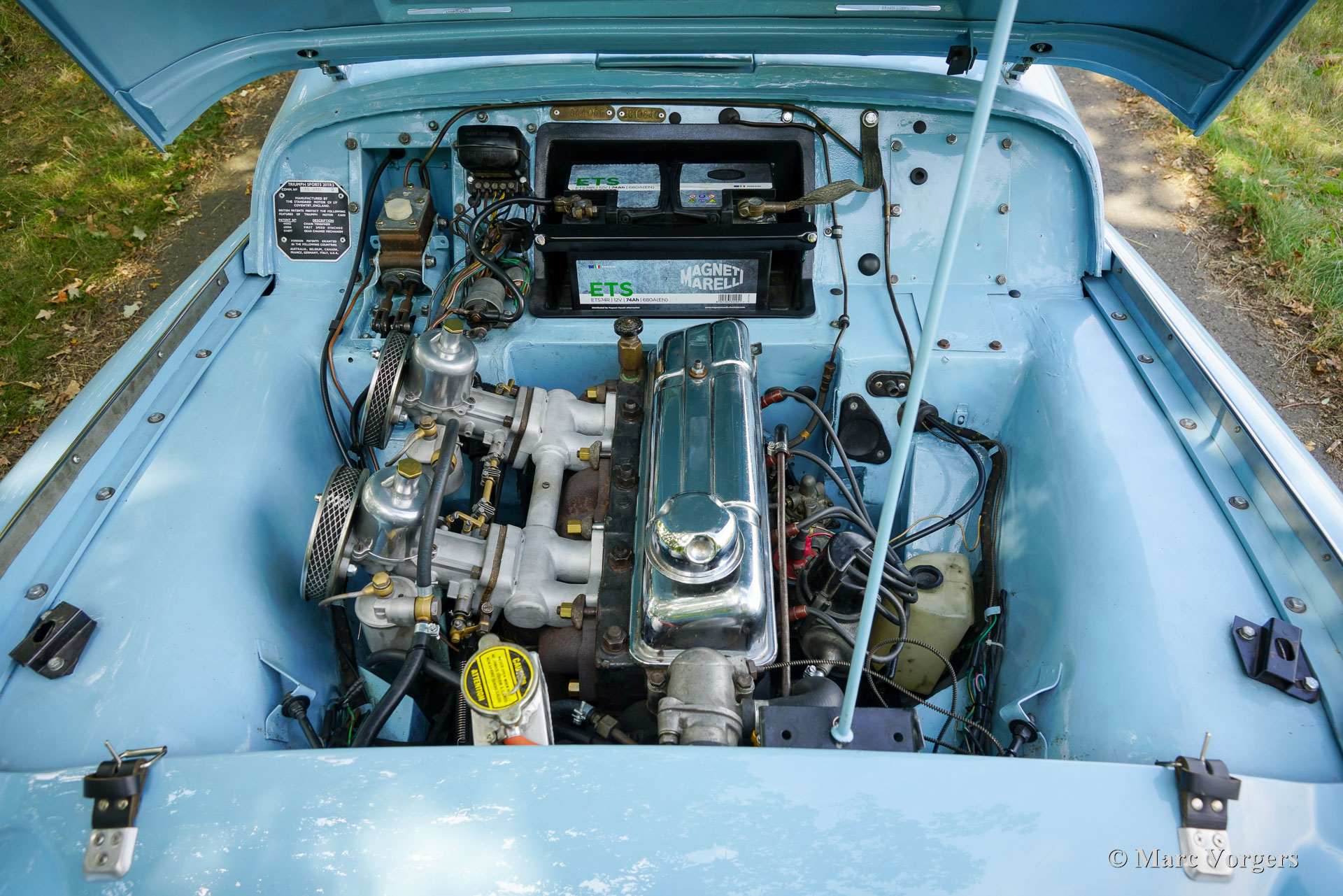 The Triumph TR 3 is a no nonsense sports car; very robust, simple and reliable, a true British sports car all over. The TR 3 was the first production car, off factory, equipped with disc brakes on the front-wheels. The engine was a Standard Vanguard based, cast-iron, long stroke, in-line four cylinder with a displacement of 1991cc. The TR 3 engine was equipped with two carburettors giving a power-output of almost 100 bhp.