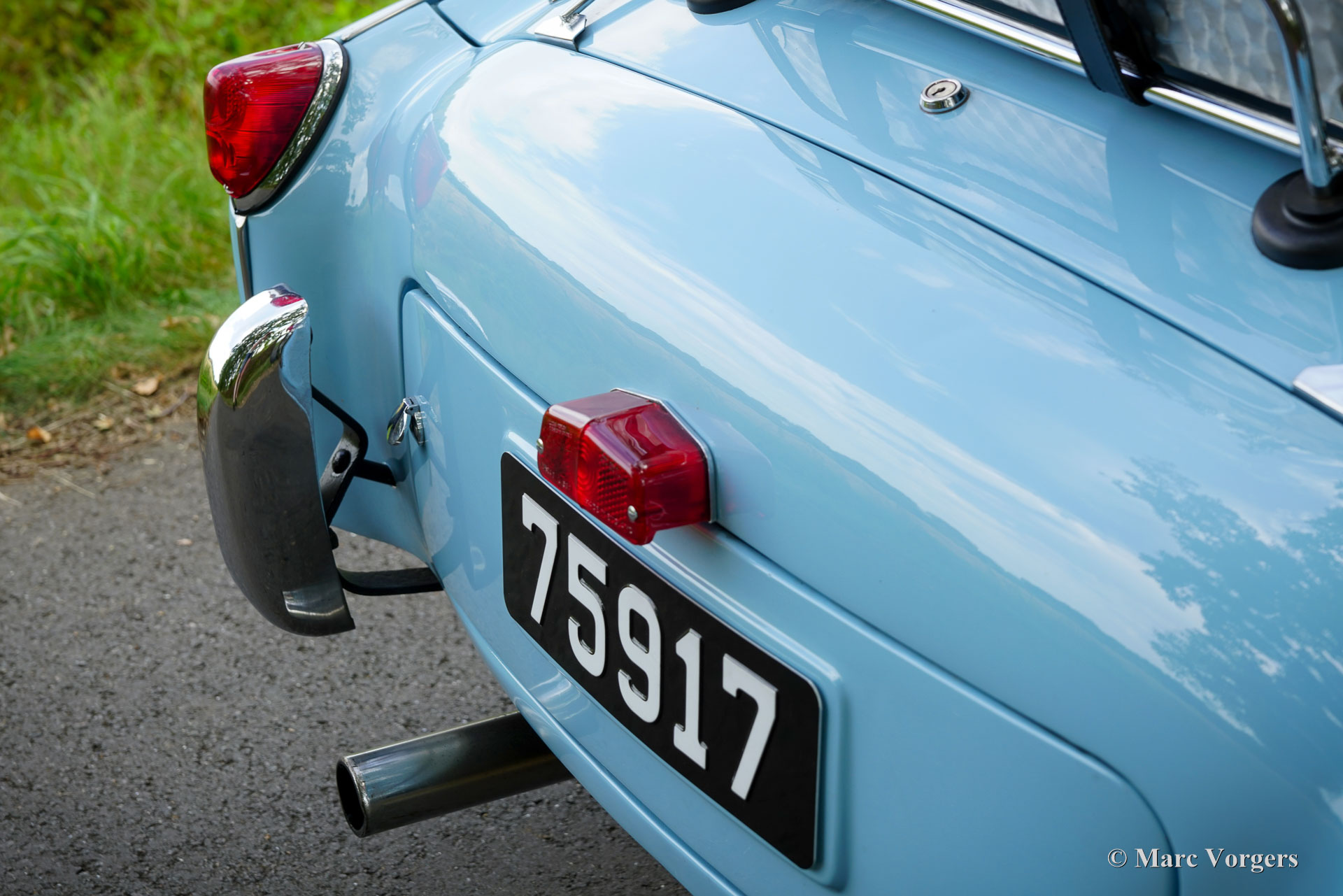 The TR 3 is a pure two-person roadster, a classic generously giving you the fifties British sports car feeling, rough but honest. It comes with a simple soft-top for weather protection. Separate clip-on side screens can additionally be attached to the doors. A hardtop was also available.