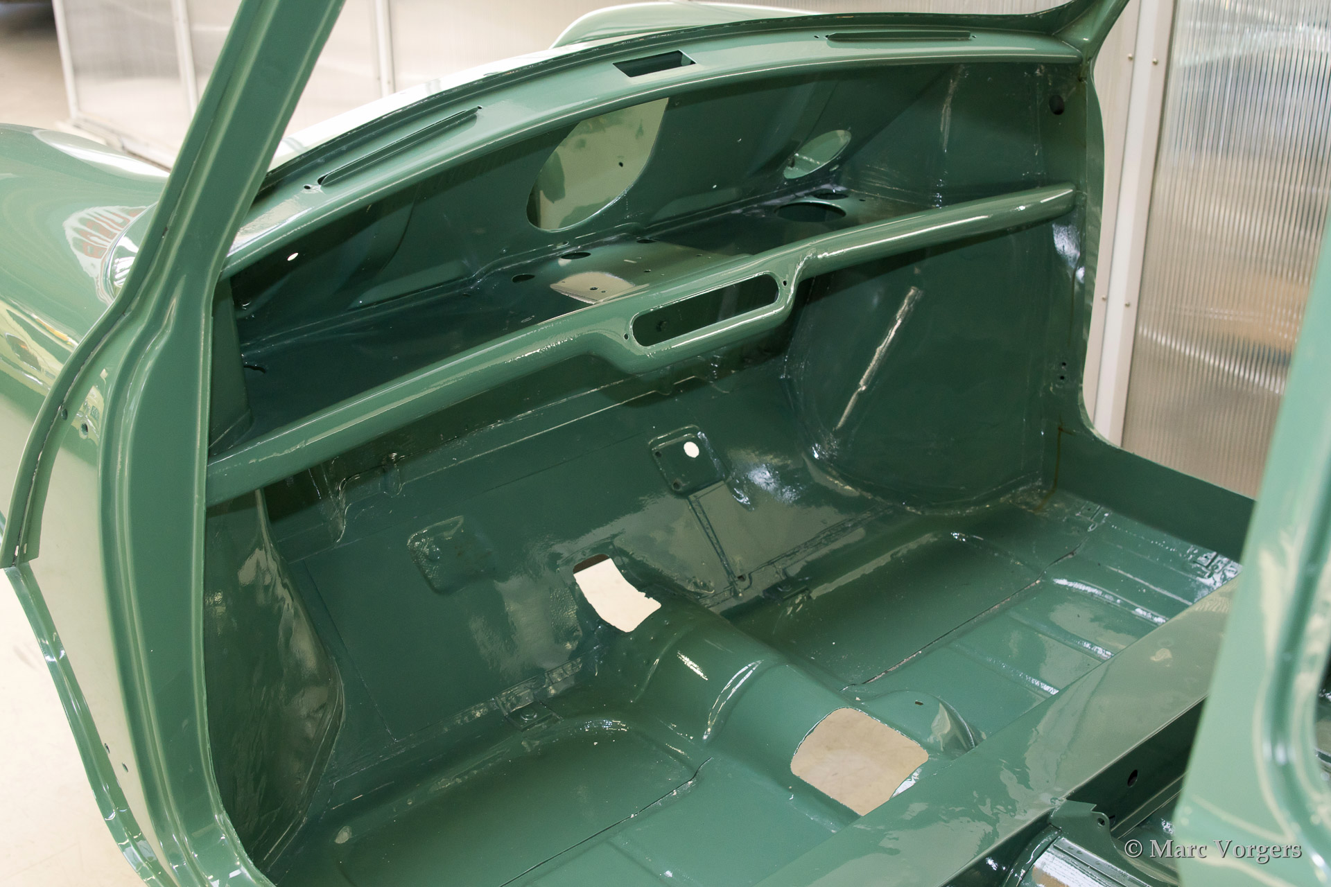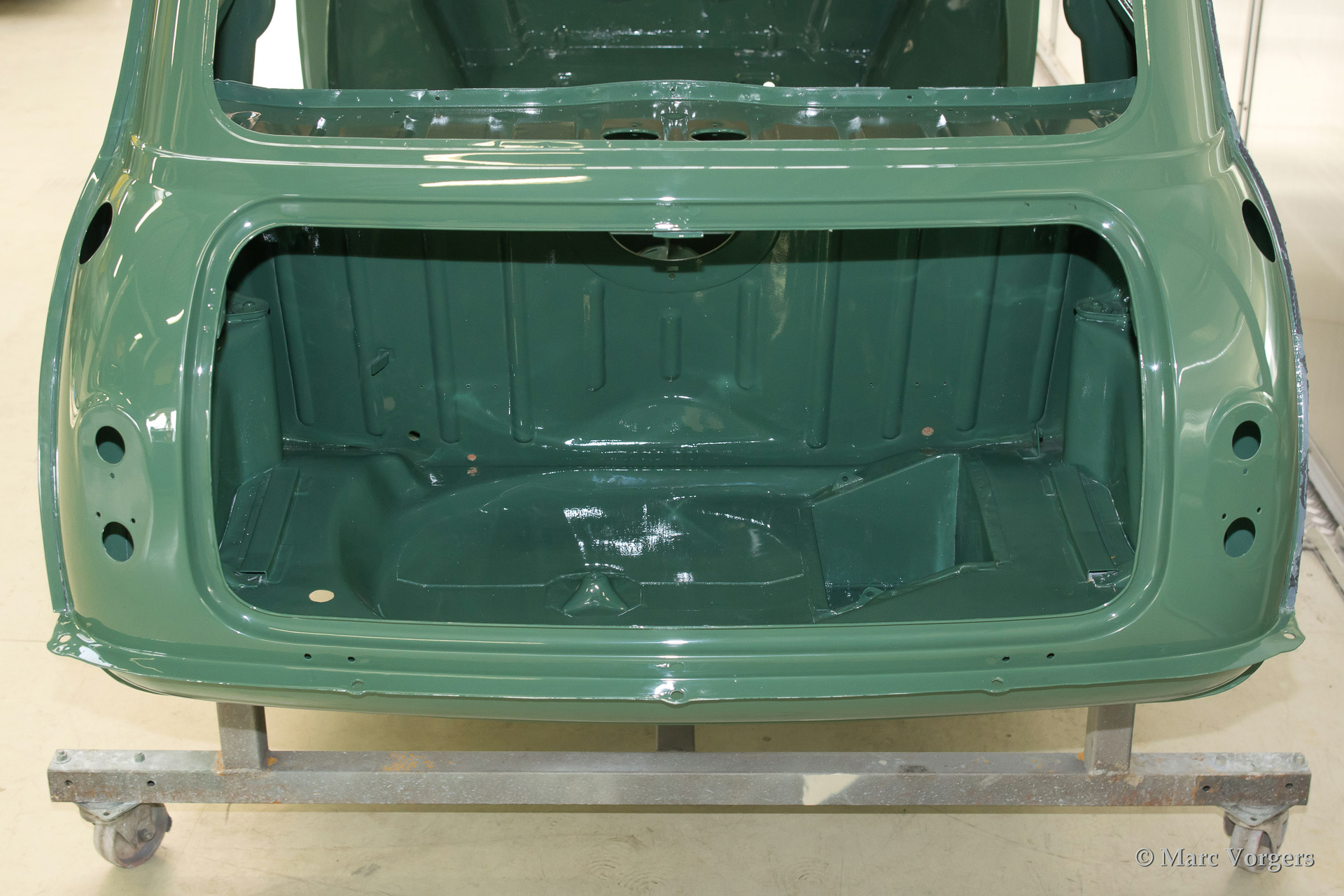This magnificent Austin Mini Cooper is being fully restored. The car was fully stripped. The mechanics are being overhauled and the interior is being restored to original specifications. The body was inspected, sheet metal work carried out, further paint stripped, sand blasted and epoxy primed. Now the Mini Cooper has been given a perfect paintjob!
