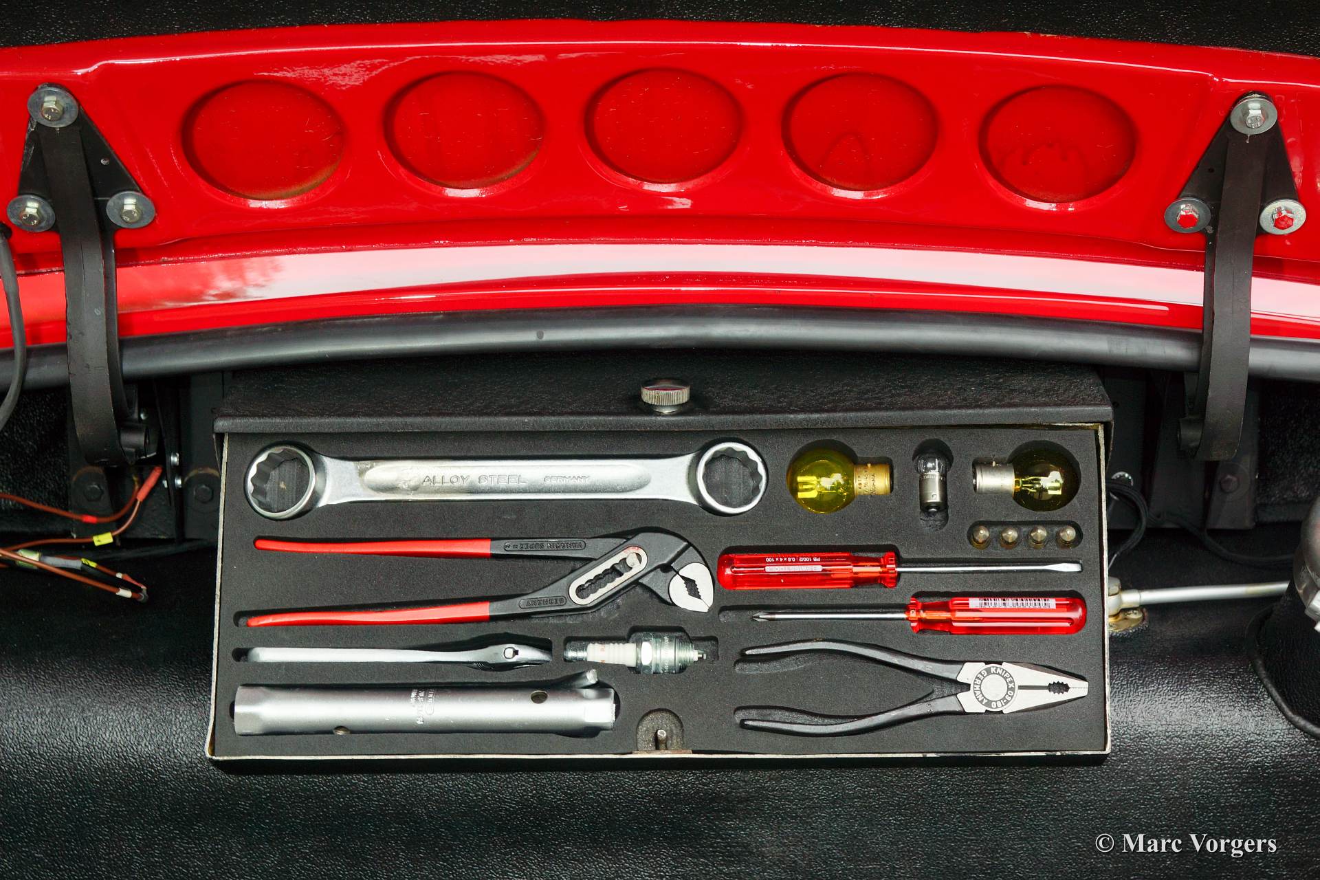 The magnificent interior was also beautifully restored. The steel dashboard facia was, like original, very skilfully painted with a new wood structure. All gauges were restored and overhauled. The original black leather was reconditioned and used again, this to preserve the vintage atmosphere.