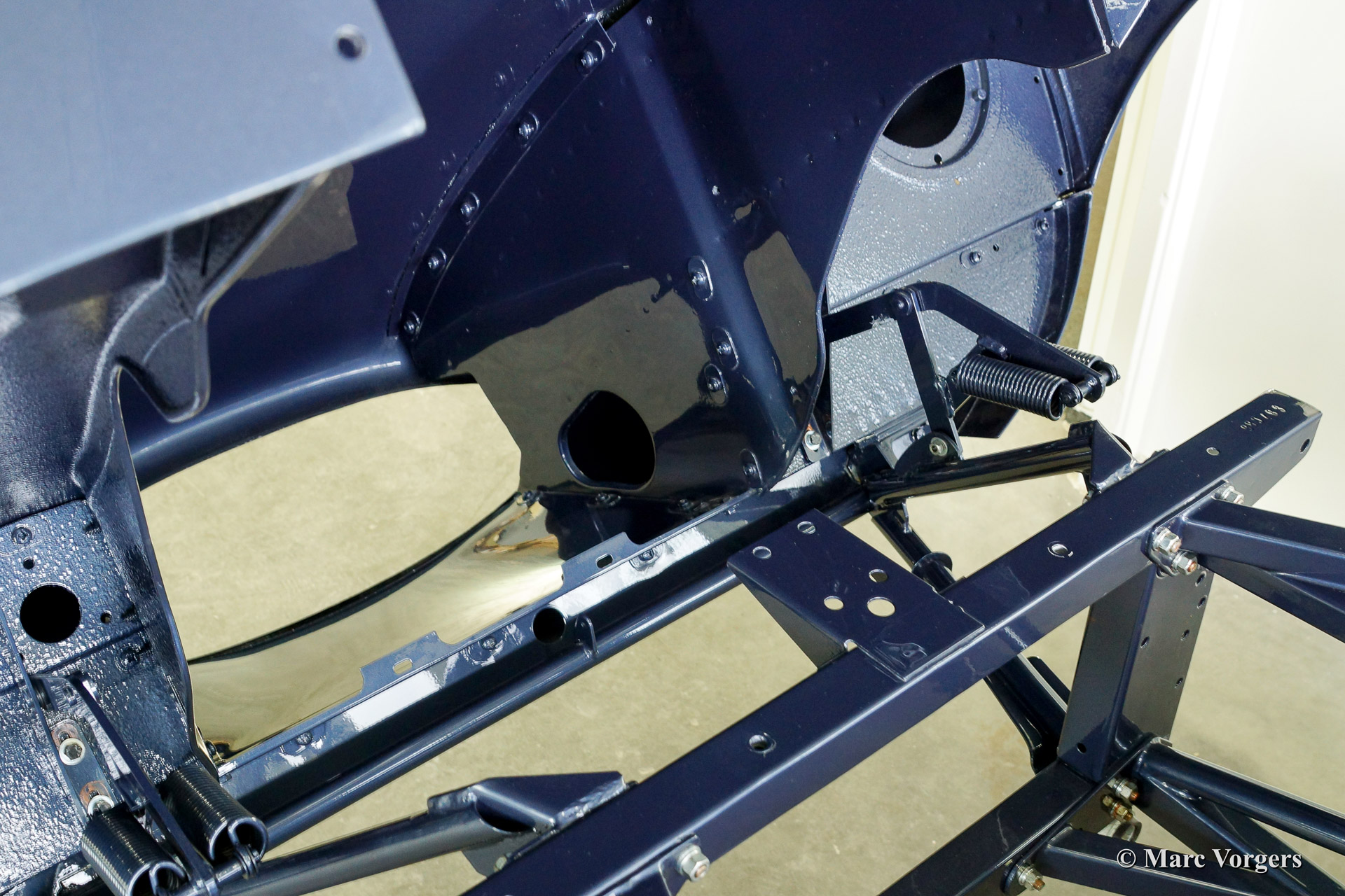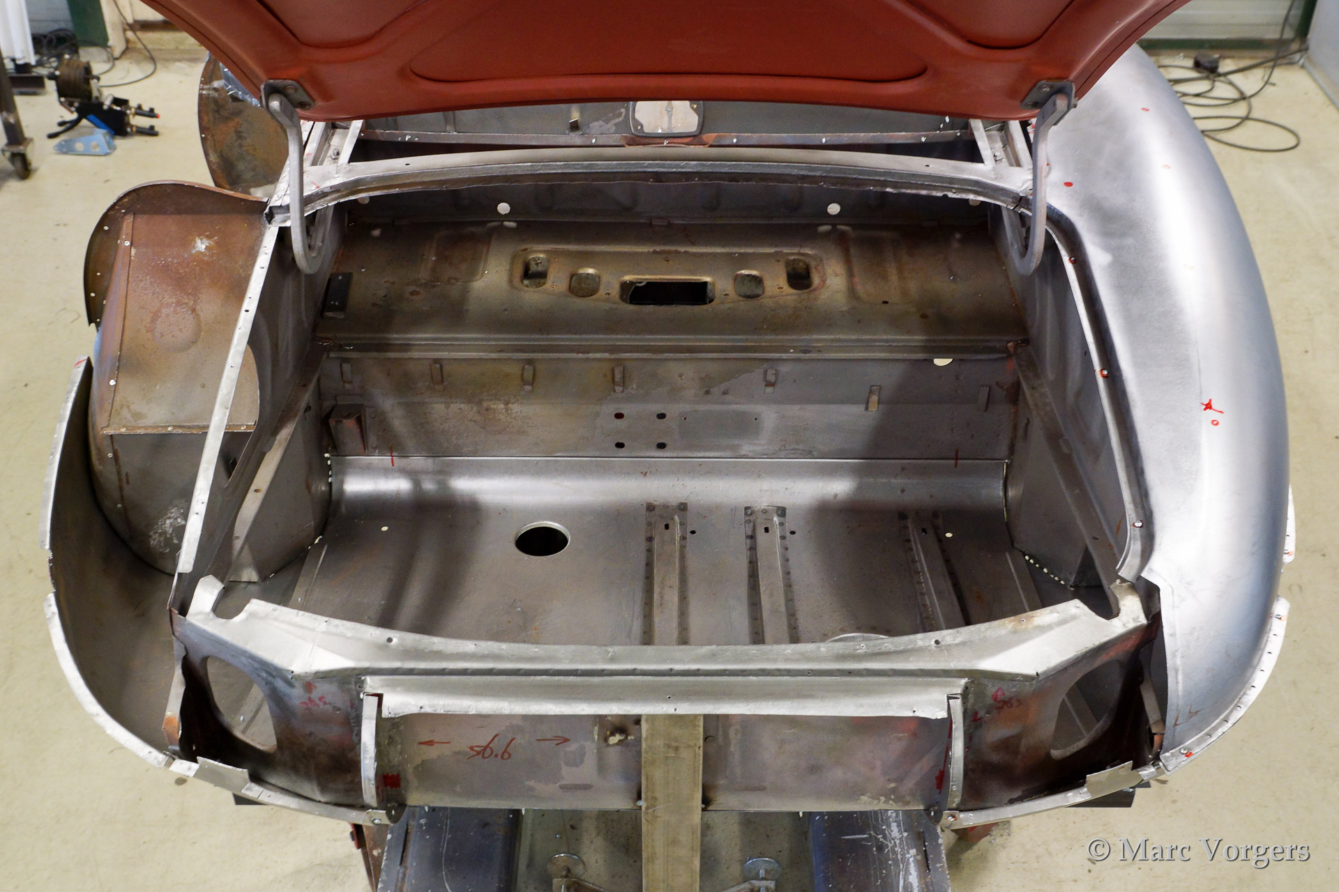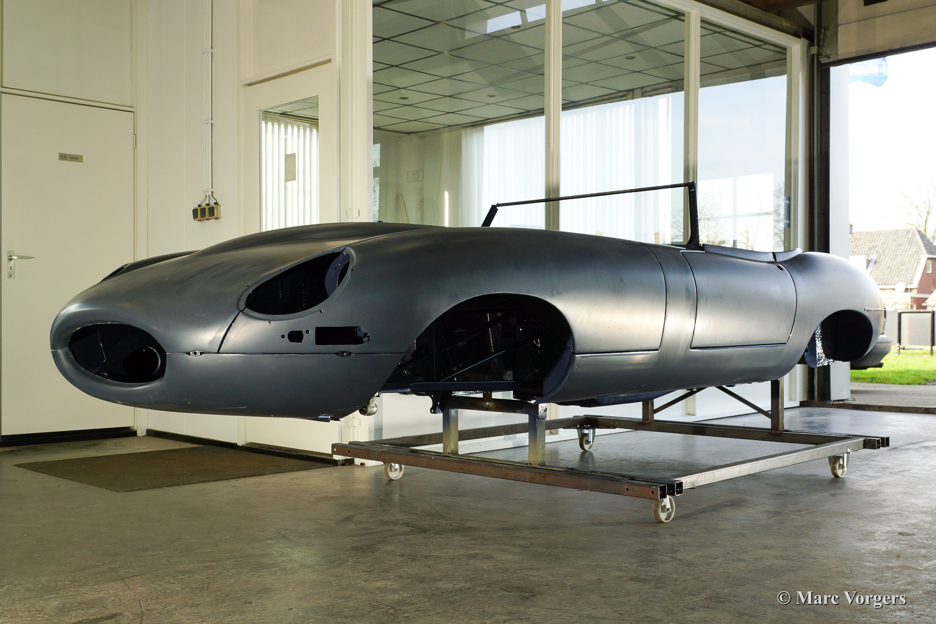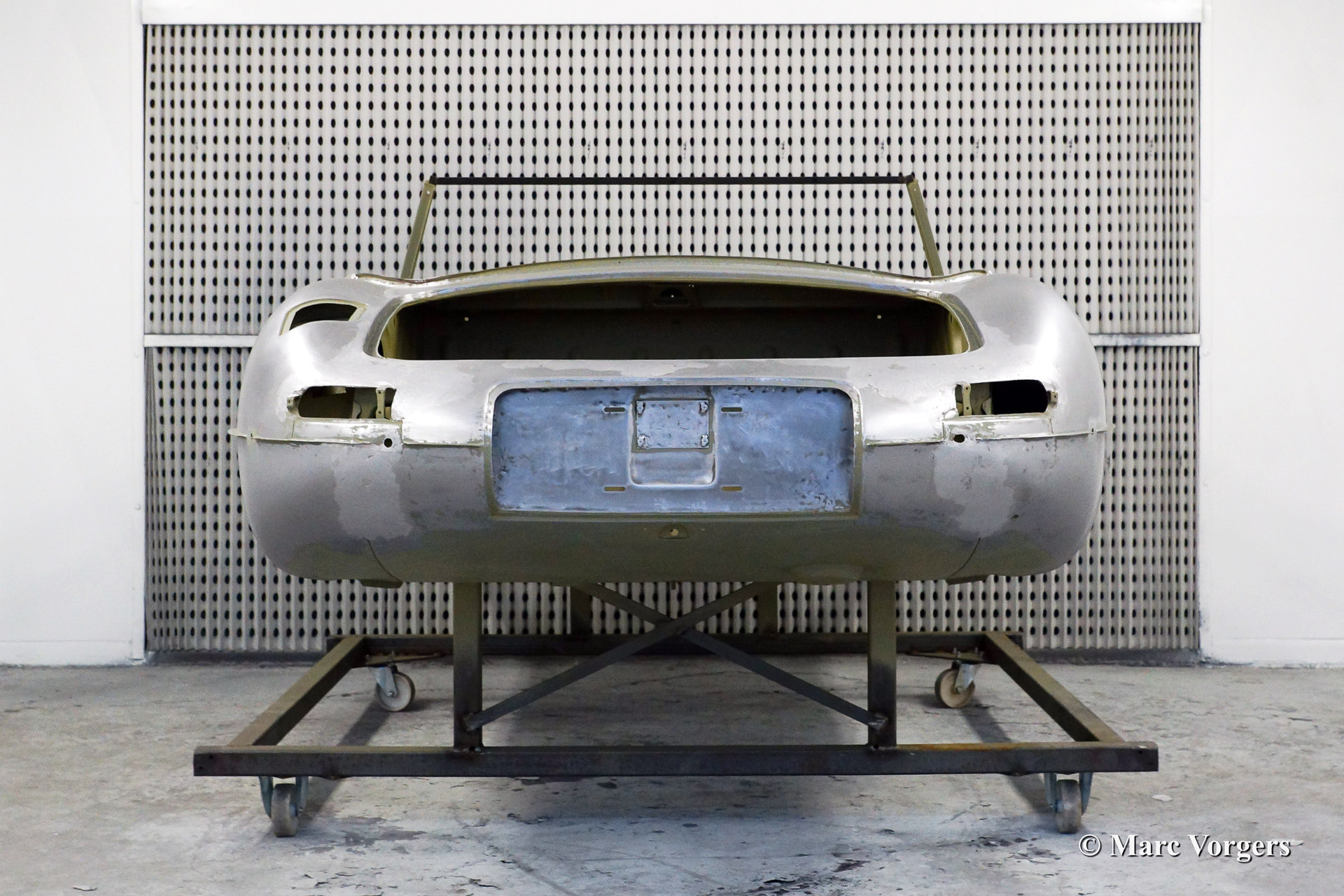 Ce fantastique Jaguar E-Type 3.8 Litre une série OTS (roadster) de l'annee 1964 est entièrement restauré pour un client. Ci-dessous vous voyez la restauration du carrosserie en détail. La carrosserie a été redressé, réparé et restauré très largement à cause de graves dommages ancienne. Le corps a été inspecté, peinture dépouillée, travail du métal effectué et époxy amorcée. Après que le carrosserie a été donné nouveau peinture parfaite dans la couleur Jaguar 'opalescent bleu' foncé.