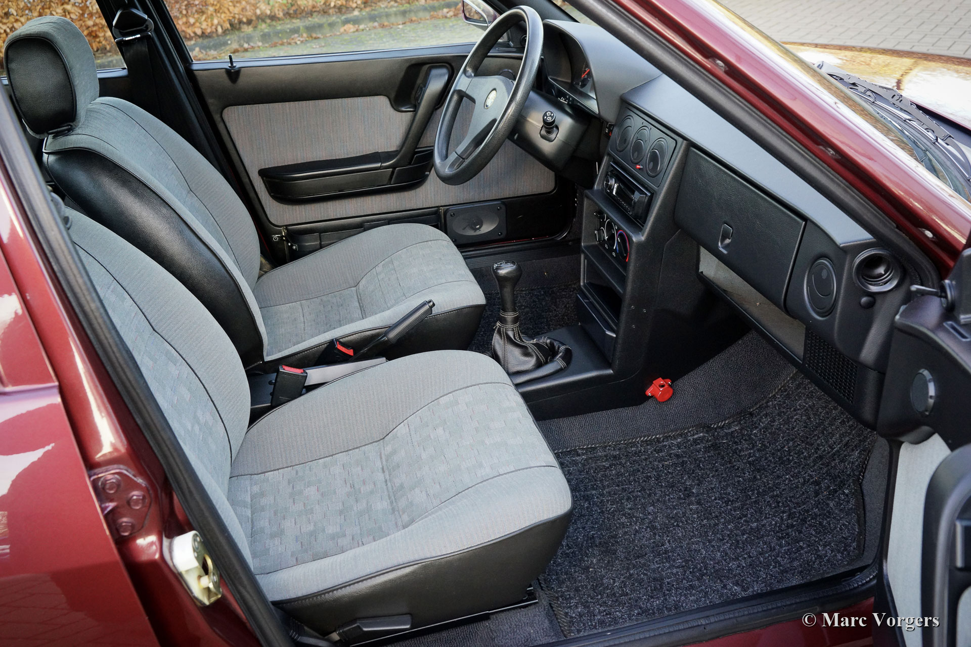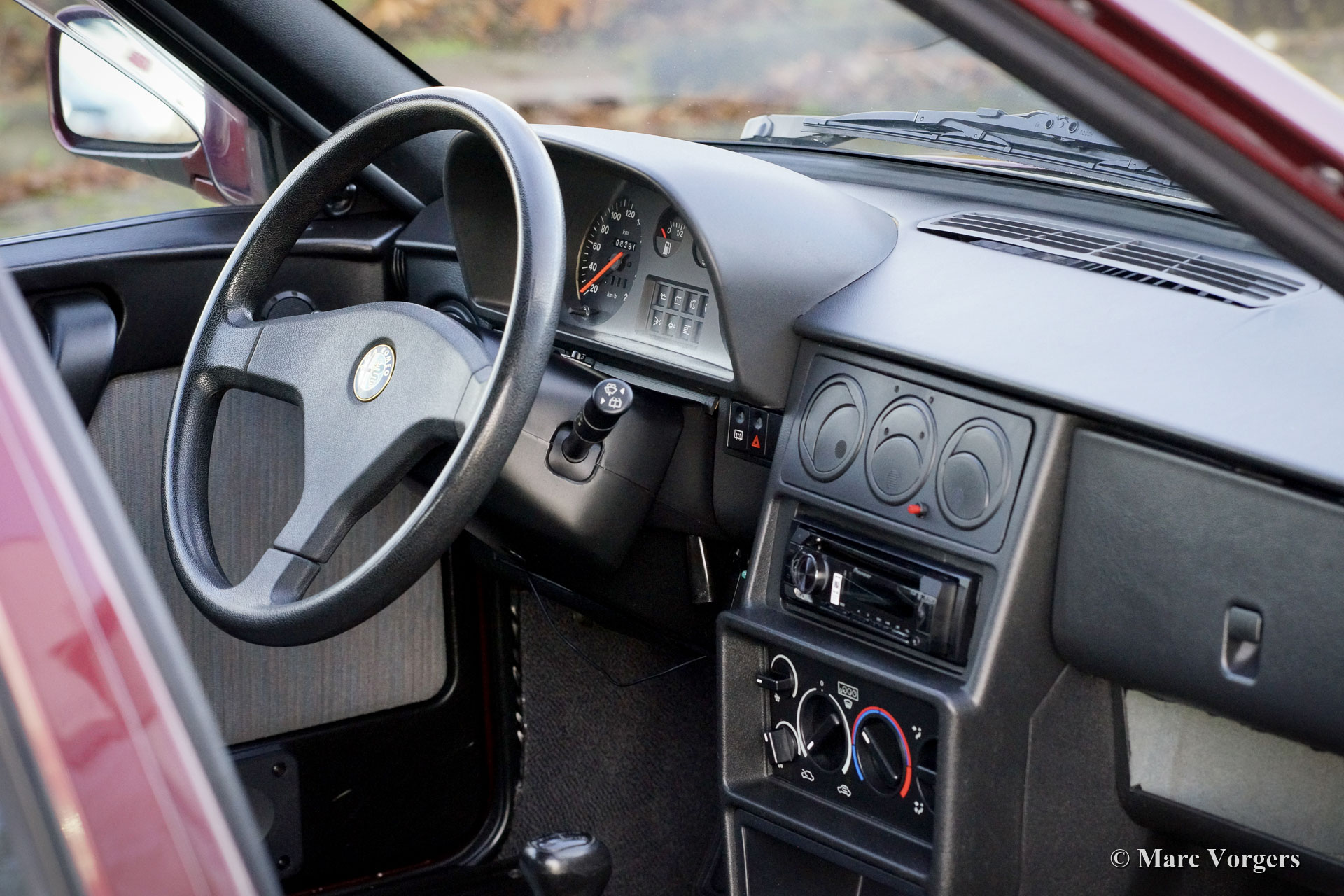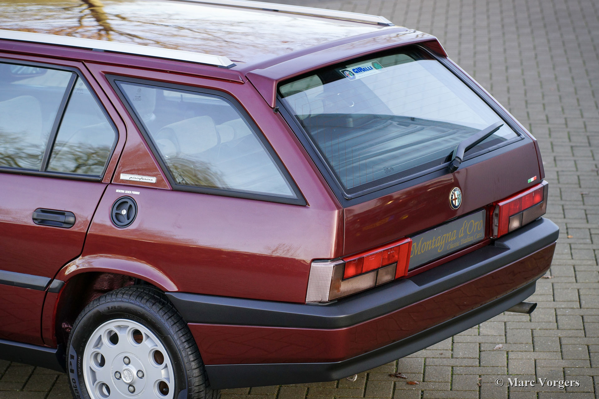Alfa Romeo 33 Sport Wagon 1.4 IE, année 1994. Couleur Bordeaux Métallique (AR 148) combinée avec un intérieur en tissu gris / vinyle noir et un tapis gris. Cette très belle Alfa Romeo 33 Sport Wagon a été vendue neuve à M. Carlo Donini de Vérone Italie le 4 mars 1994. La voiture a été fournie par le représentant Alfa Romeo Girelli à Vérone. La voiture est livrée complète avec les livres d'origine, un livret de garantie / service estampillé Concessionaria Girelli et deux jeux de clés d'origine. L'automobile fut importée d'Italie en décembre 2020. La voiture fut vendue par Montagna d'Oro à un passionné néerlandais qui a amélioré la voiture avec de magnifiques nouvelles jantes en alliage Alfa Speedline d'origine chaussées de pneus Pirelli Cinturato P1. Depuis l'origine, cette Alfa Romeo n'a parcouru que 85,389 kilomètres et la voiture a été parfaitement entretenue au fil des ans. L'automobile est en excellent état d'origine avec seulement de légers signes d'utilisation antérieure. Vous trouverez de minuscules éclats de peinture sur la peinture et de minuscules trous de vis sur le côté gauche de la console provenant d'un kit de téléphone de voiture installé précédemment. La sellerie intérieure est comme neuve ! Il s'agit d'une magnifique Alfa Romeo Sport Wagon en excellent état d'origine et avec un faible kilométrage.